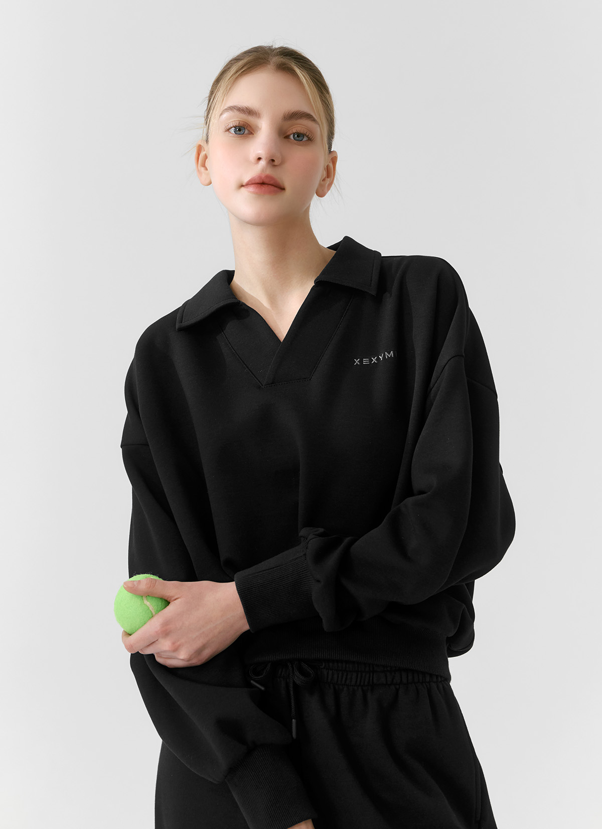 XFK1QL1101 Long Sleeve Crop MTM Black Top