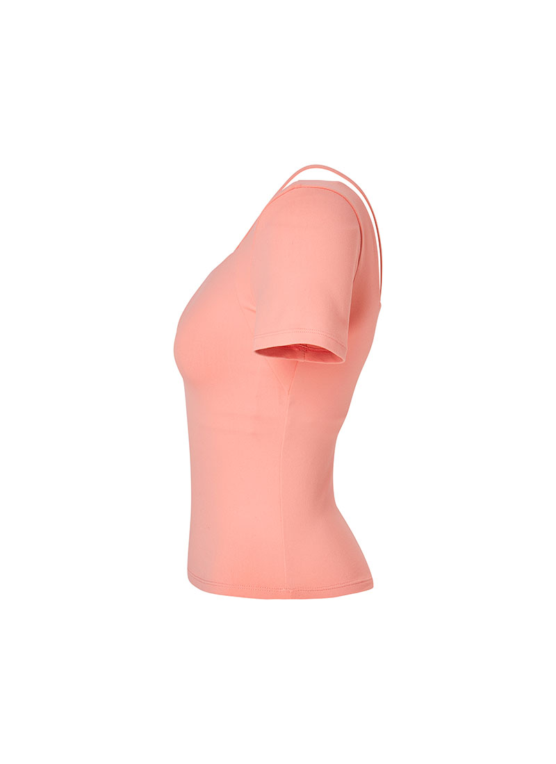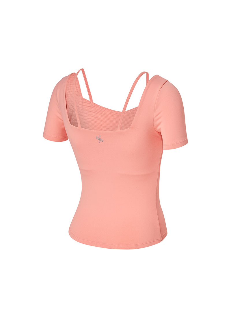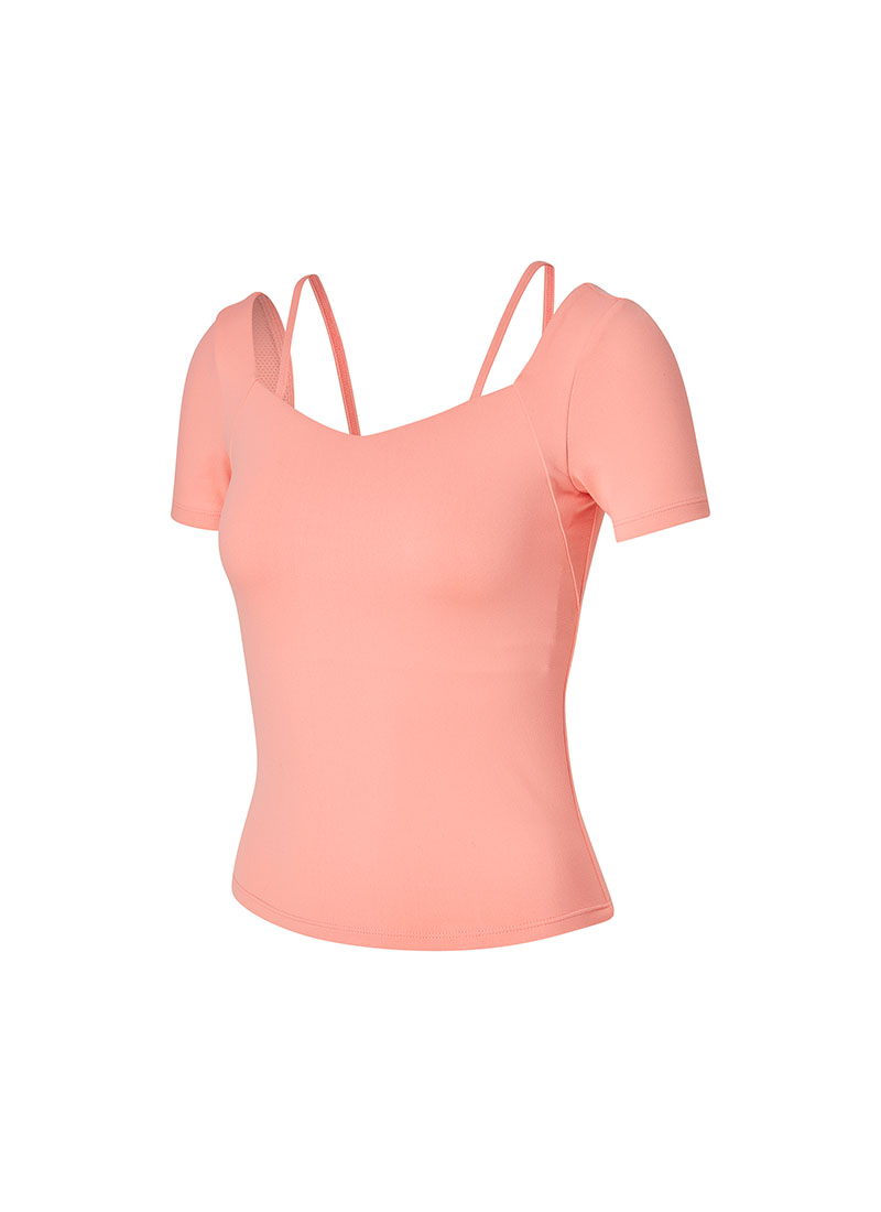XFK1BL1503 Cotton-like Heart Neck Crop Light Coral TOP