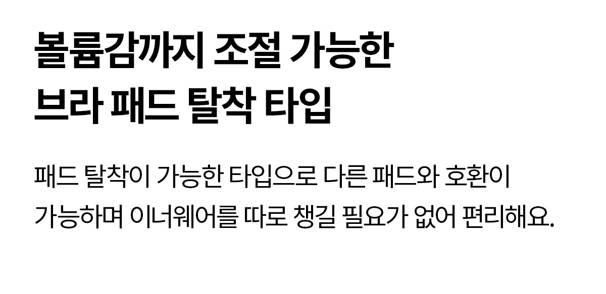 INNER AIR BRA PAD 본 상품은 타공 스펀지로 통기성이 업그레이드된 에어 브라패드(1cm)가 포함되어 있습니다. S, M 사이즈 패드탑 : S / M 사이즈 패드 L, XL, XXL, XXXL 사이즈 패드탑 : L / XL 사이즈 패드
