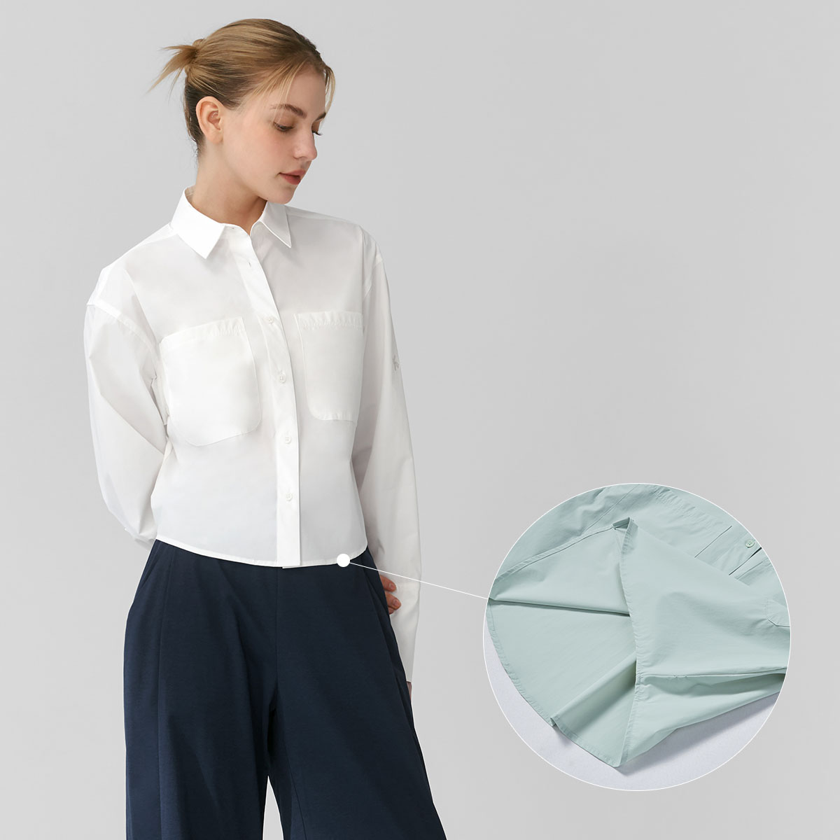 Model Size : Height : 172cmWeight : 50kg Top : S(44)Bottom : S(24)Fitting Size : S
