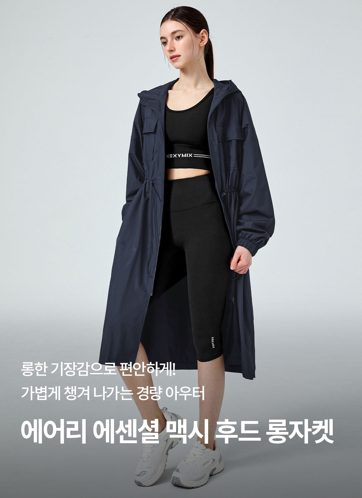 XFK1JL1104 Airy Essential Maxi Hood Long Jacket Romantic Navy Top
