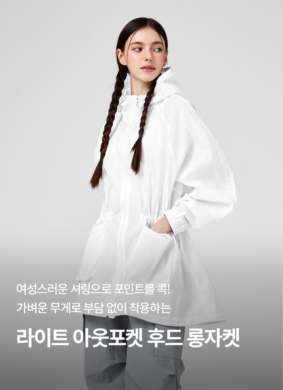 XFK1JL1105 Light Out Pocket Hooded Long Jacket Ivory Top