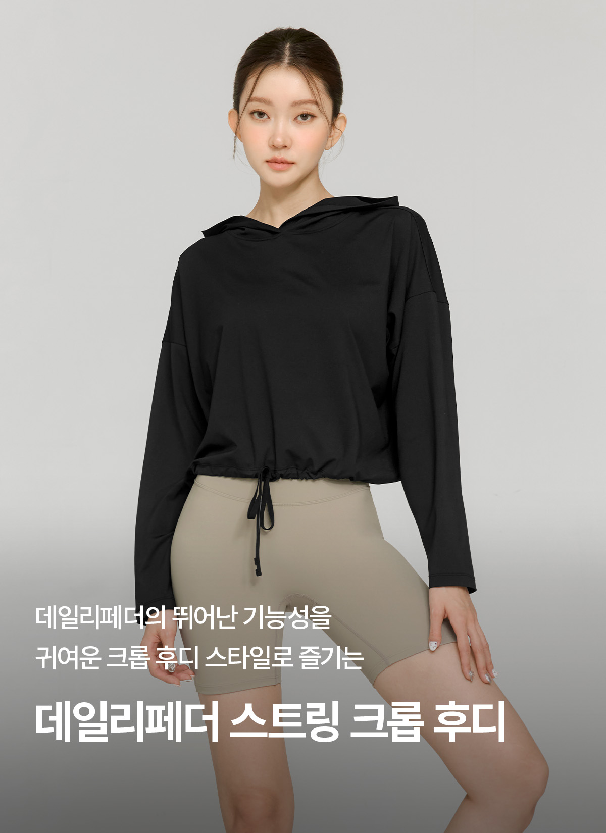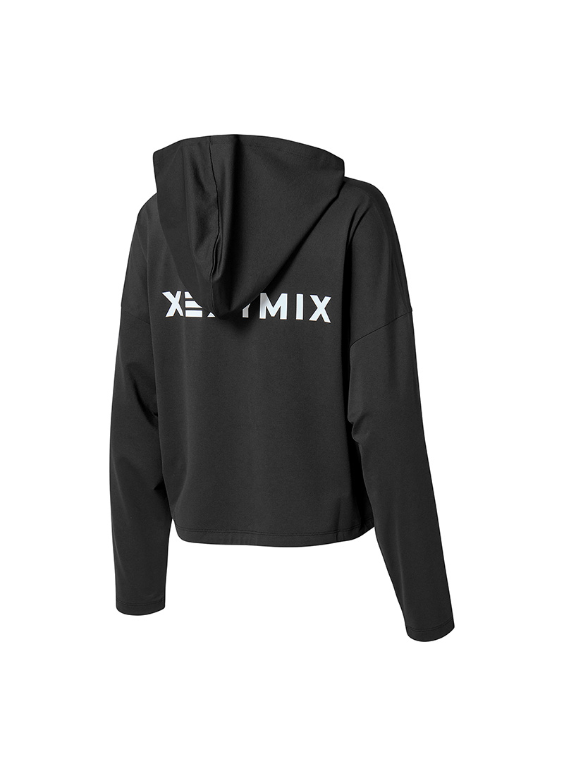 XFK2TL1101 Daily Feather dstring Crop Hoodie Black Top