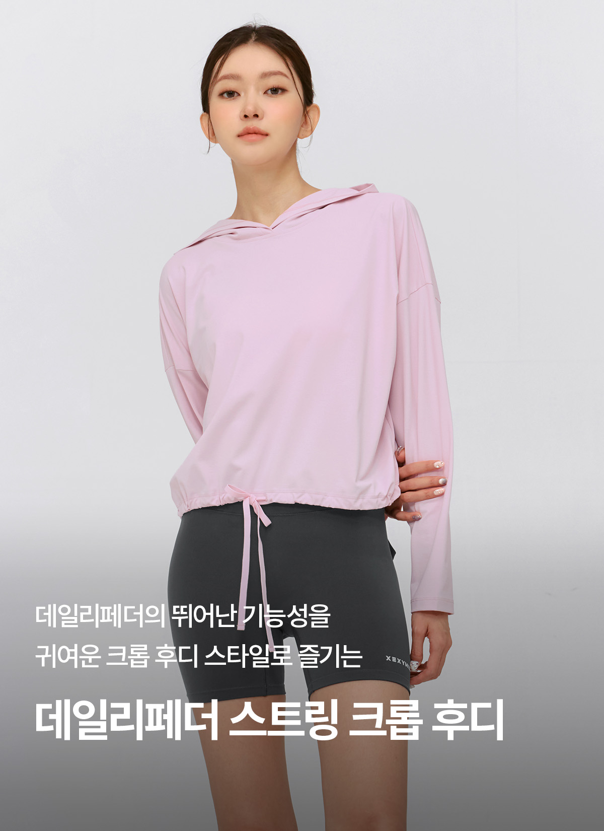 XFK2TL1101 Daily Feather dstring Crop Hoodie Fairy Pink Top
