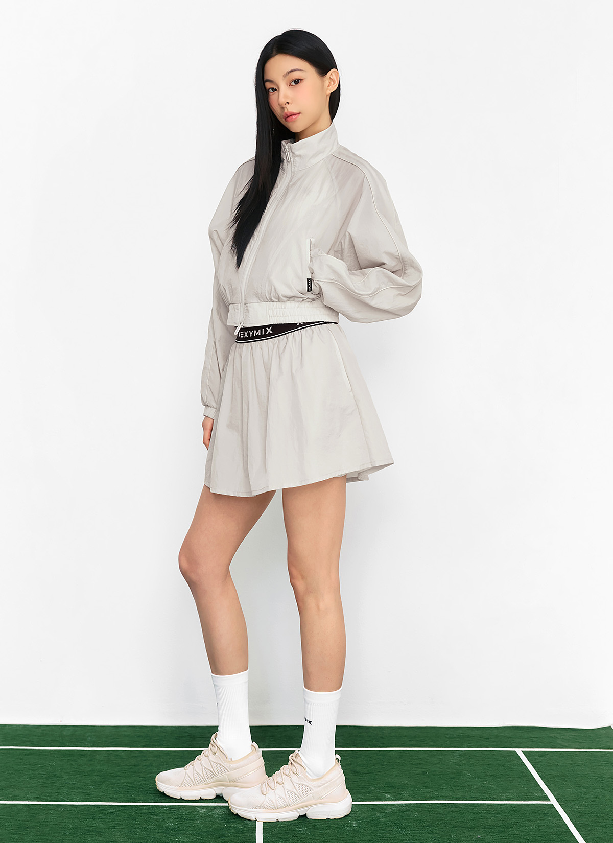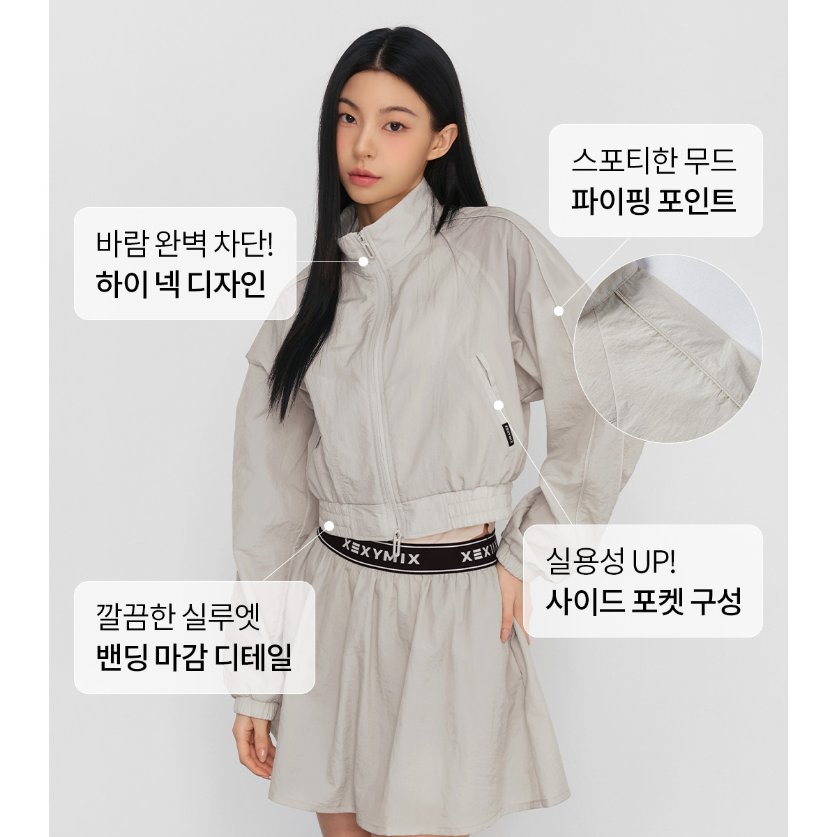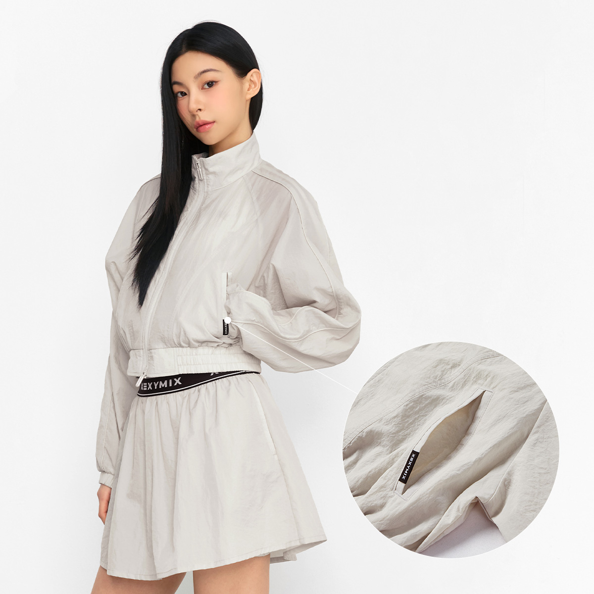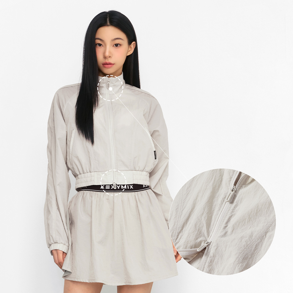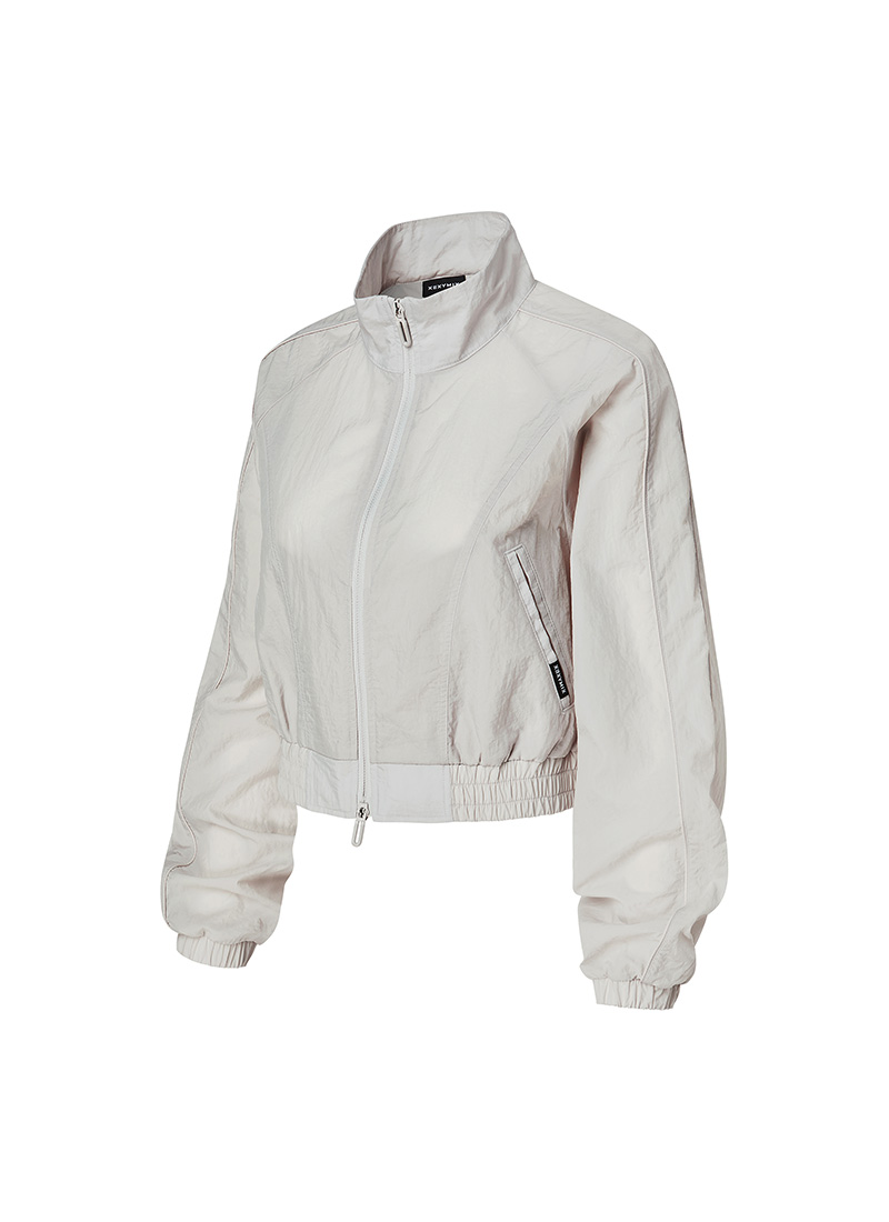 XFK1JL1102 Light Woven Piping Crop Jacket Warming Beige Top