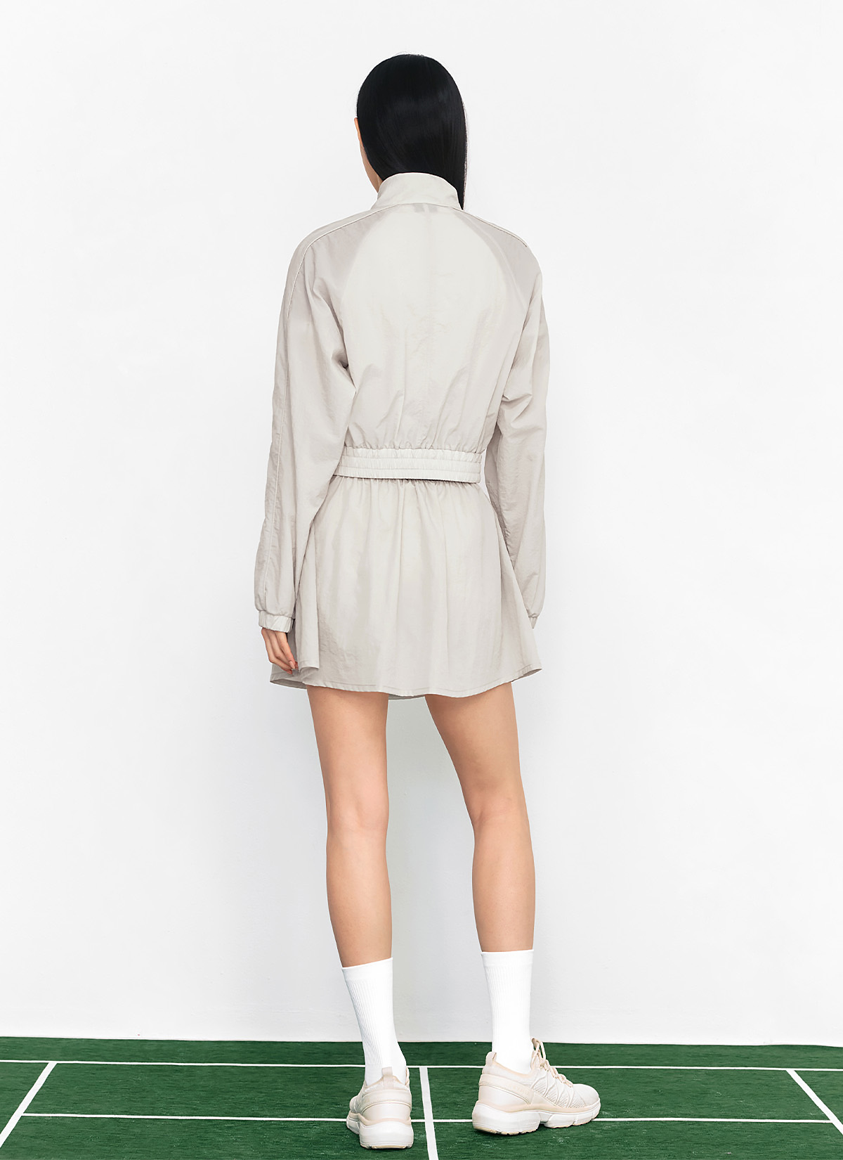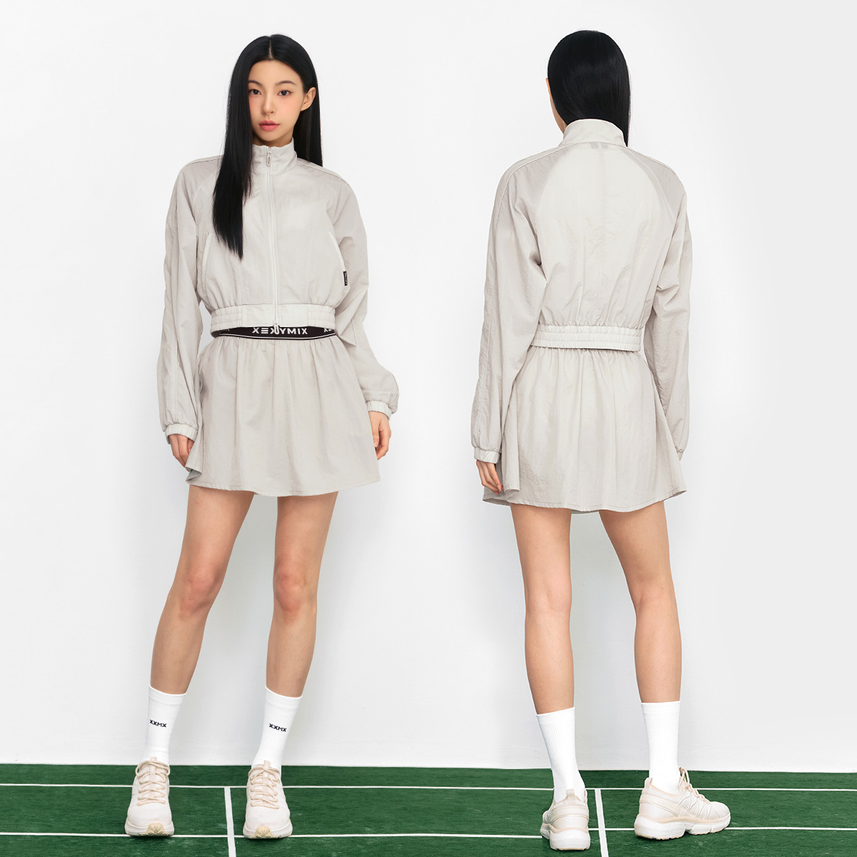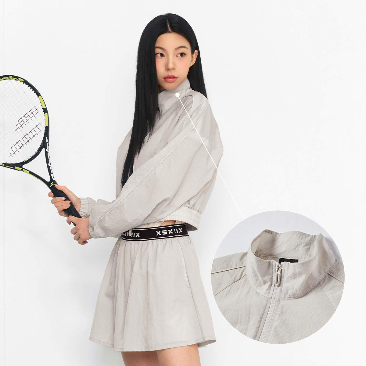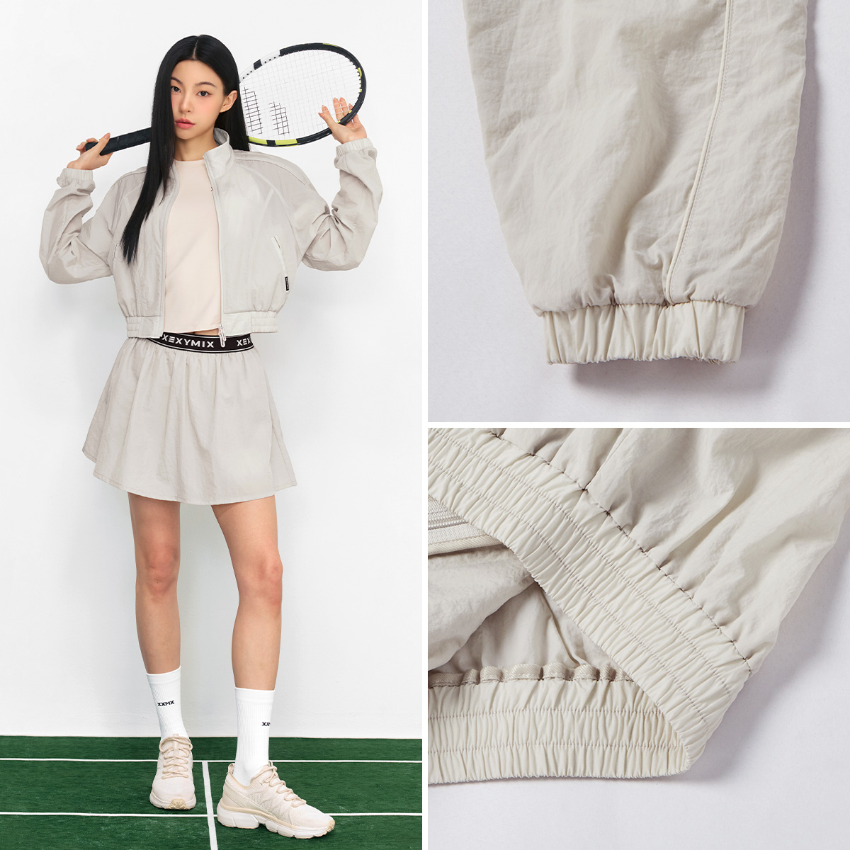 XFK1JL1102 Light Woven Piping Crop Jacket Warming Beige Top