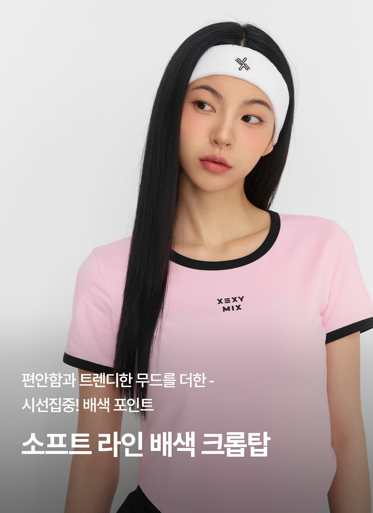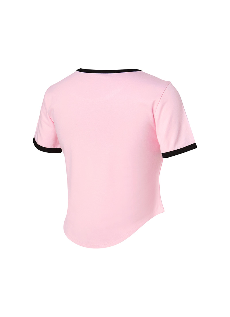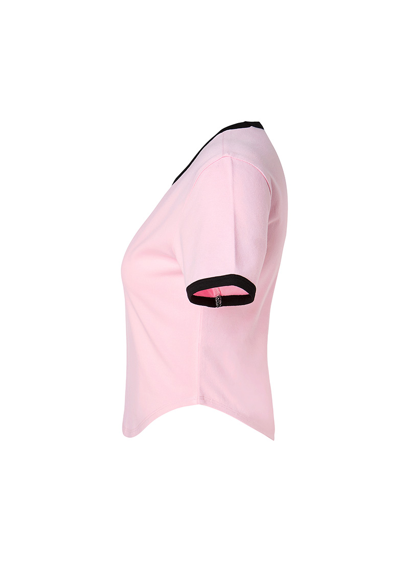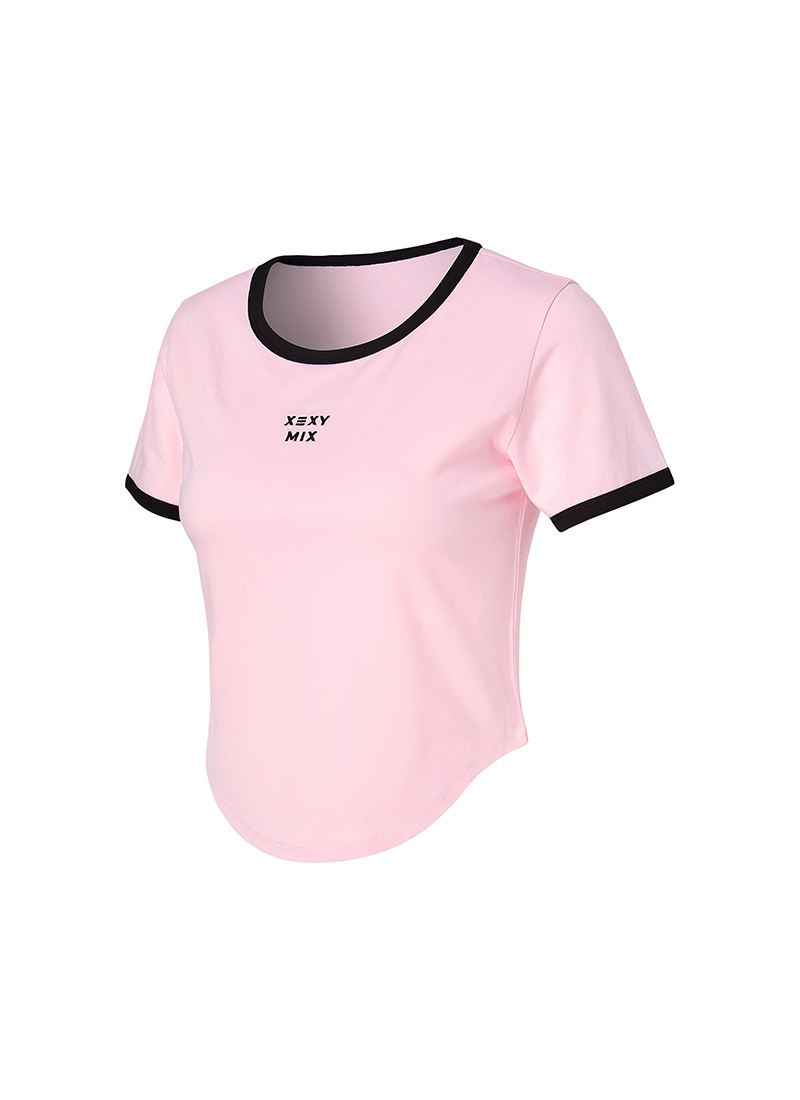 XFK2TS1105 Soft Line Color Block Crop Top Yogurt Pink Top