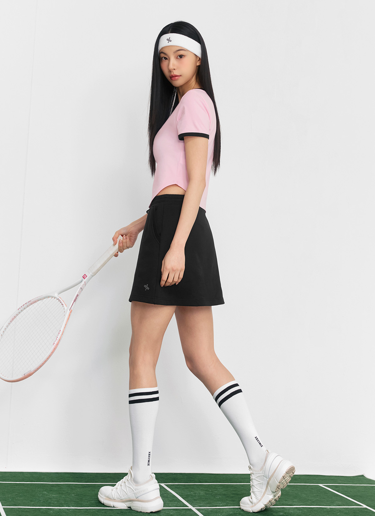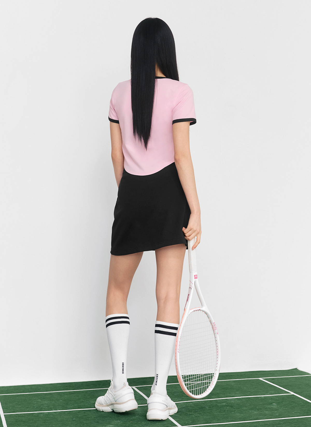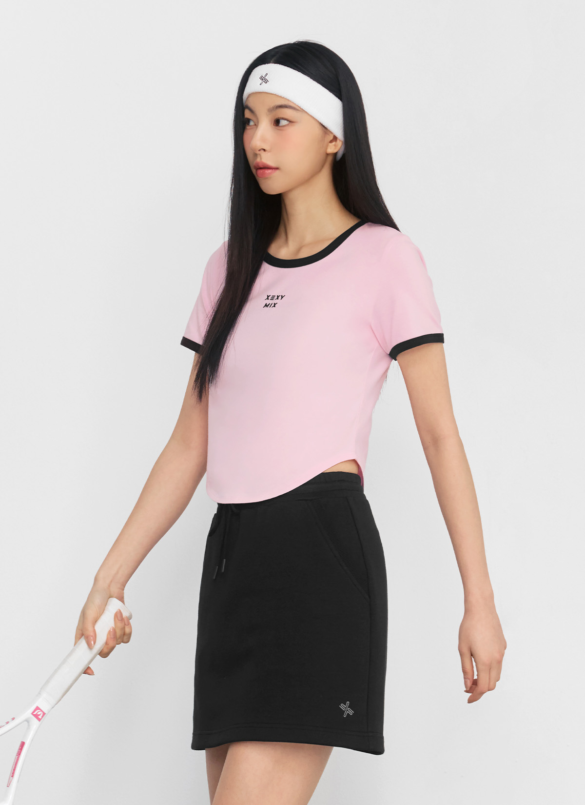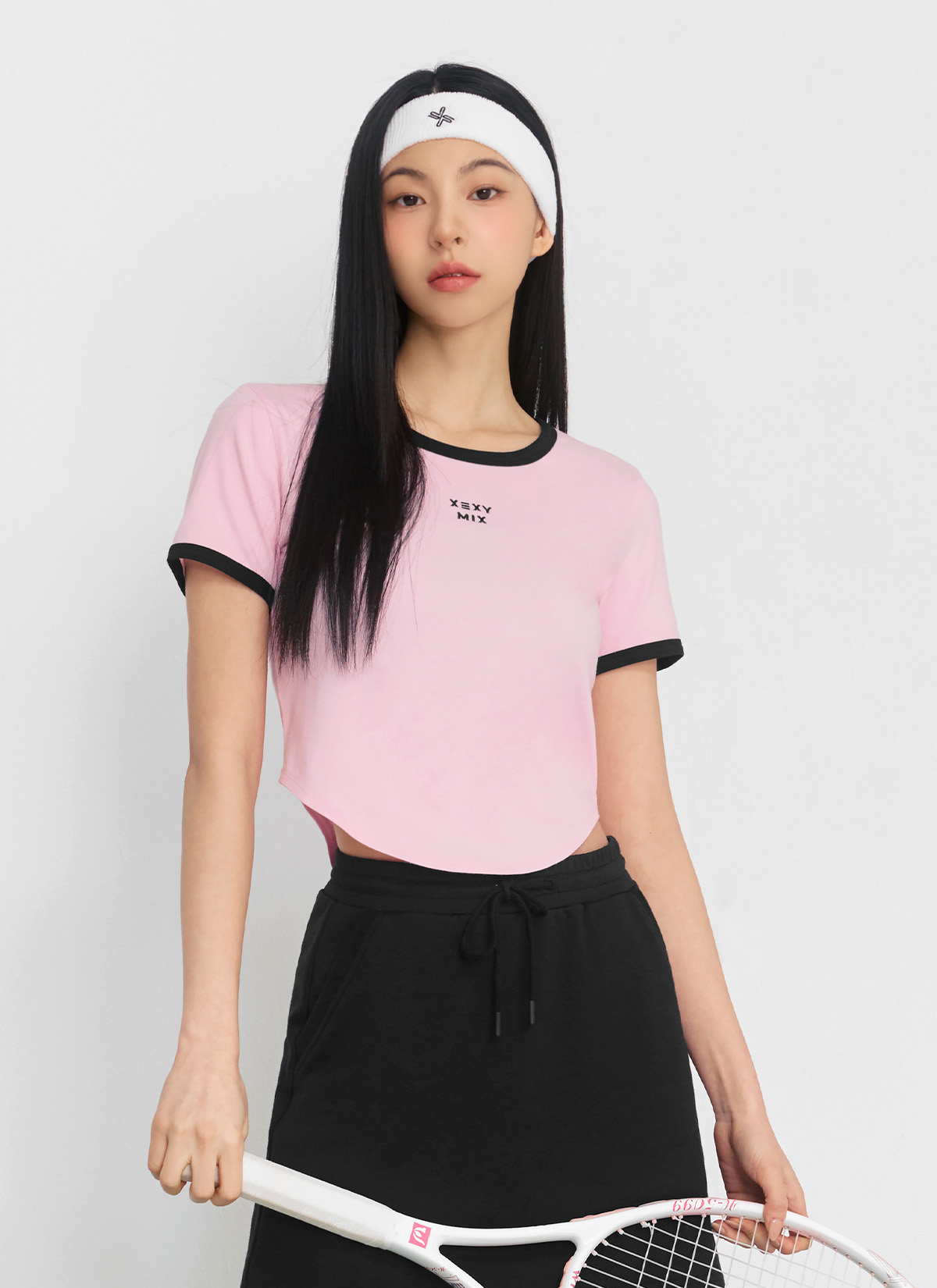 XFK2TS1105 Soft Line Color Block Crop Top Yogurt Pink Top