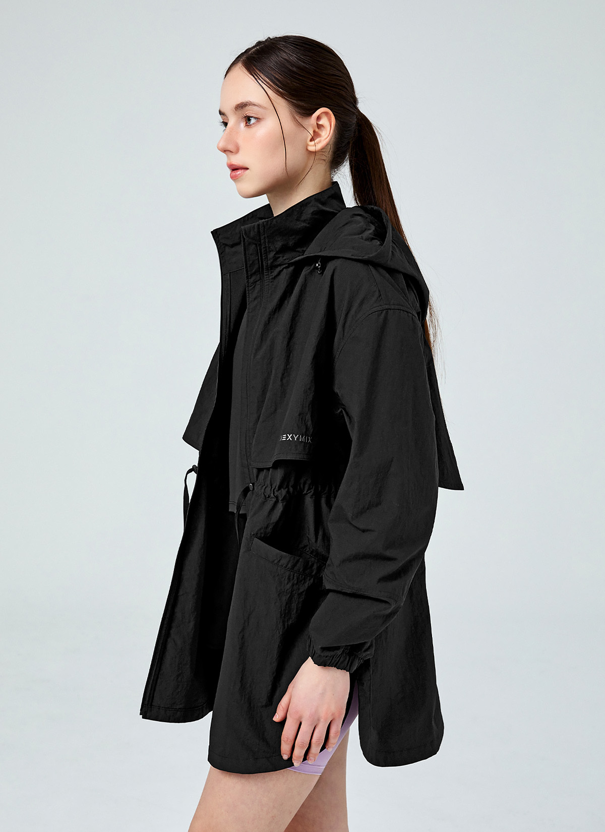 XFK1JL1103 Light Outdddstring Hood Windbreaker black Top