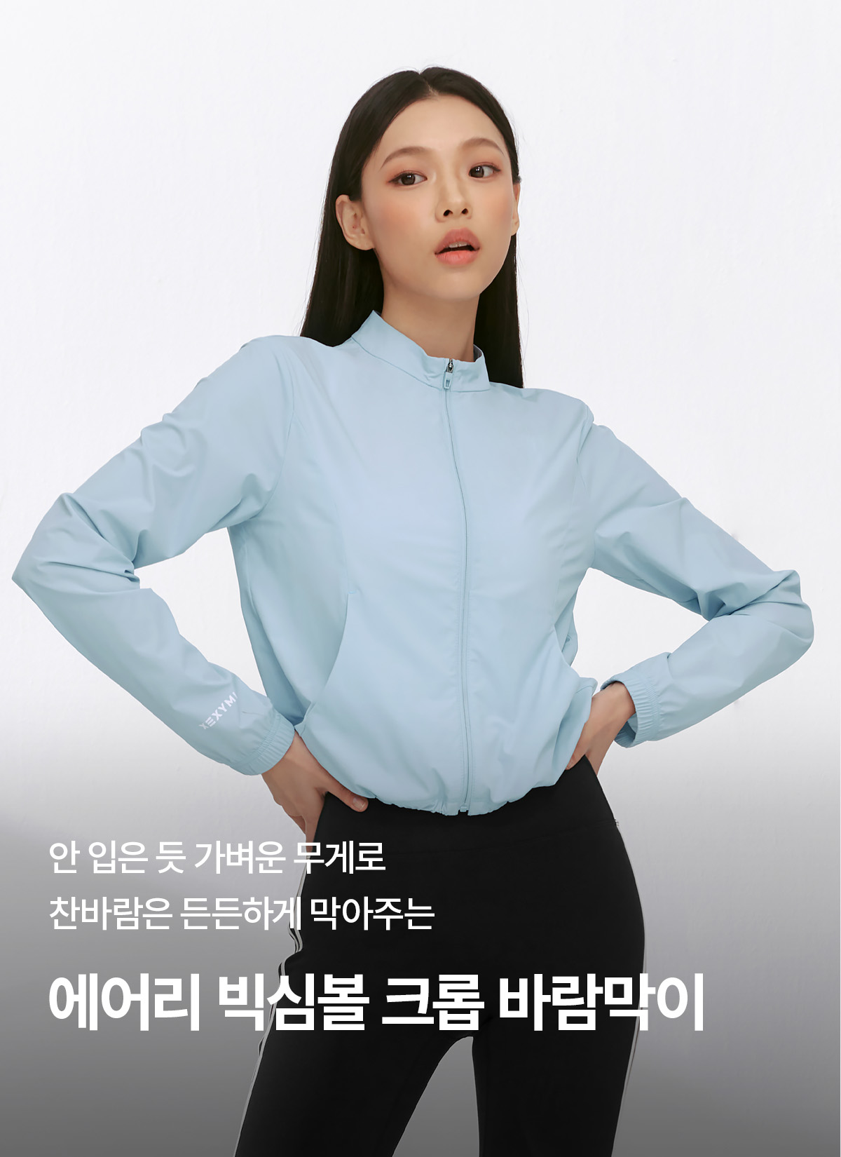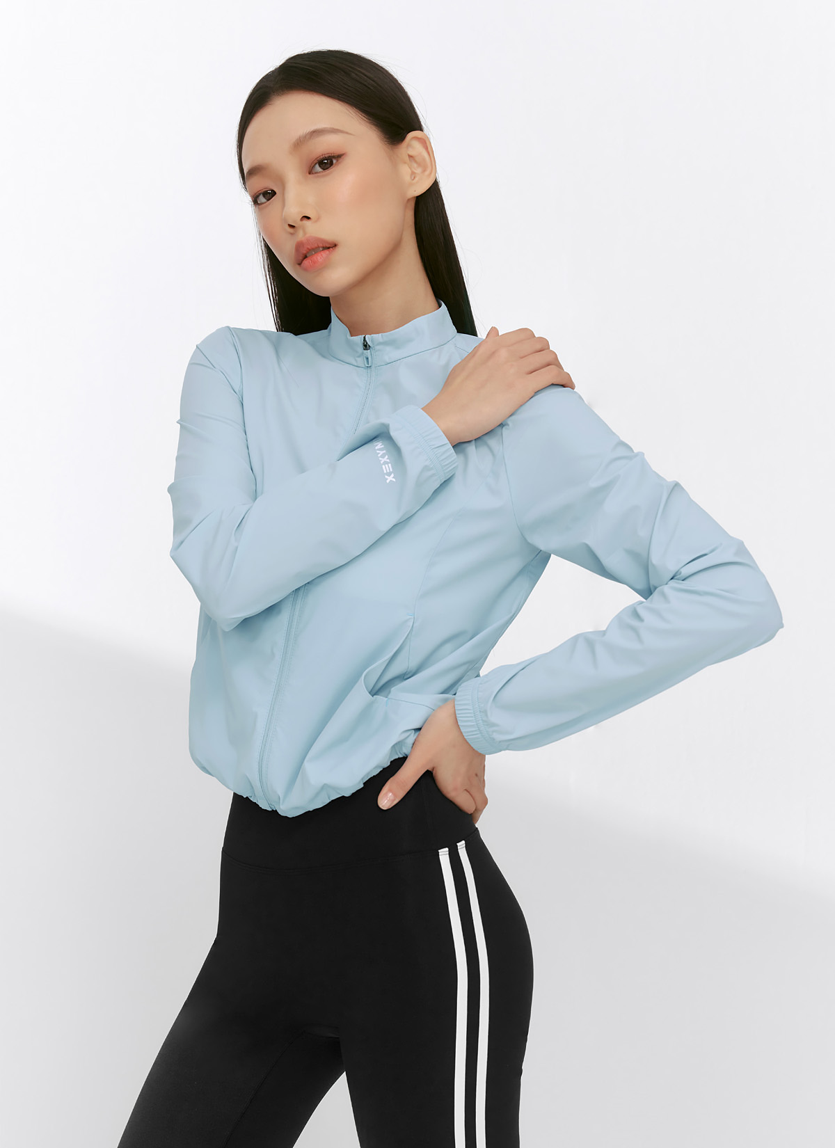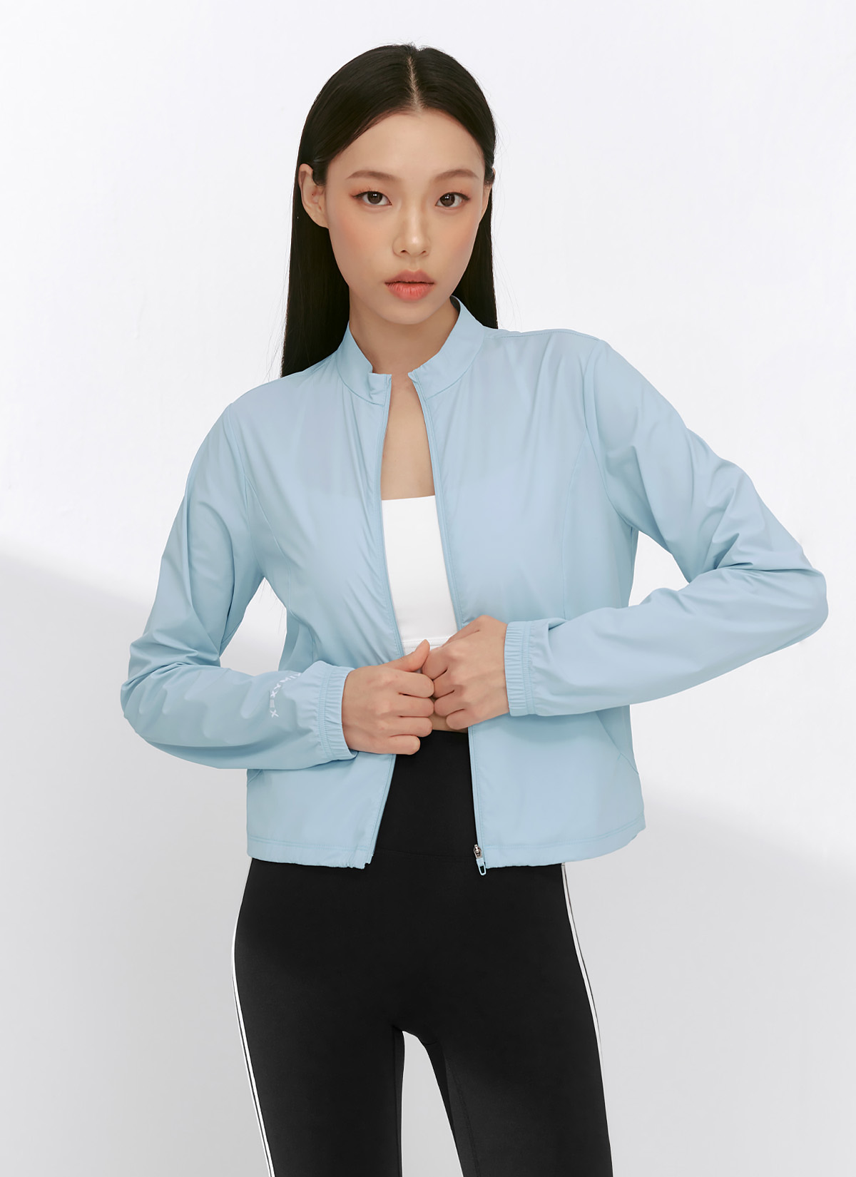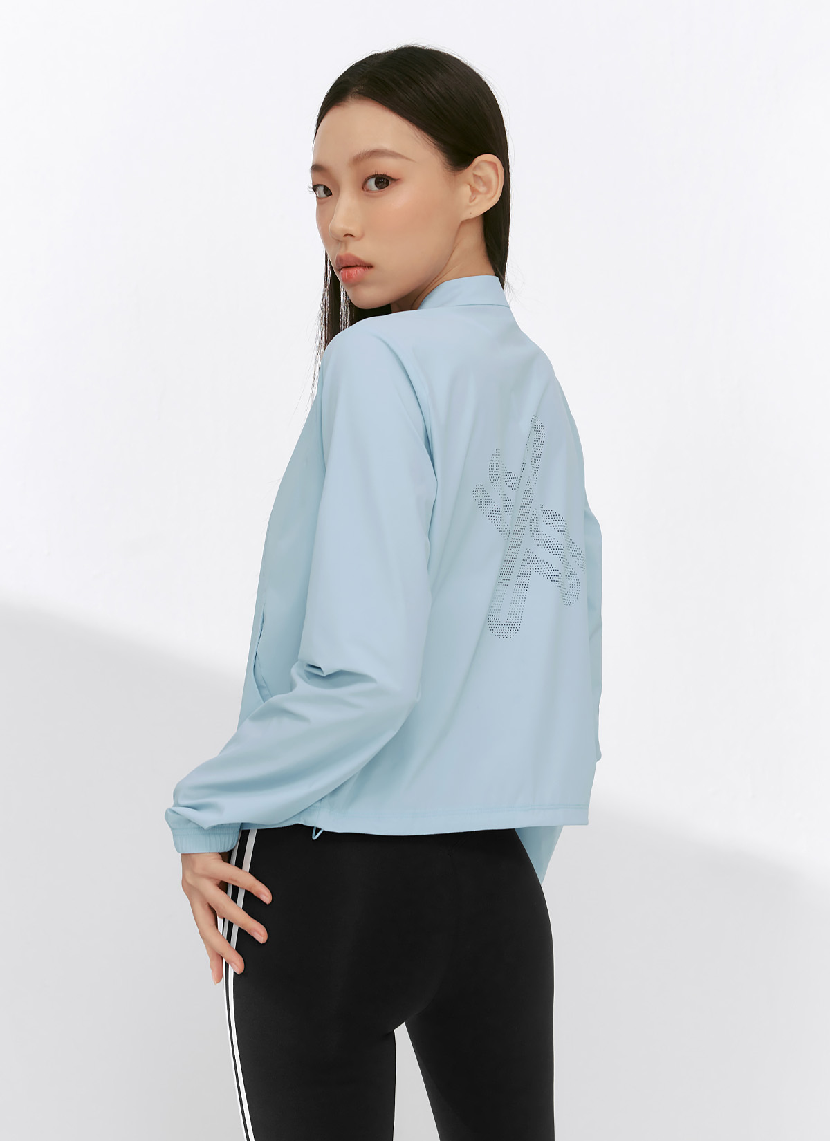 XFK2JL1001 Airy Big Symbol Crop Windbreaker Pearl Blue Top