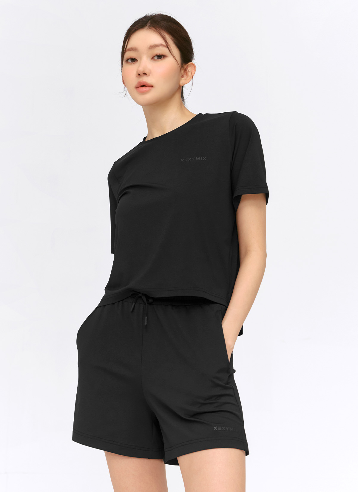 XFK2TS1104 Daily Feather Life Basic Short Sleeve black TOP