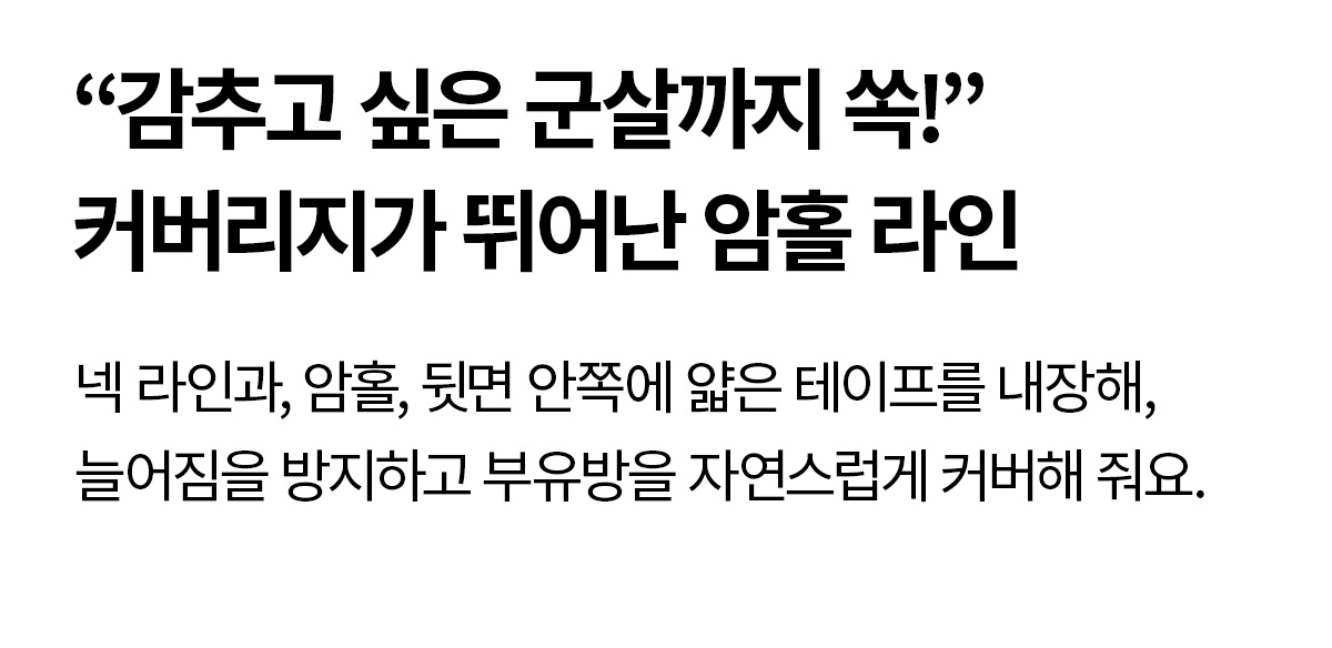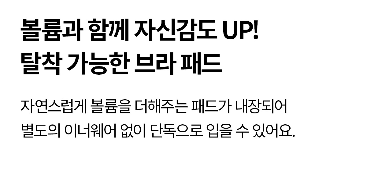 INNER AIR BRA PAD 본 상품은 타공 스펀지로 통기성이 업그레이드된 에어 브라패드(1cm)가 포함되어 있습니다. S, M 사이즈 패드탑 : S / M 사이즈 패드 L, XL, XXL, XXXL 사이즈 패드탑 : L / XL 사이즈 패드