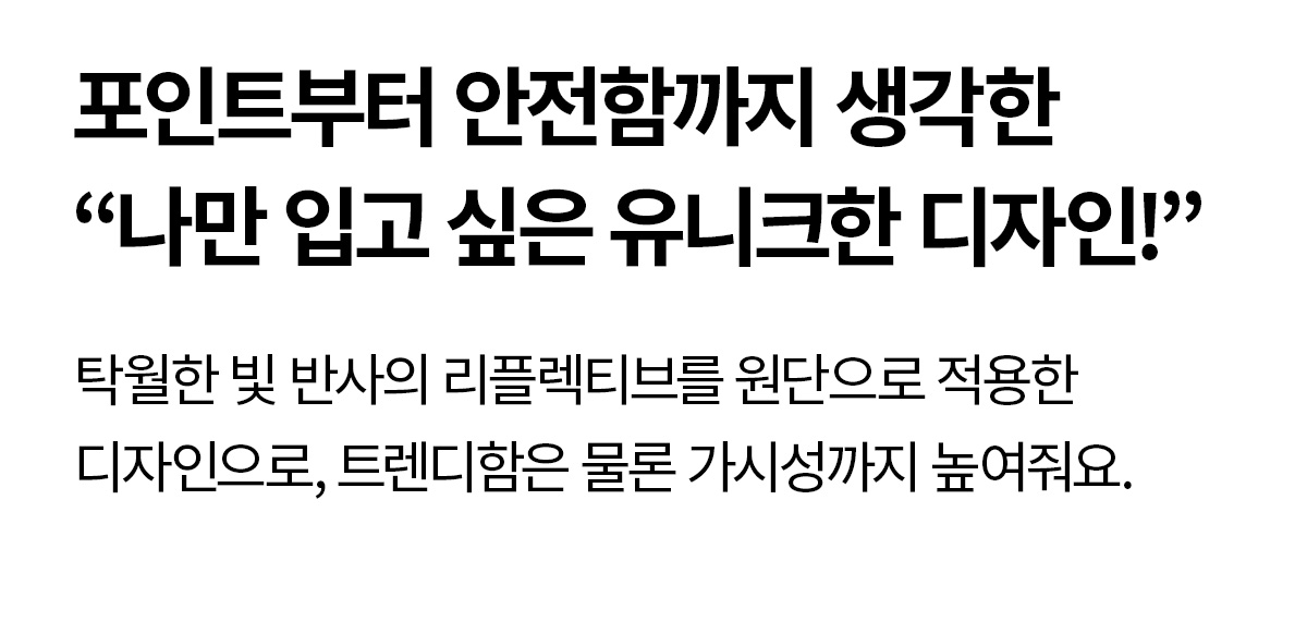 * 마찰이나 접힙이 반복될 경우 반사 코팅이 손상될 수 있으니 옷걸이에 보관하는 것을 권장합니다. * 세탁 시 뒤집어서 손세탁 하는 것을 권장하며 건조 시 직사광선을 피해 서늘한 그늘에서 자연건조해 주세요. * 표백제나 강한 세제를 사용하면 반사 기능이 저하될 수 있으니 중성세제를 사용하여 가볍게 손세탁해 주세요.