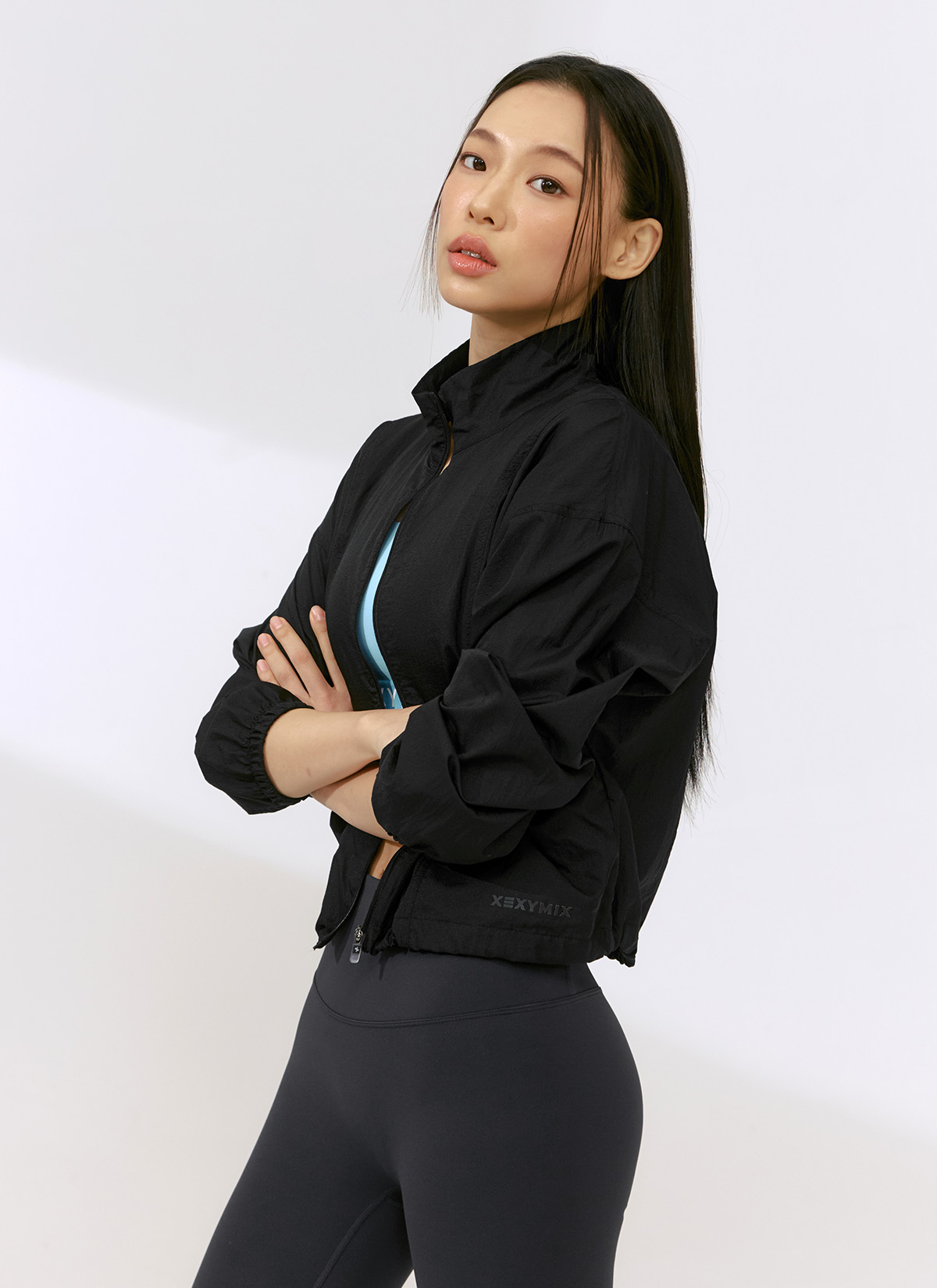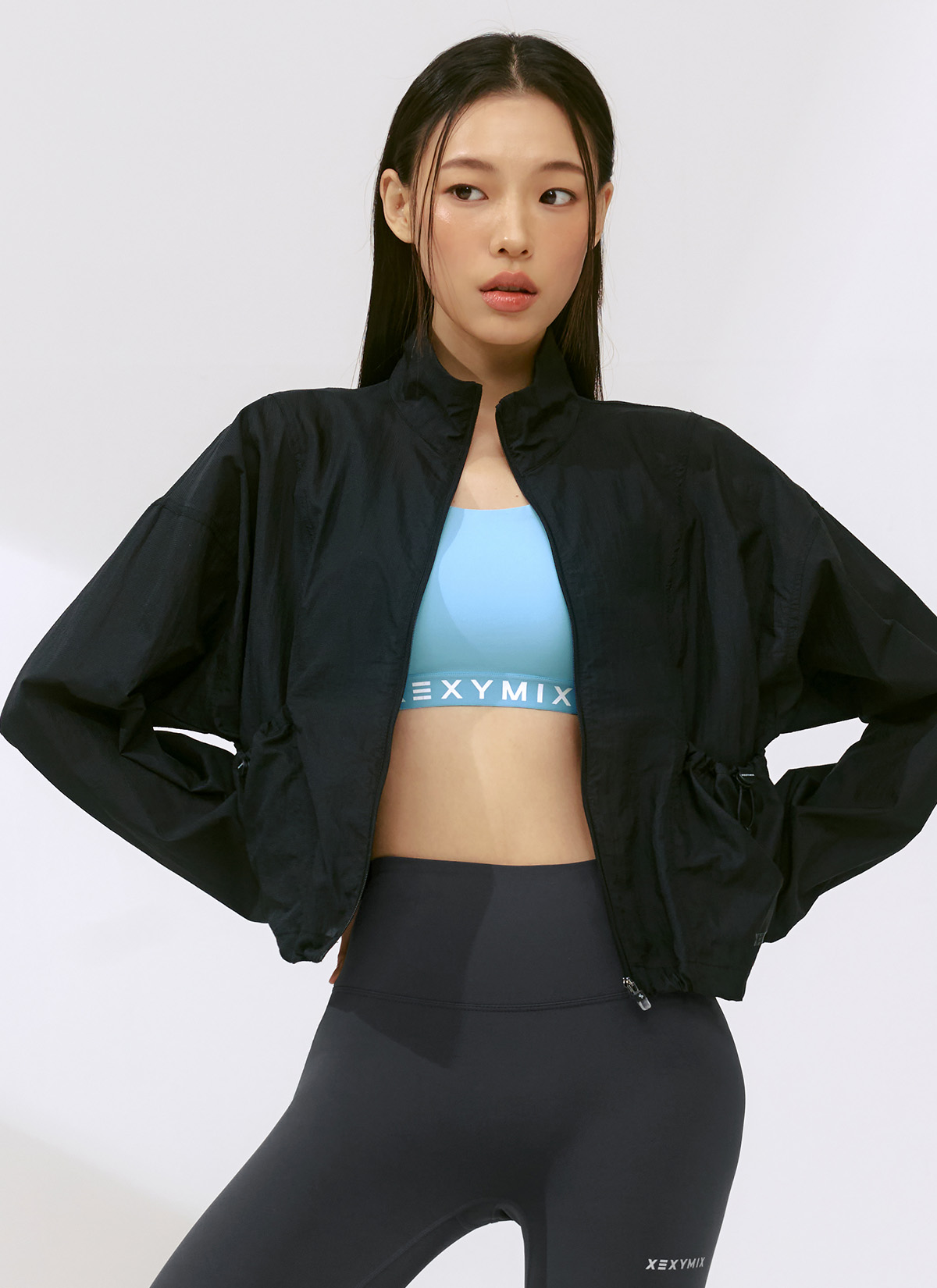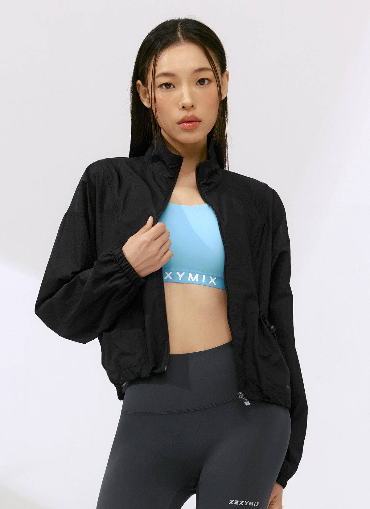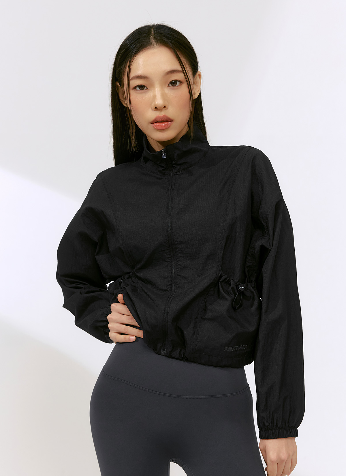 XFK2JL1101 Airy High-Neck Crop Windbreaker Black TOP