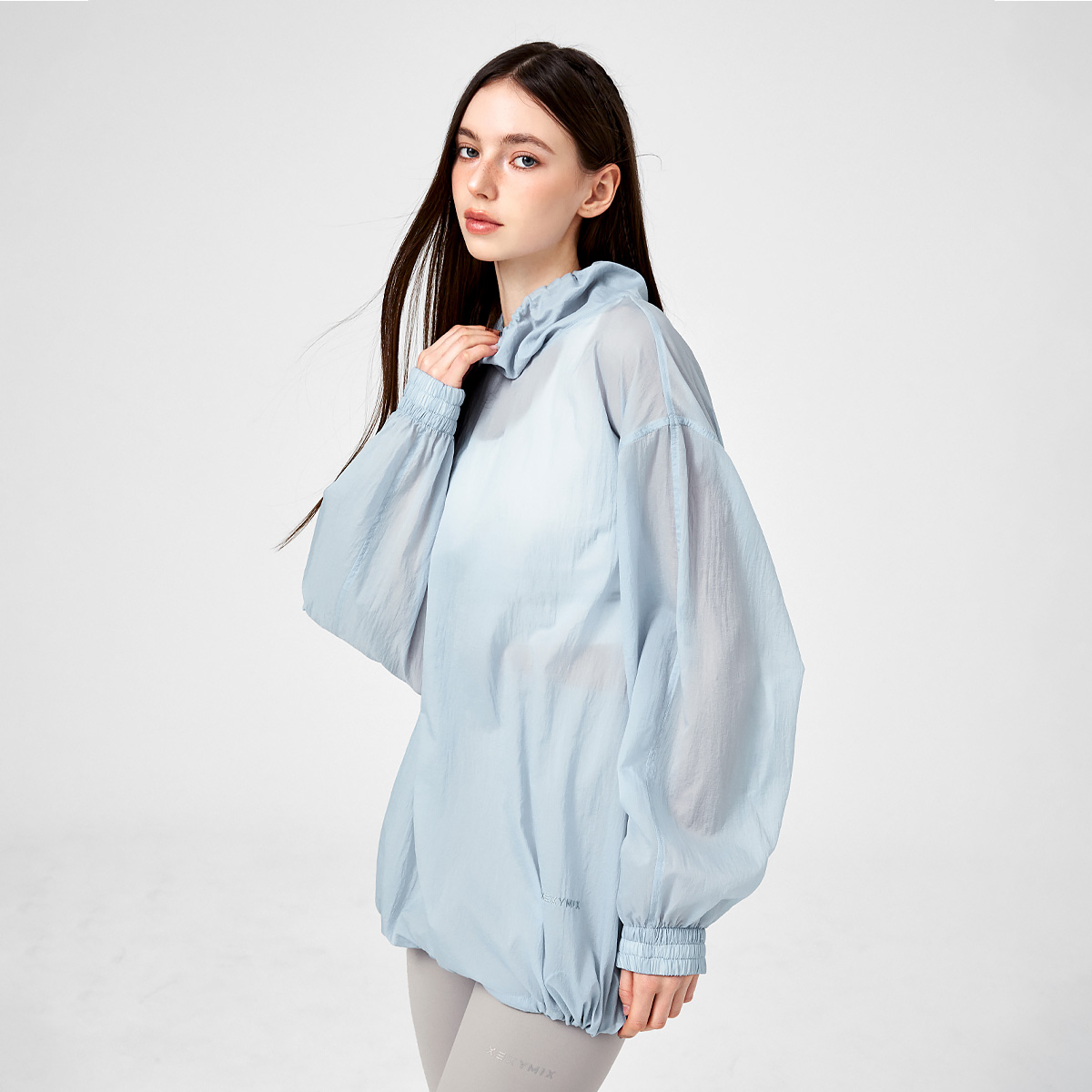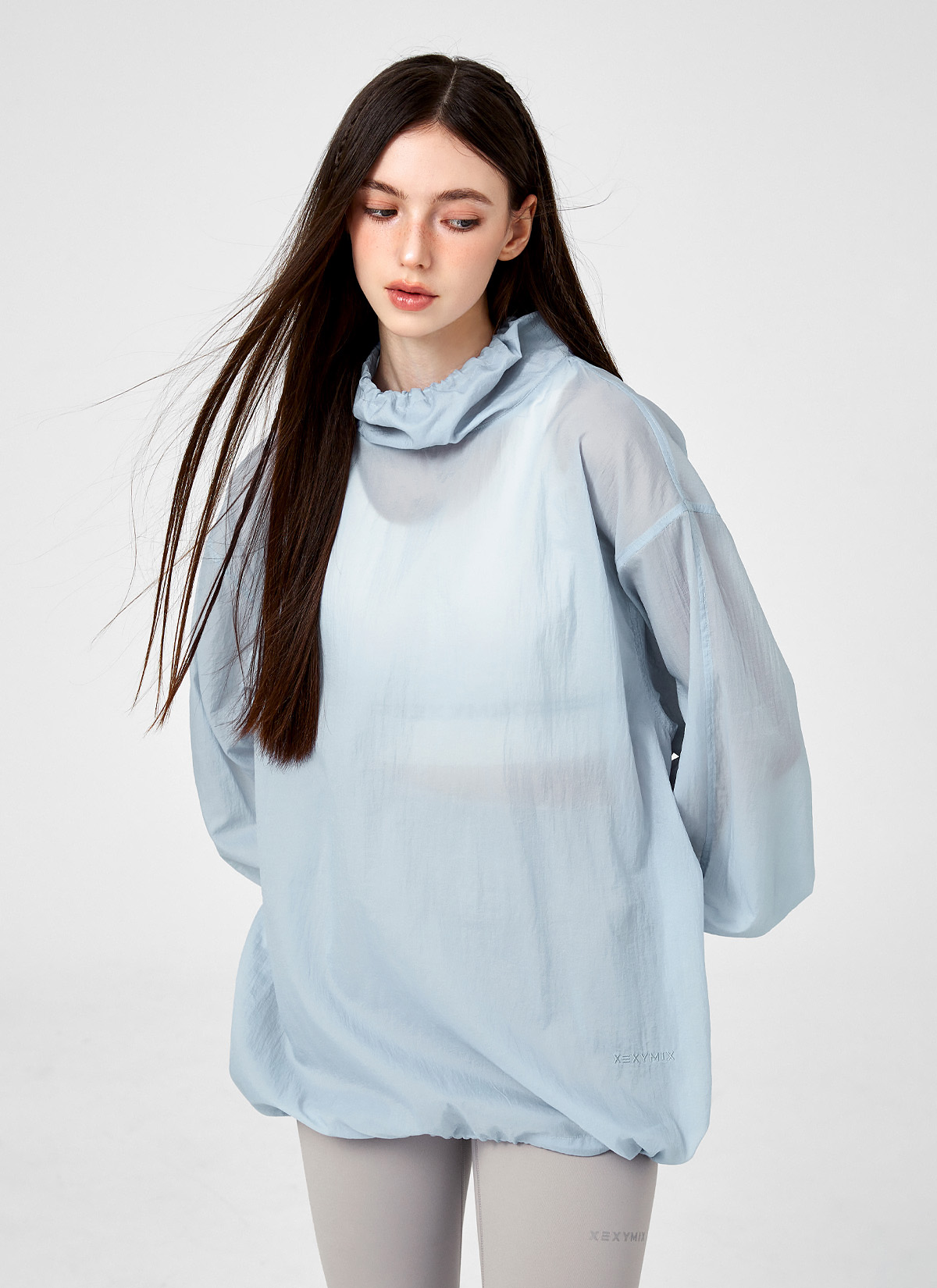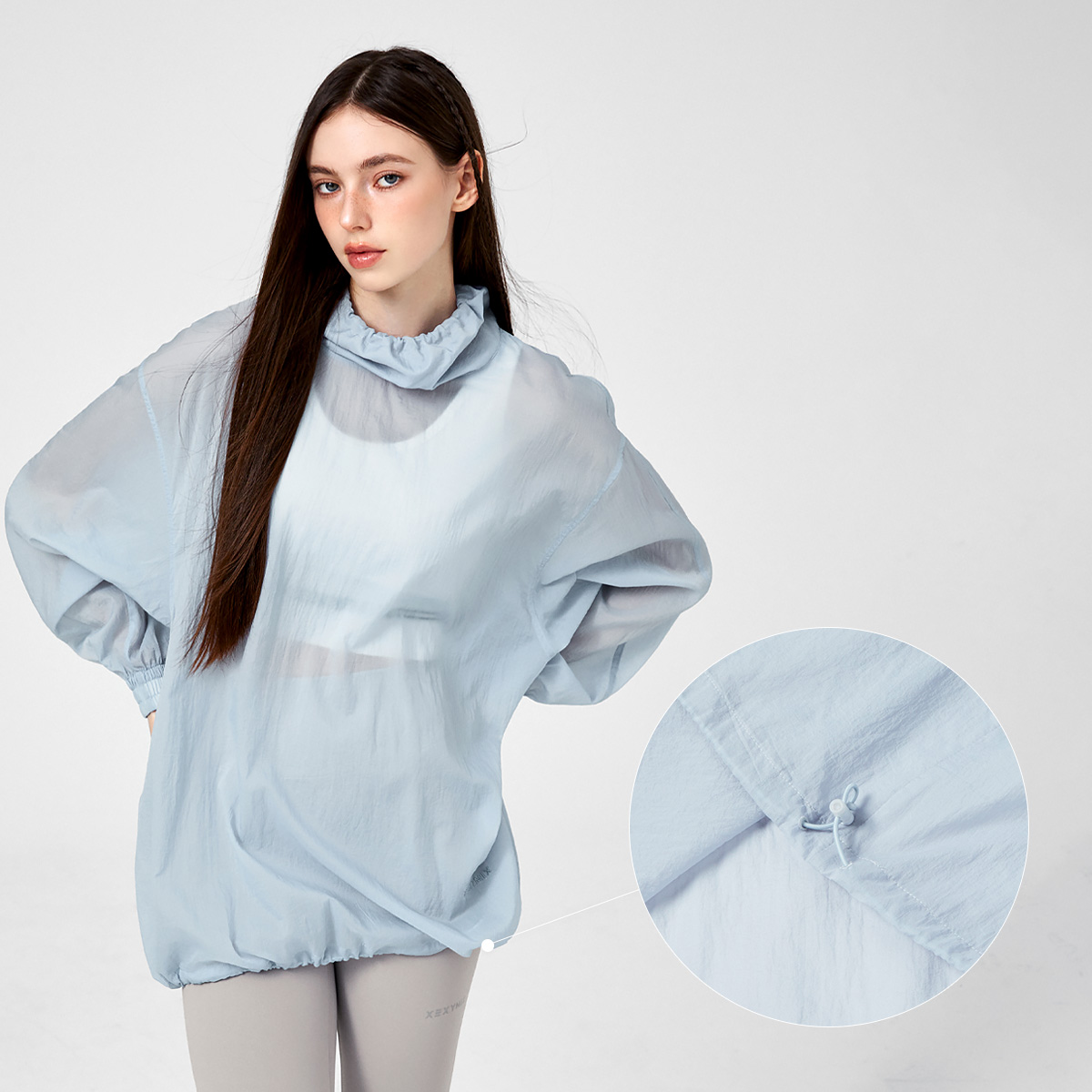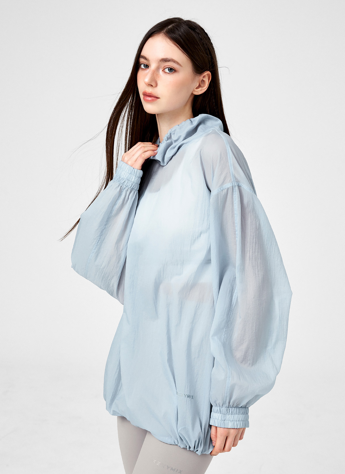 XFK1TL1101 Airy Sheer Cover-up Anorak Oasis Blue top