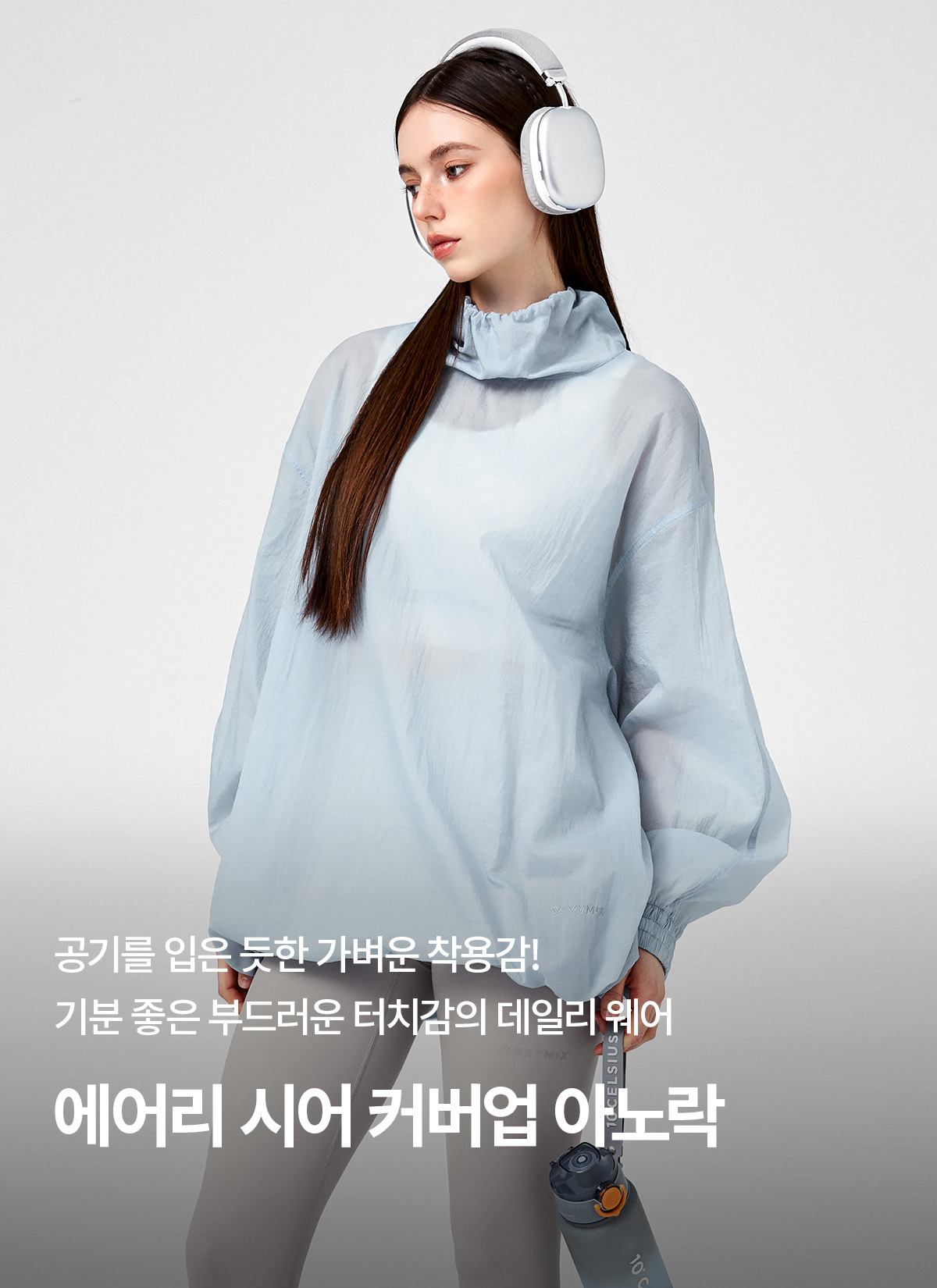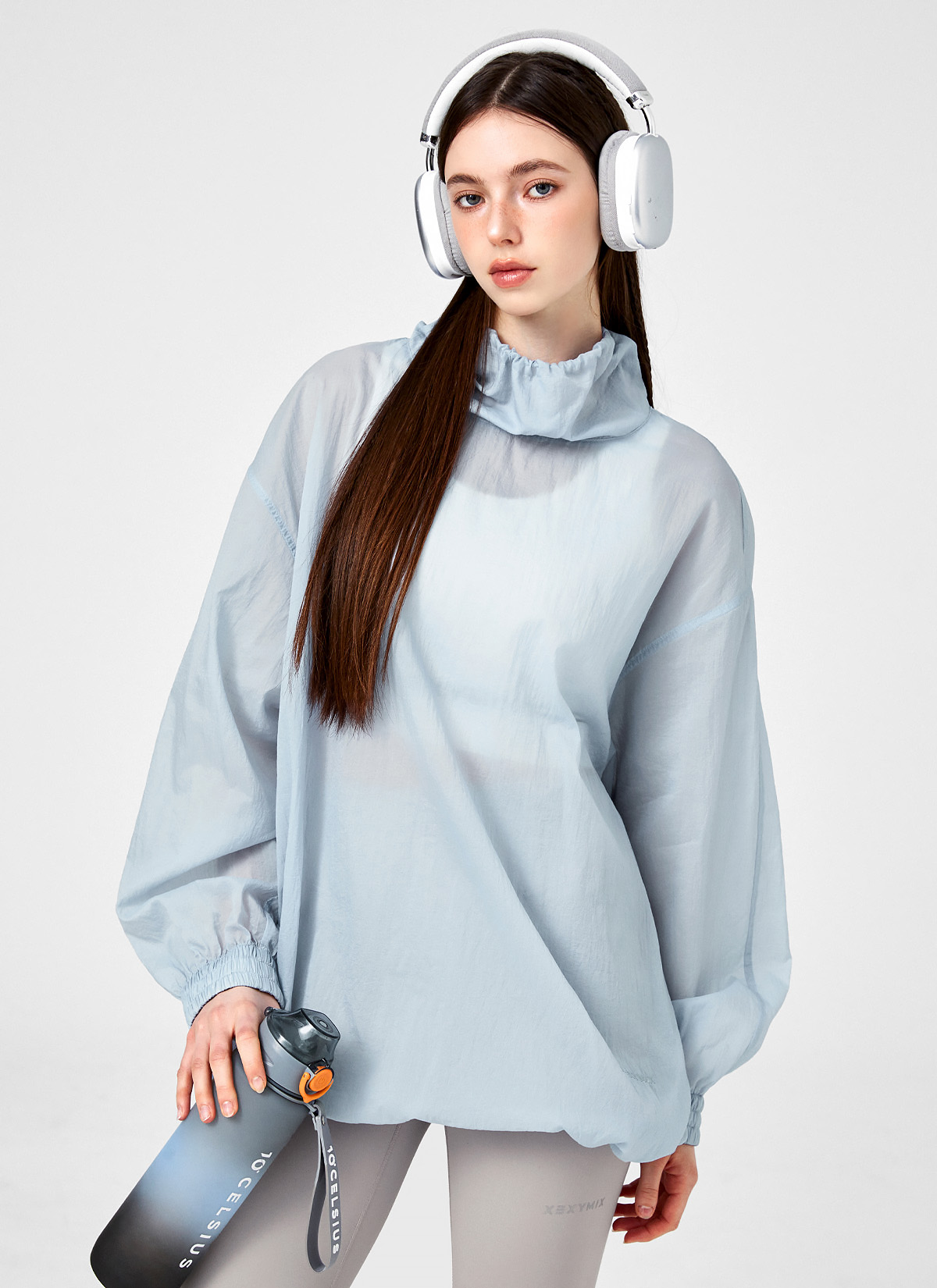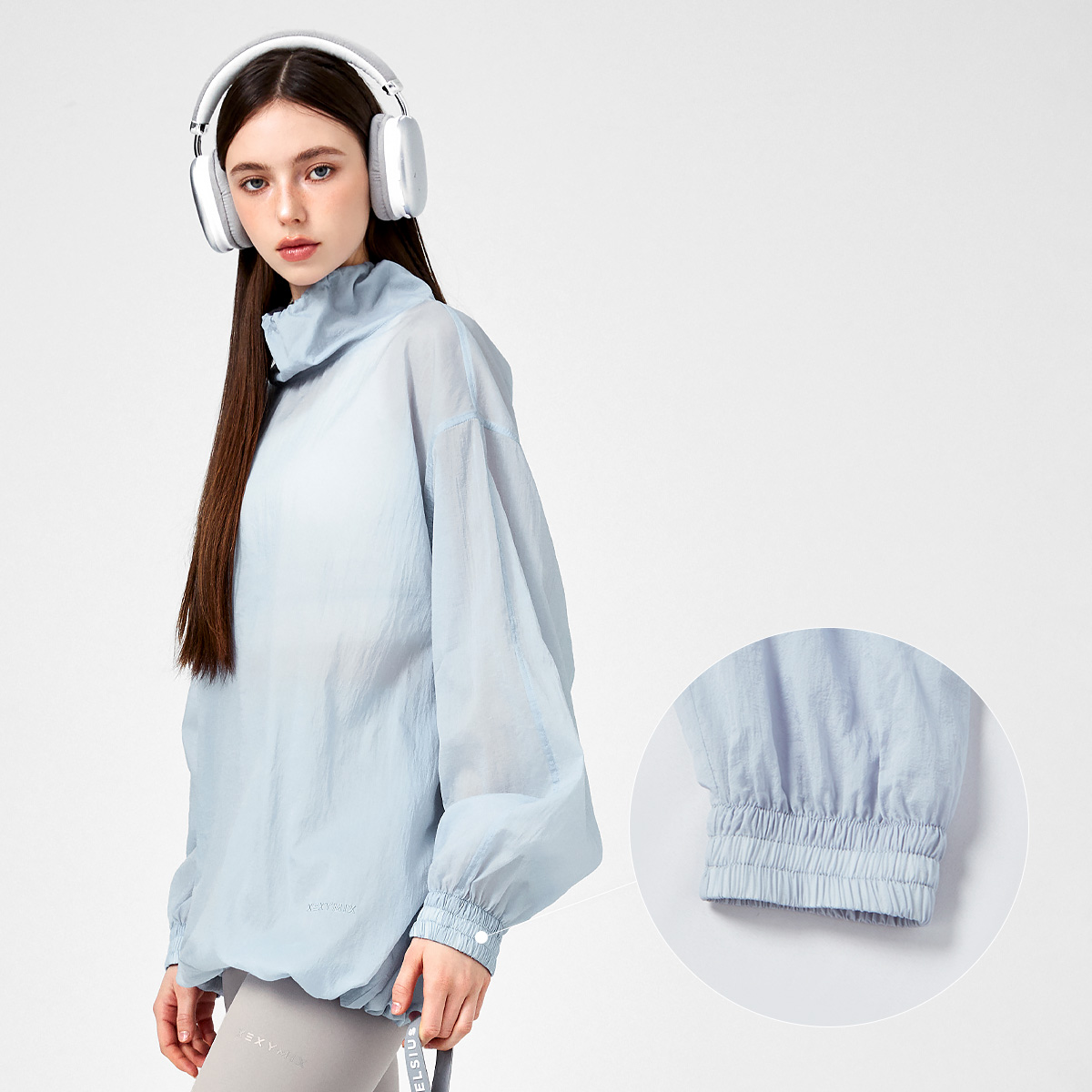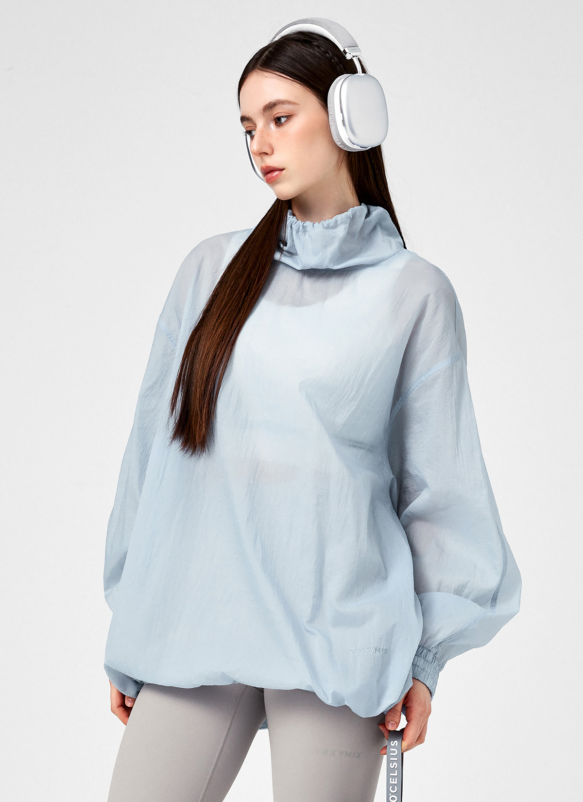 XFK1TL1101 Airy Sheer Cover-up Anorak Oasis Blue top