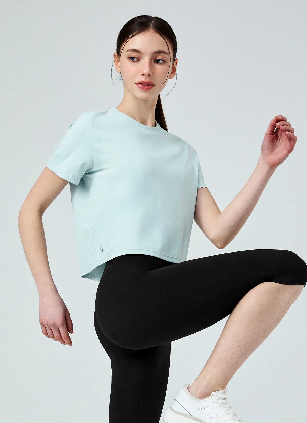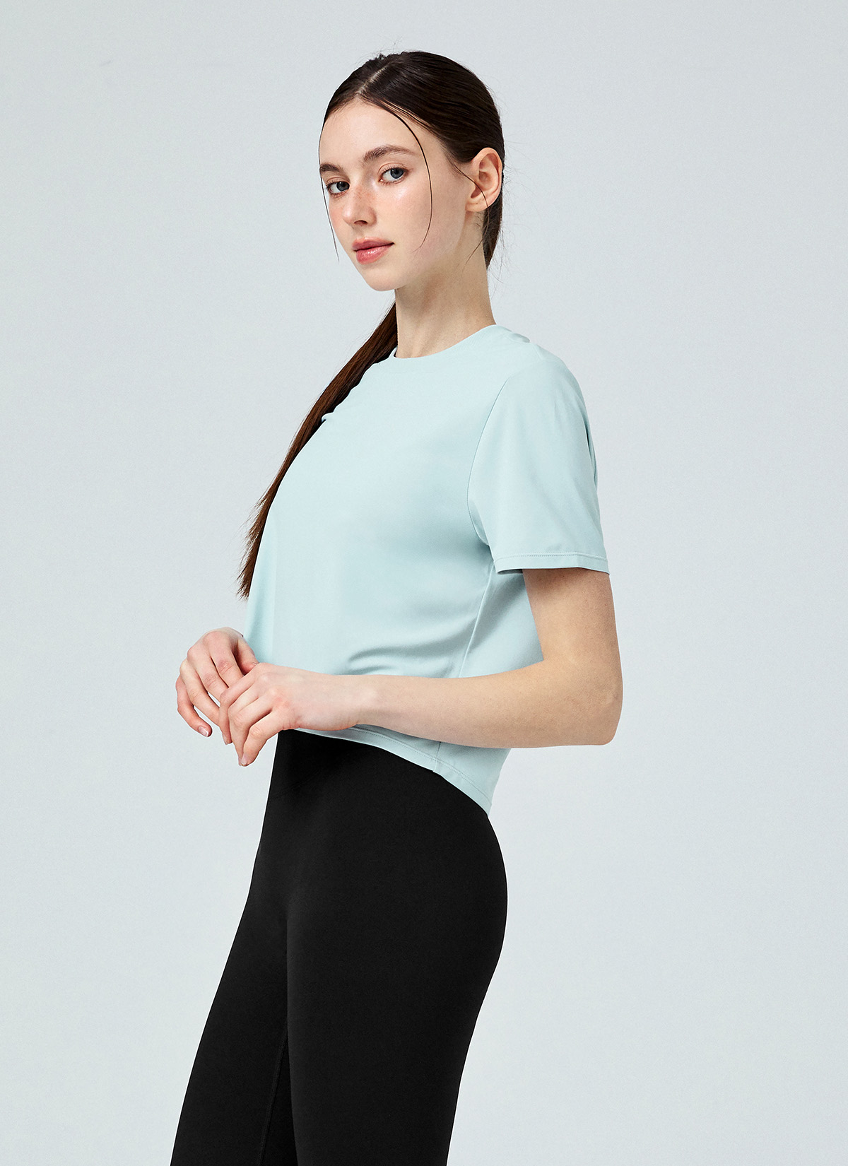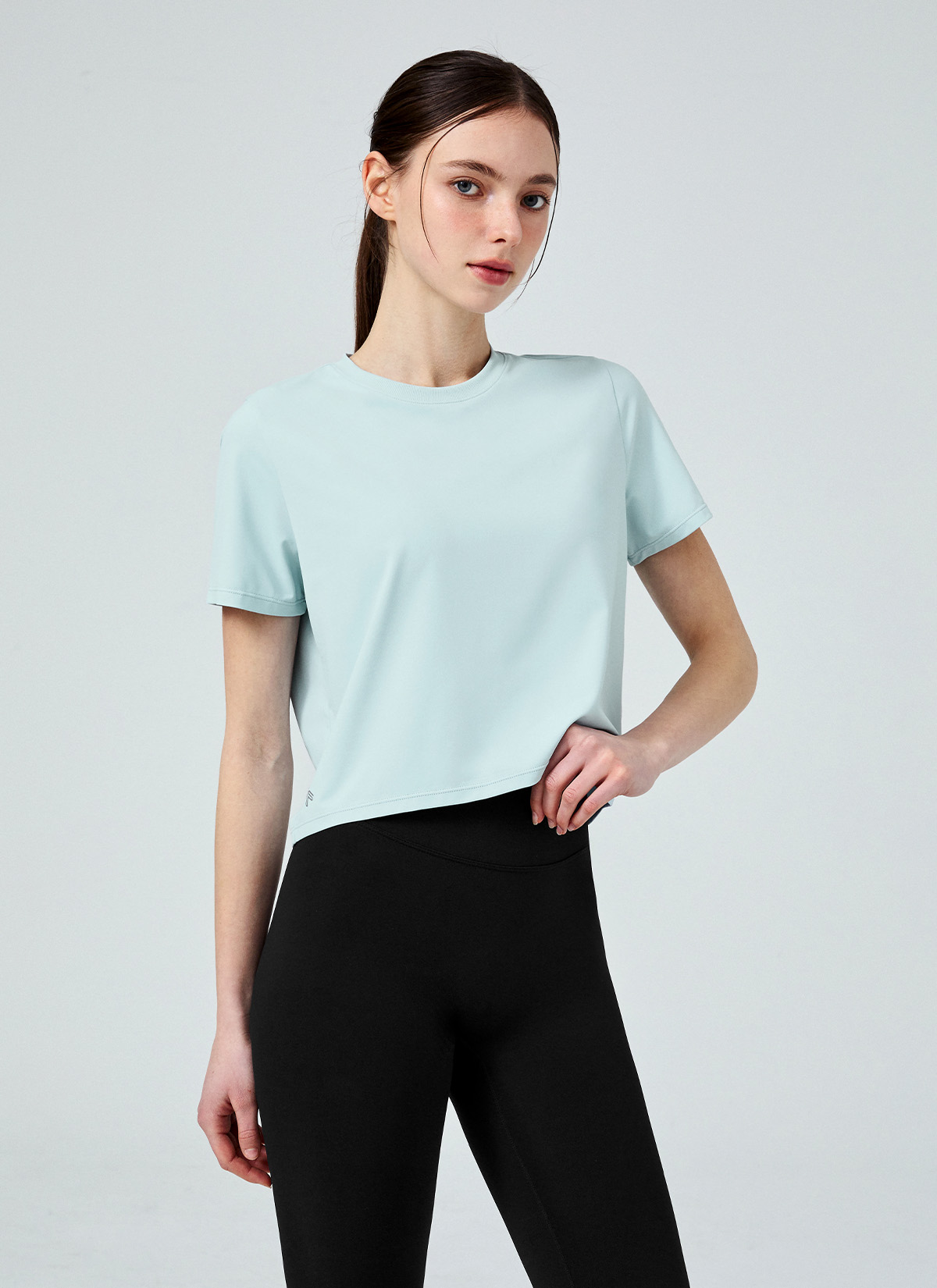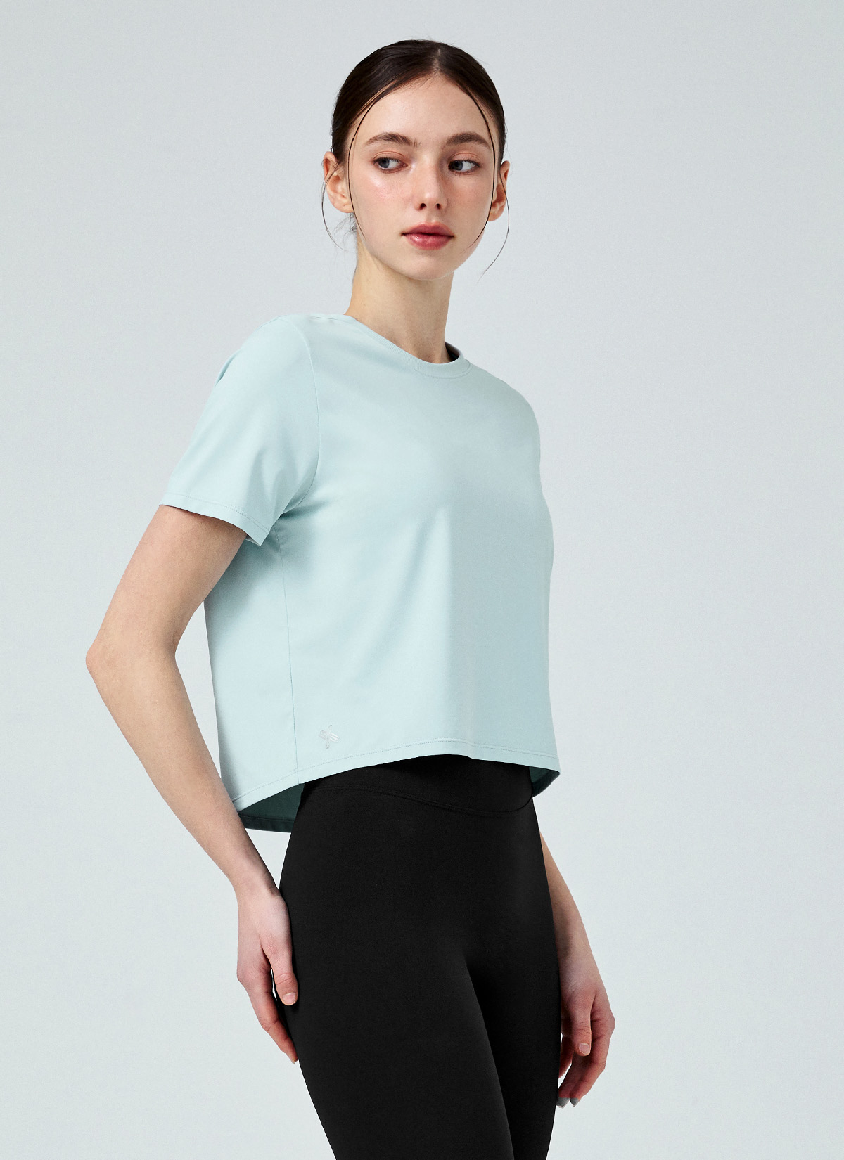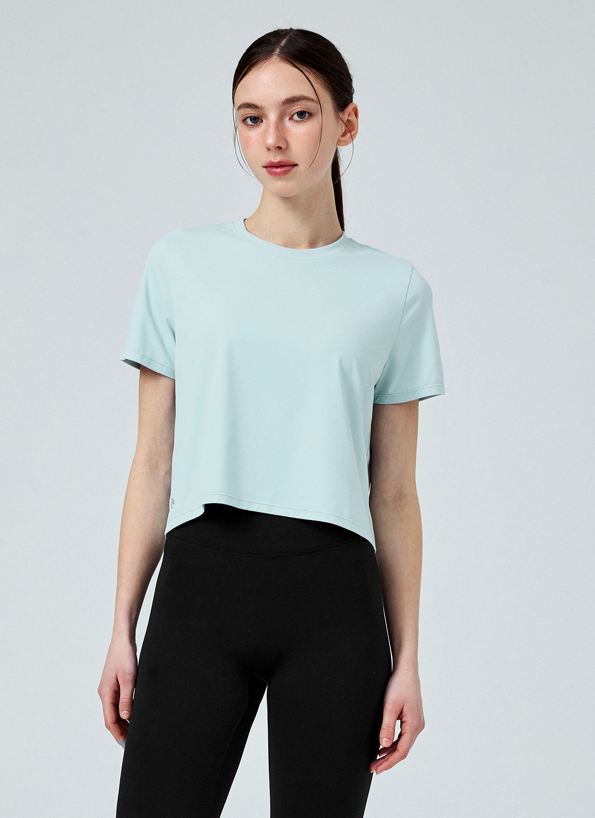 XFK1TS1002 Ice Feather Light 2.0 Crop Short Sleeve Back Mellow Blue top