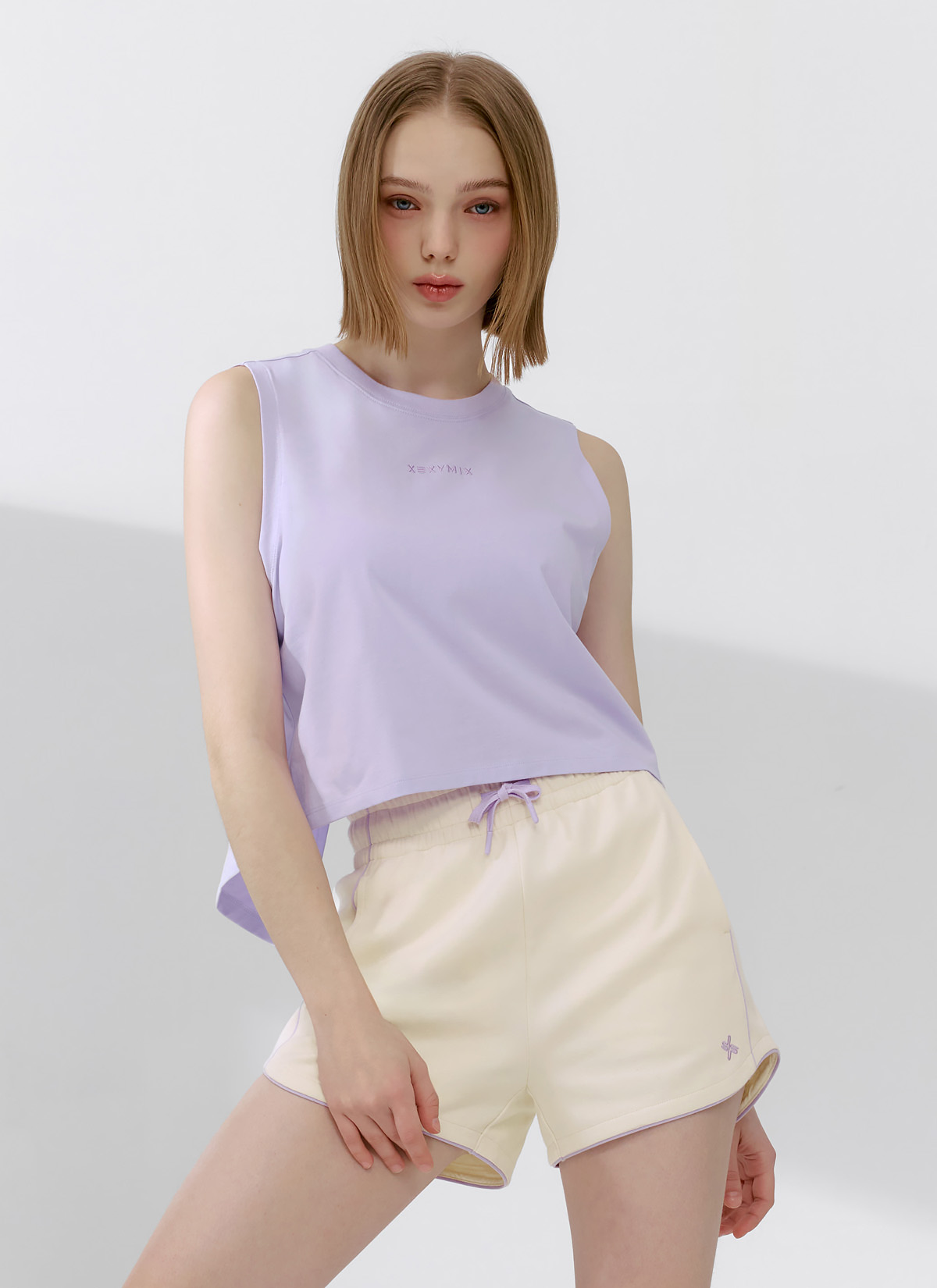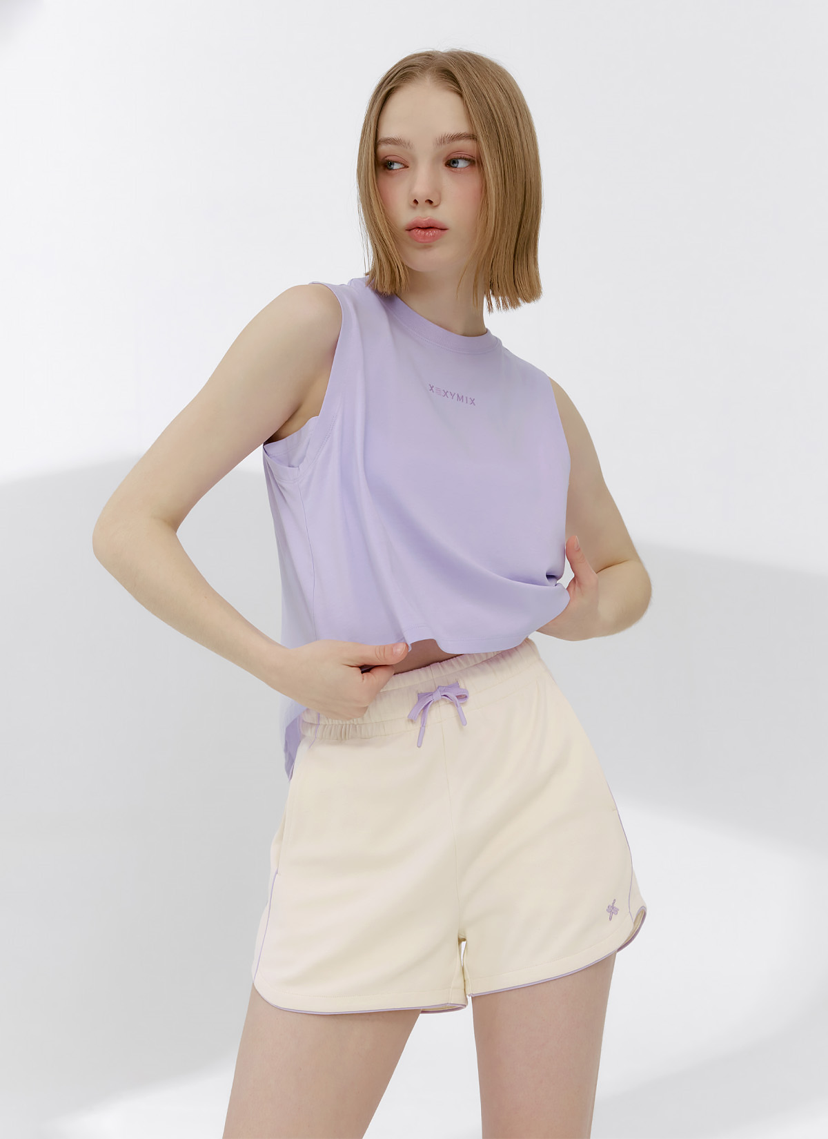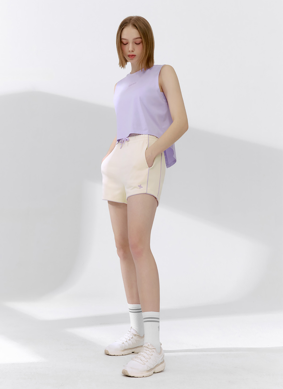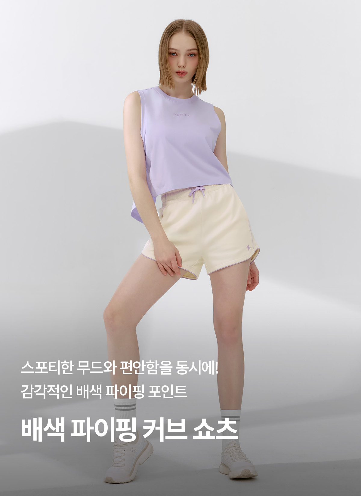 XFK2PS1103 Color Block Piping Curve Shorts Rolling Beige BOTTOM