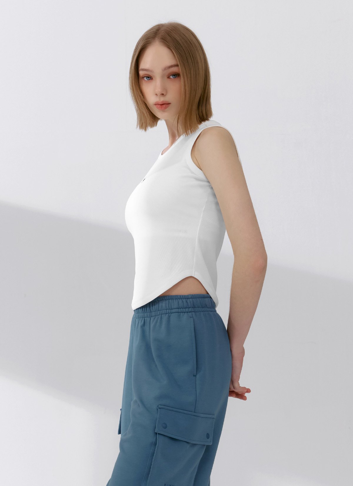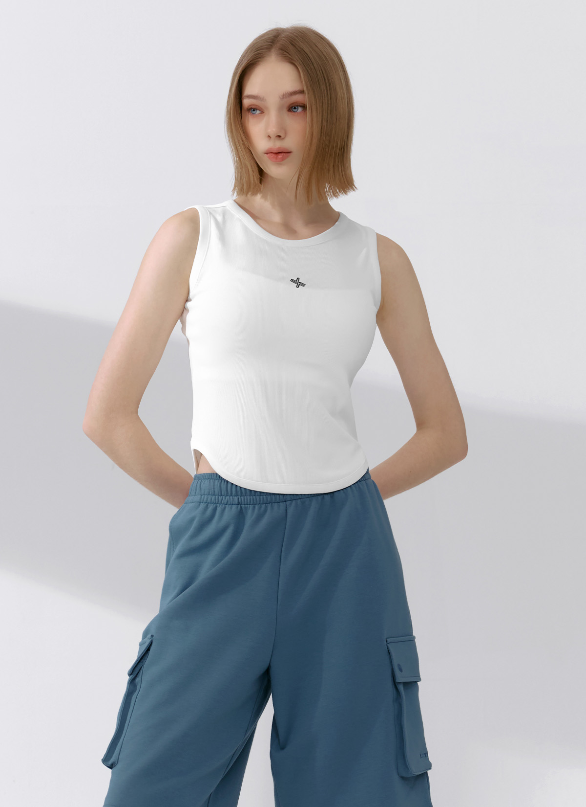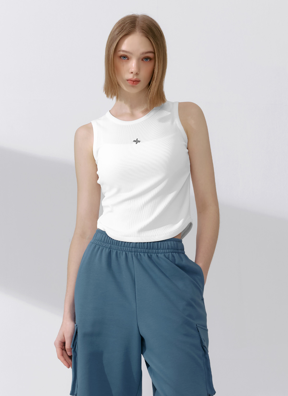 XFK2TE1101 Ribbed Tension Sleeveless Ivory TOP