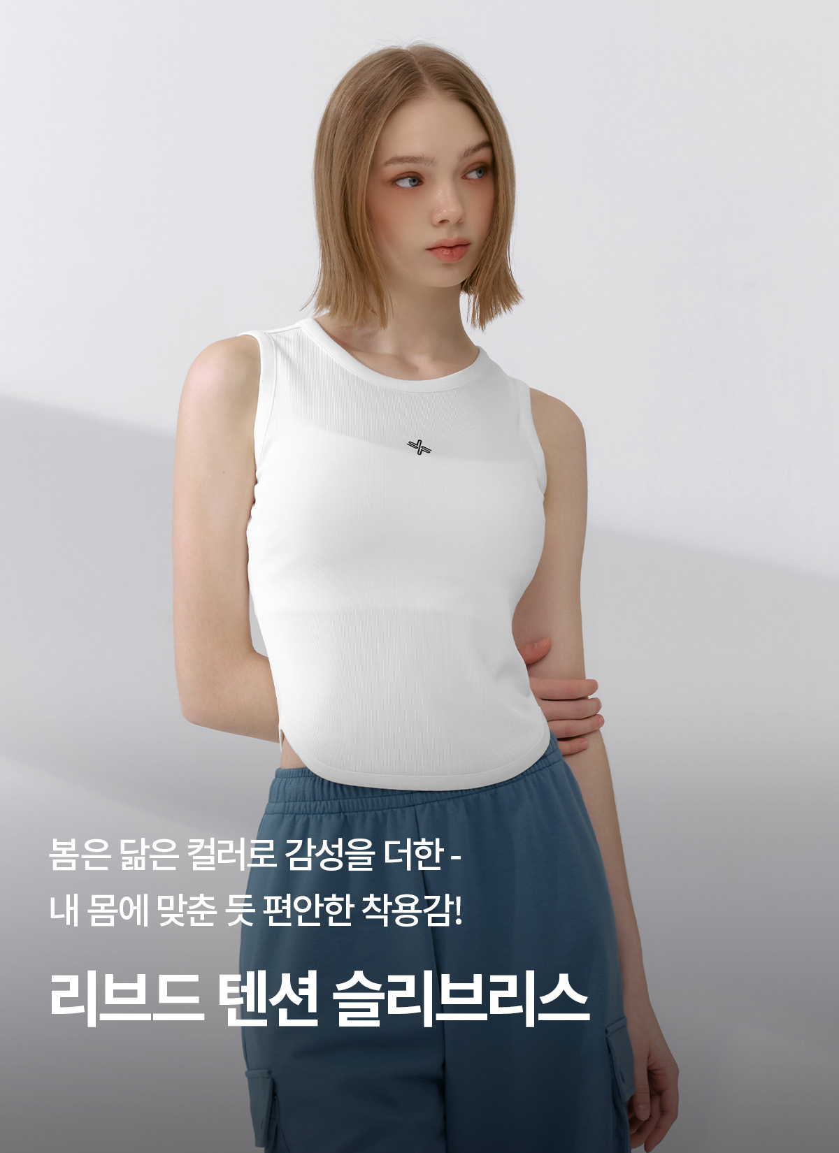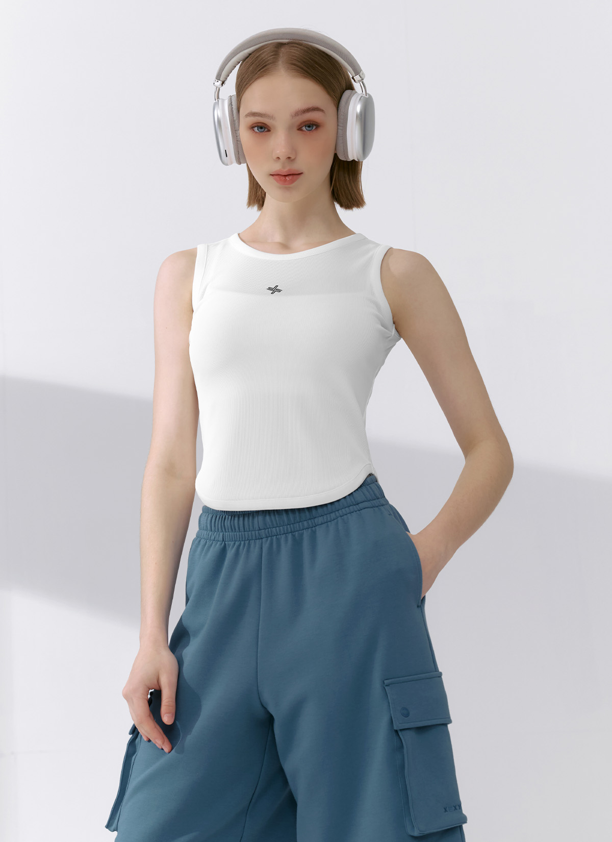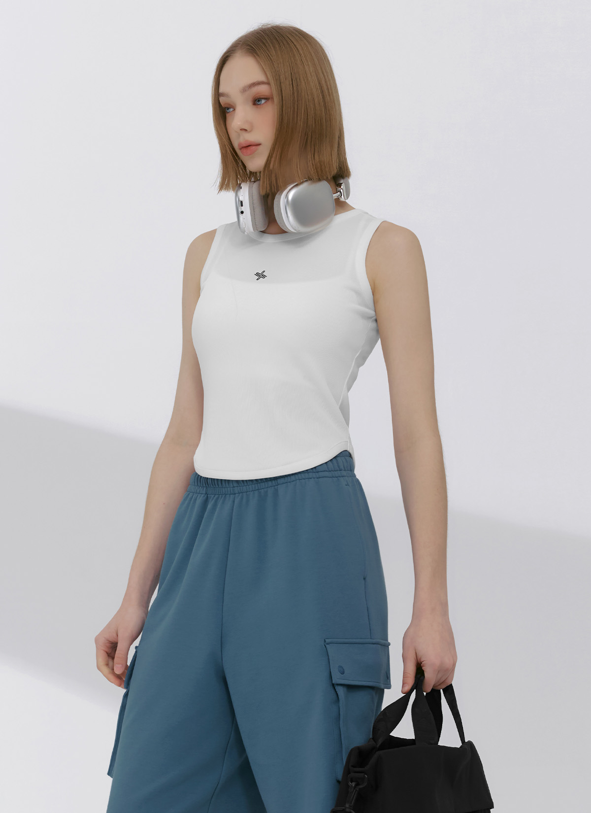 XFK2TE1101 Ribbed Tension Sleeveless Ivory TOP