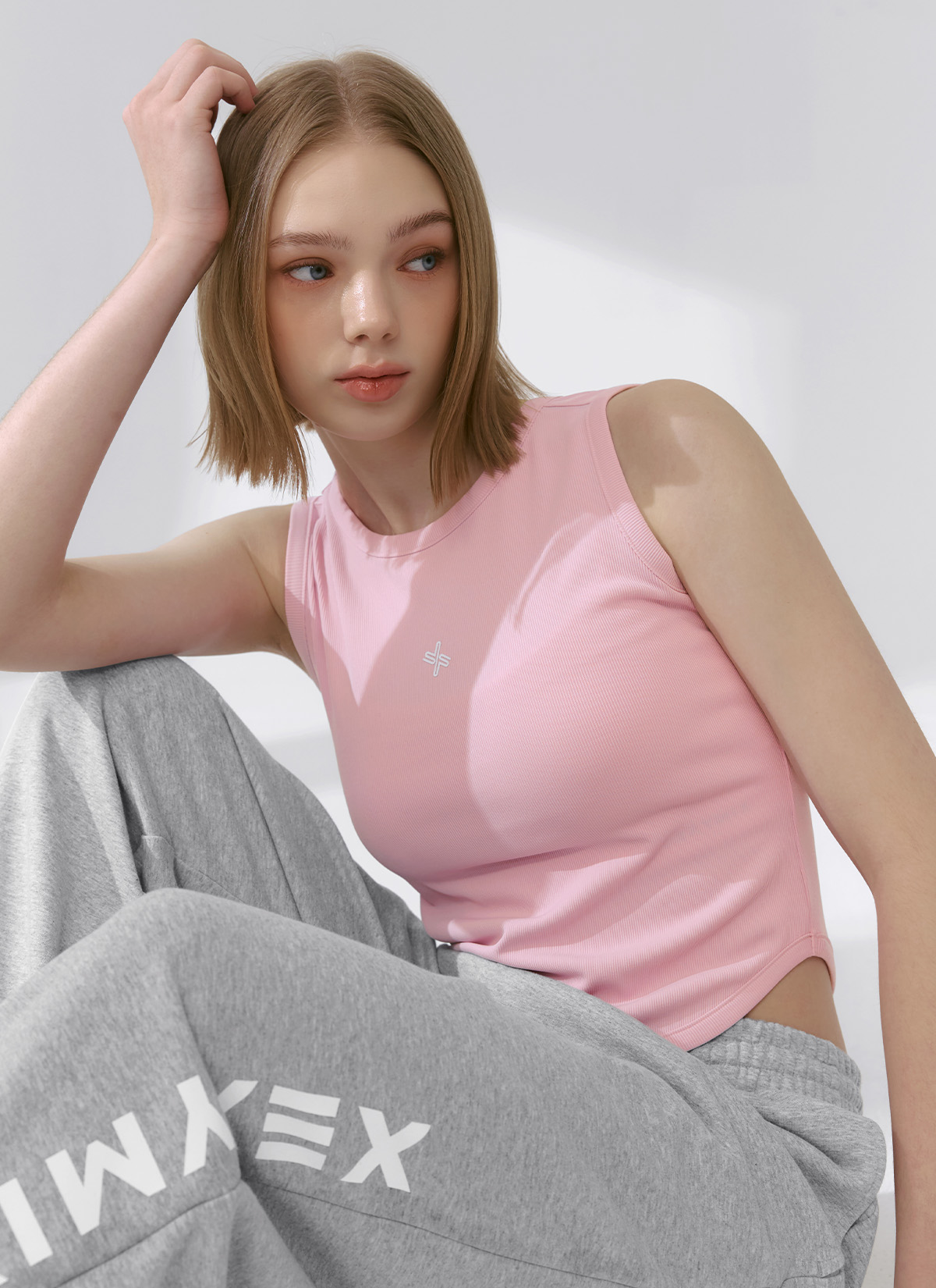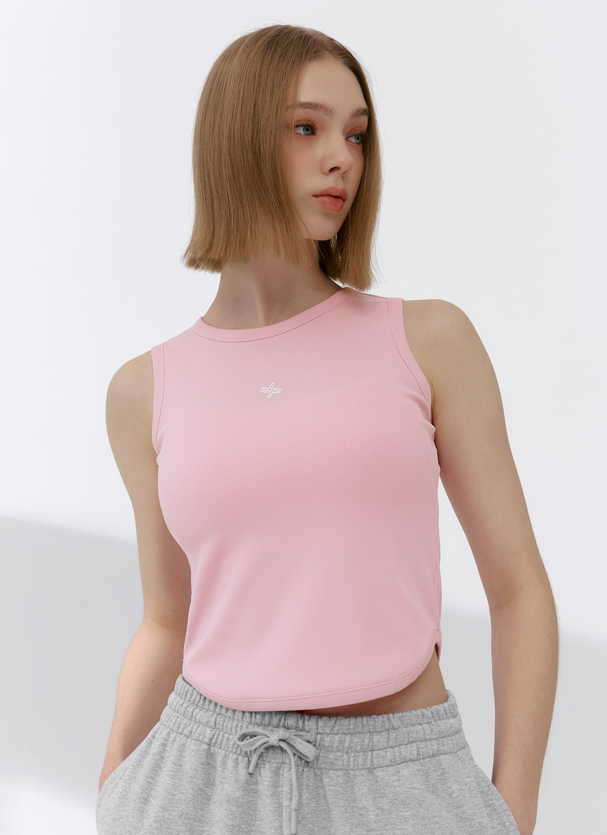 XFK2TE1101 Ribbed Tension Sleeveless Pink Essence TOP