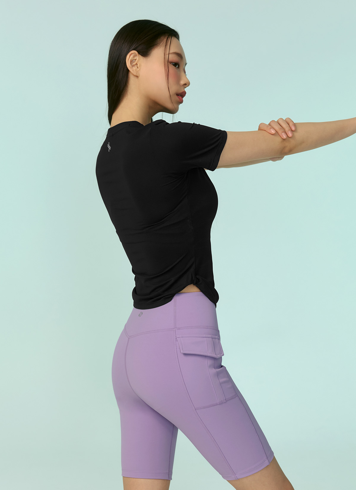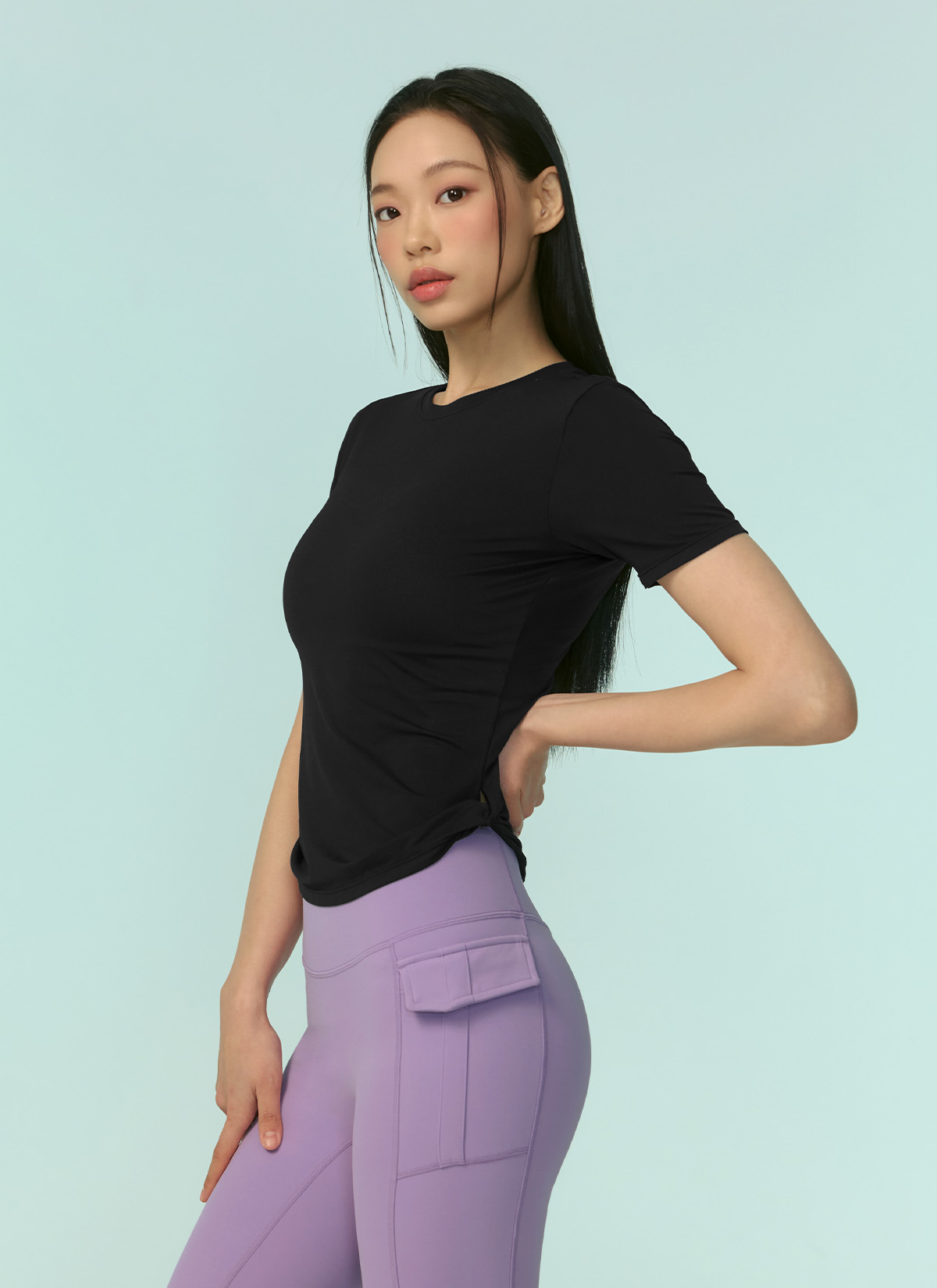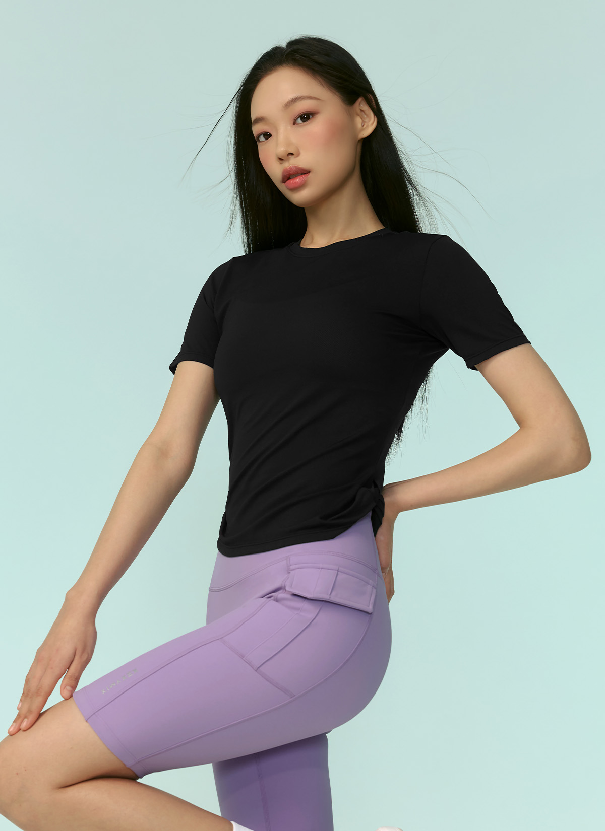 XFK2TS1003 Air Mesh Side Twist Short Sleeve black top