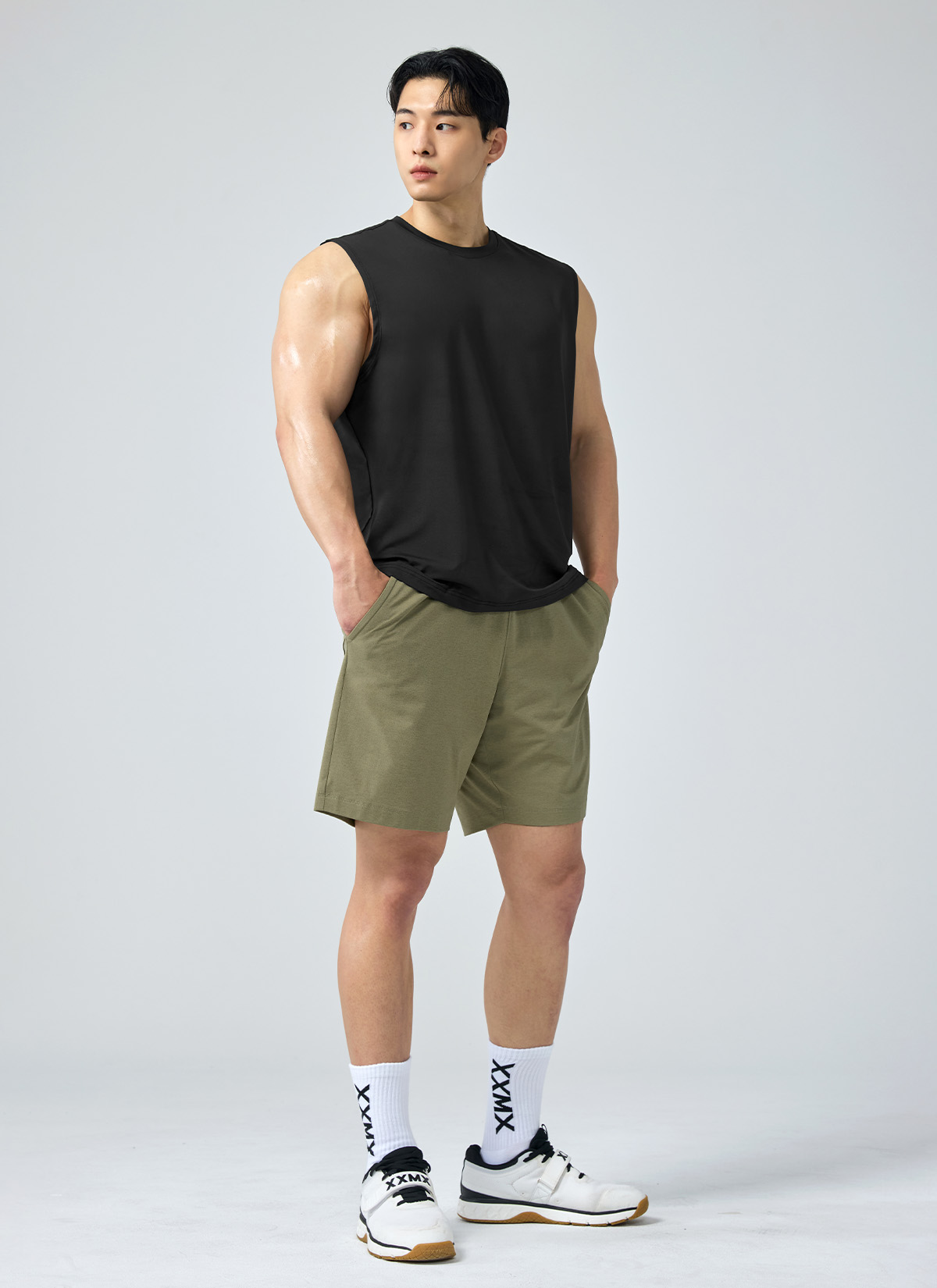 Model Size : Height : 184cmWeight : 87kg Top : 102cmBottom : 32inchFitting Size : XL