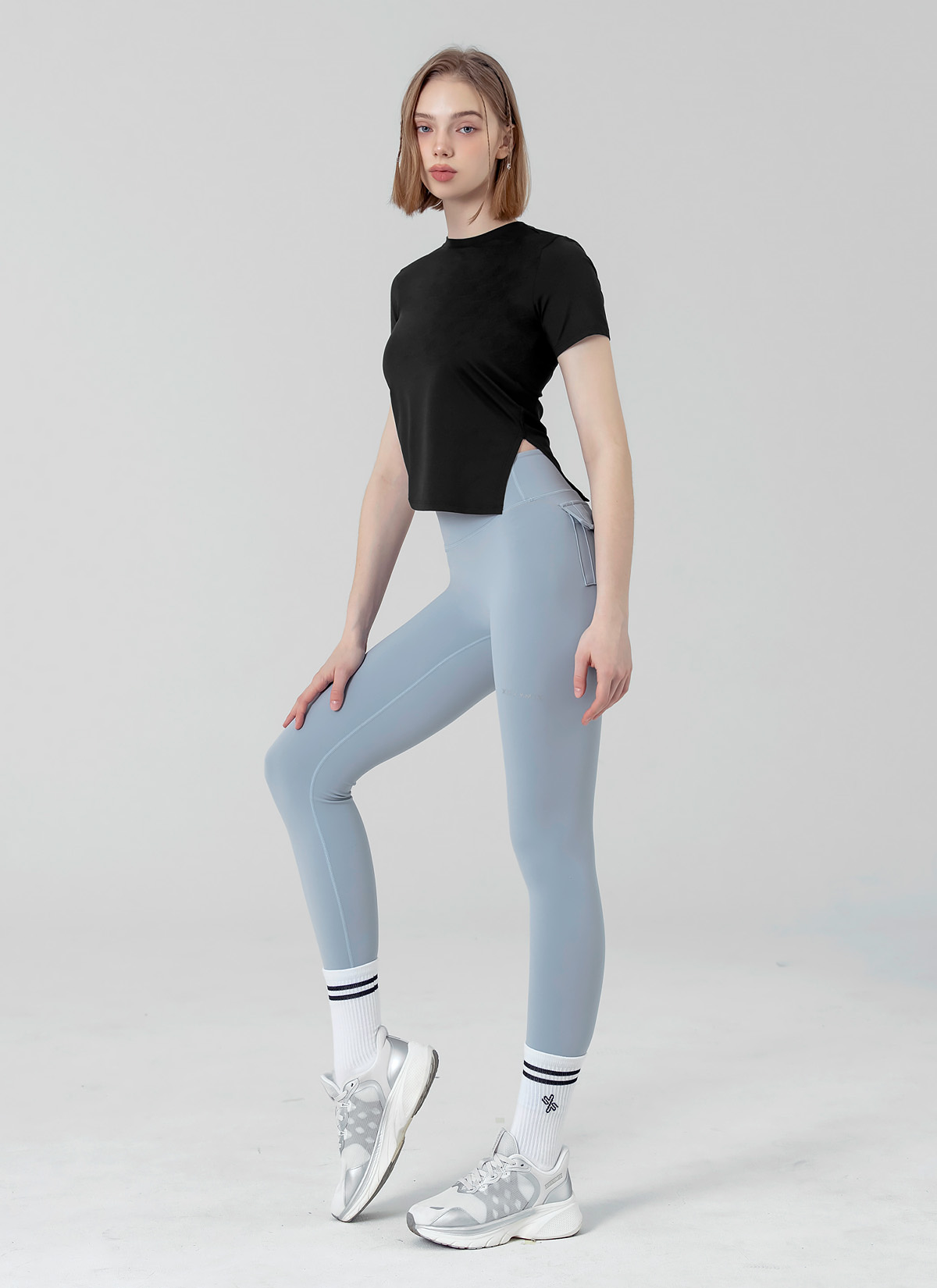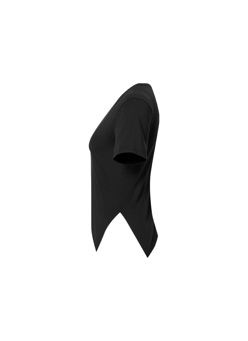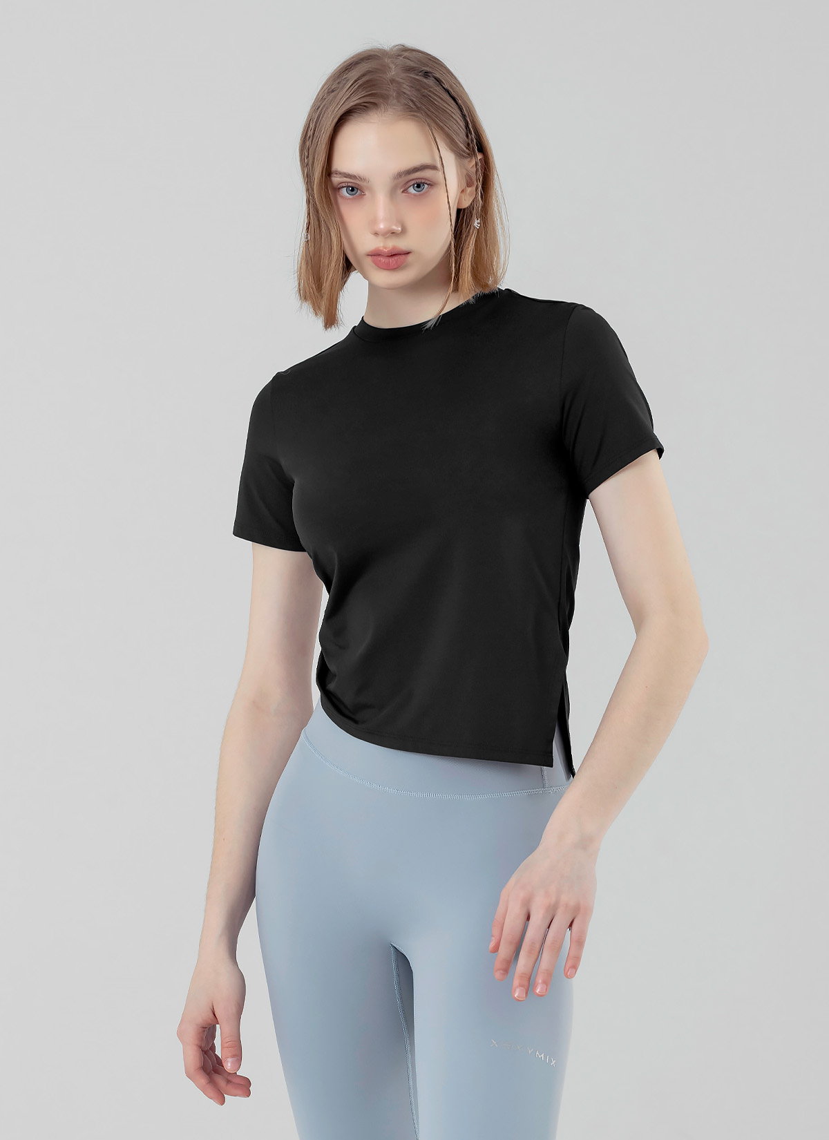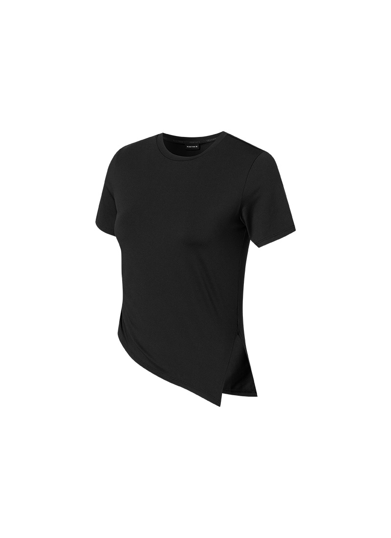 XFK2TS1004 Unbalanced Side Shirring Short Sleeve Black TOP