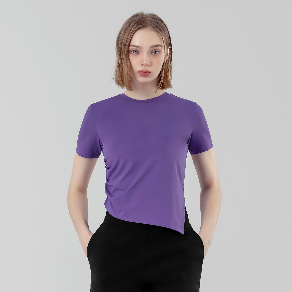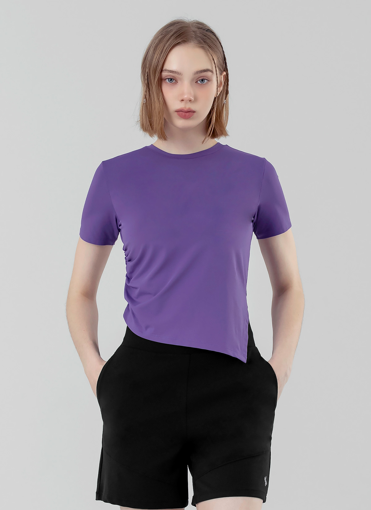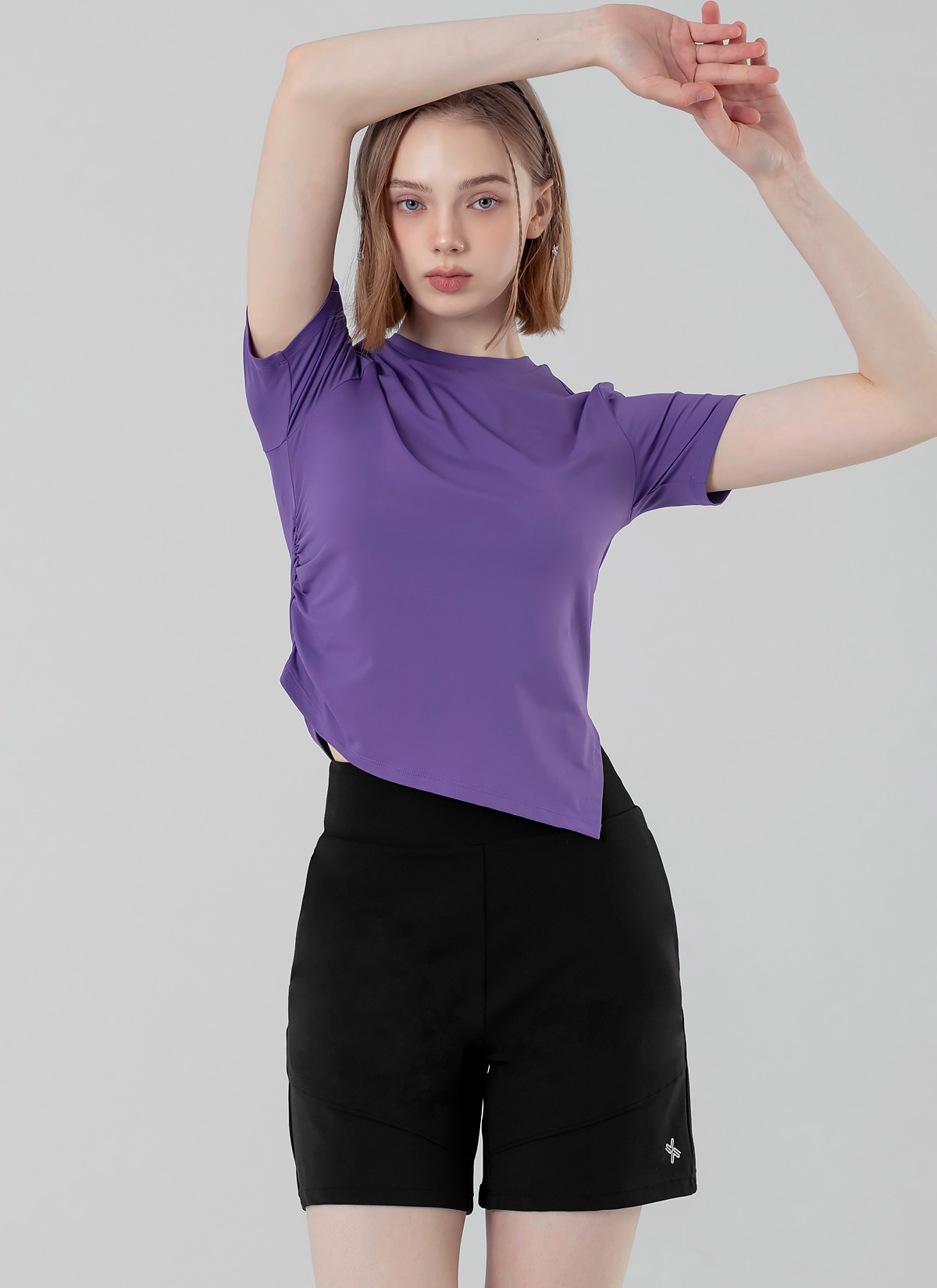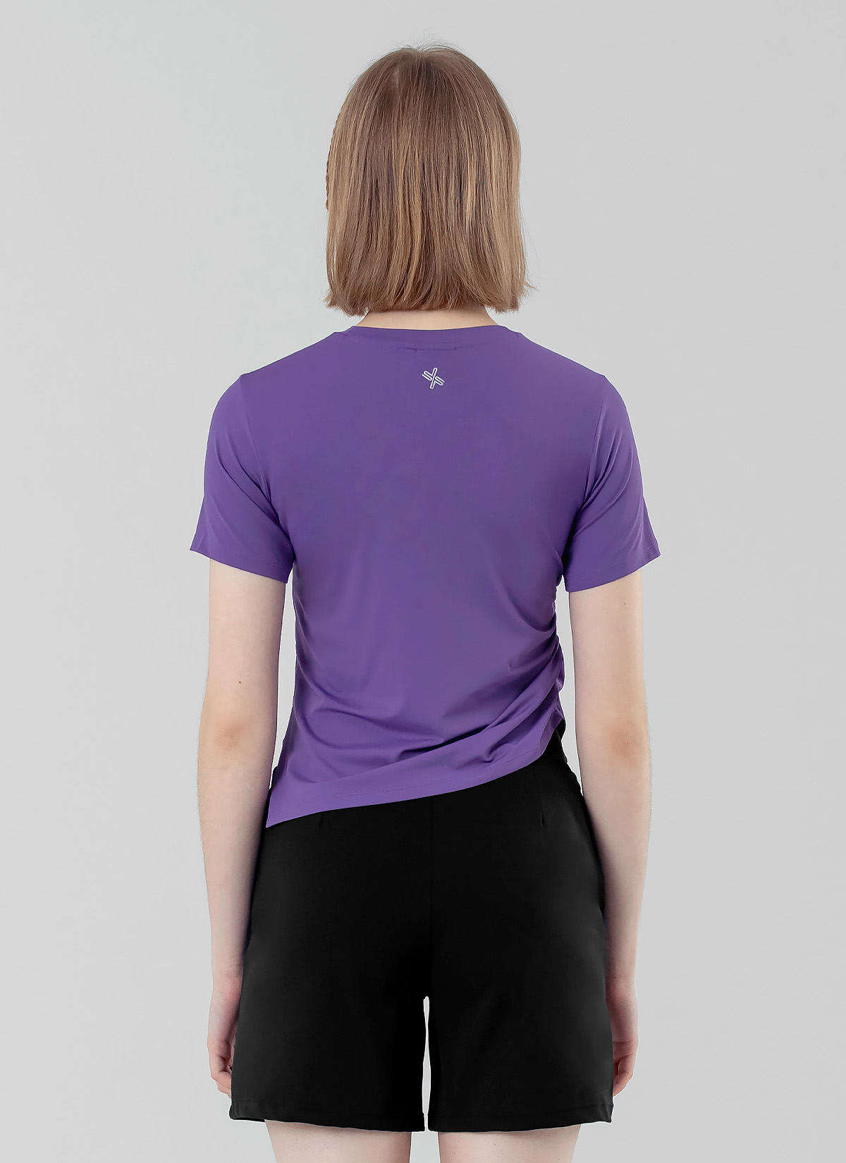 XFK2TS1004 Unbalanced Side Shirring Short Sleeve Coat Purple TOP