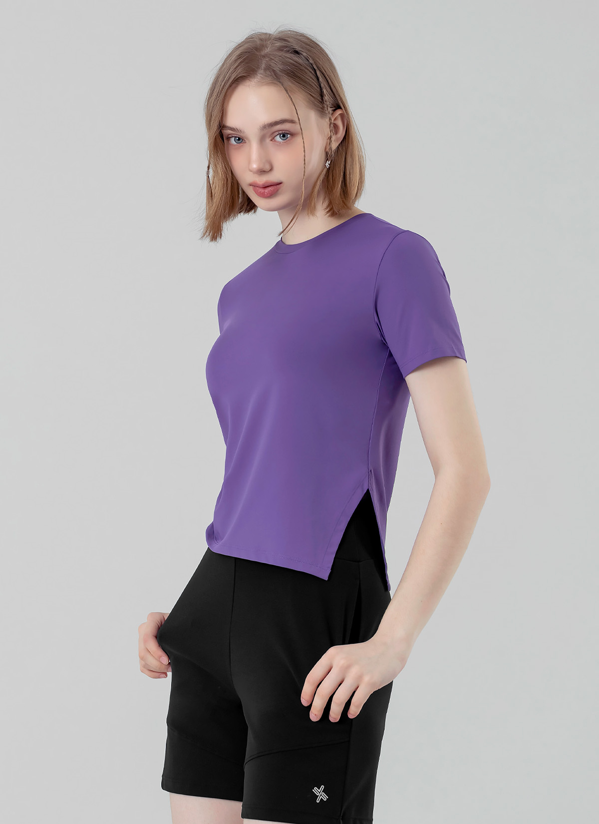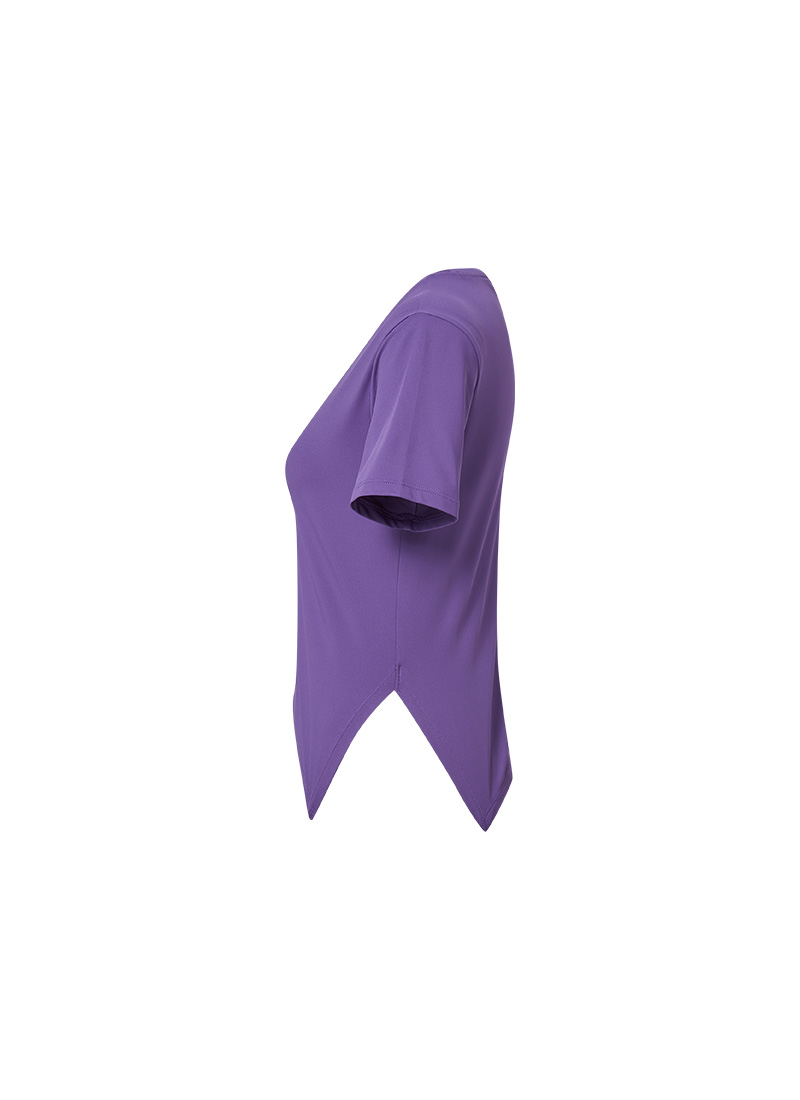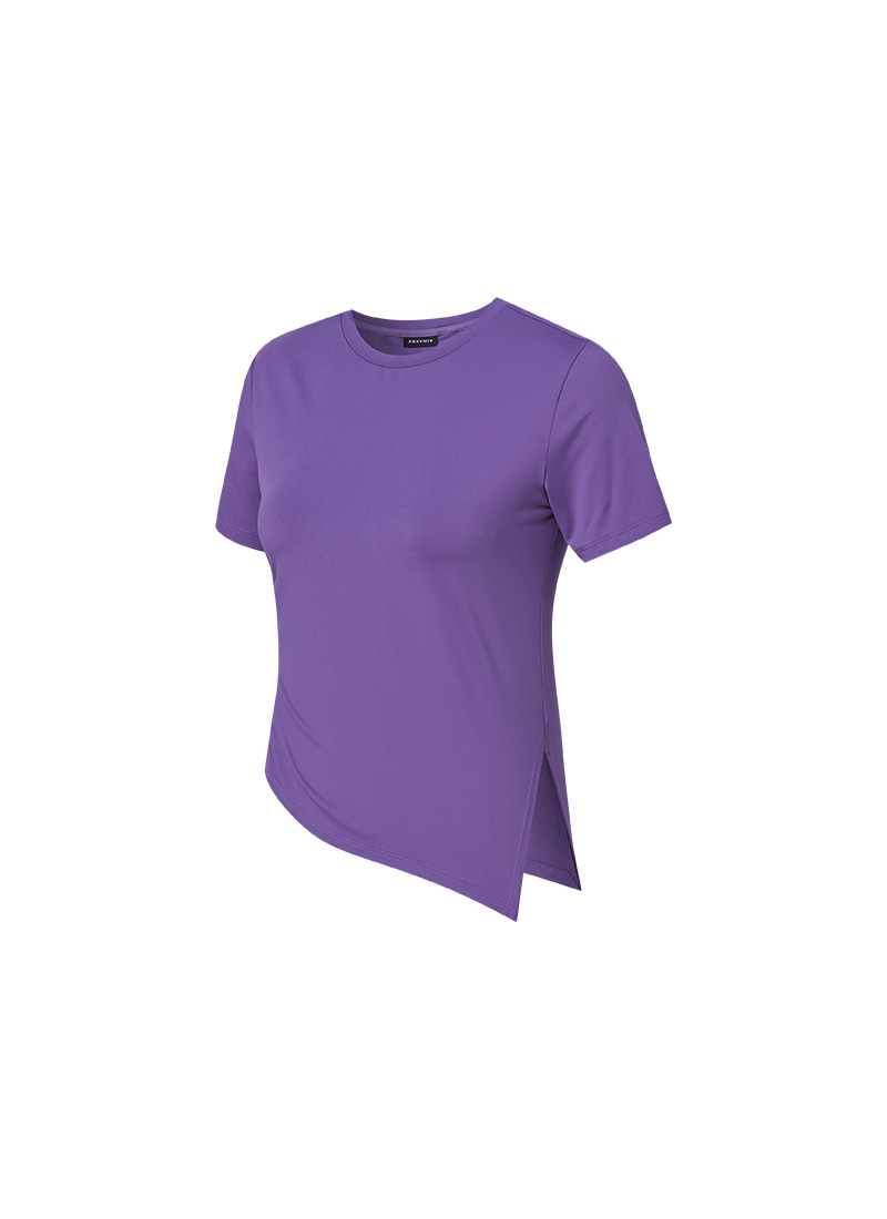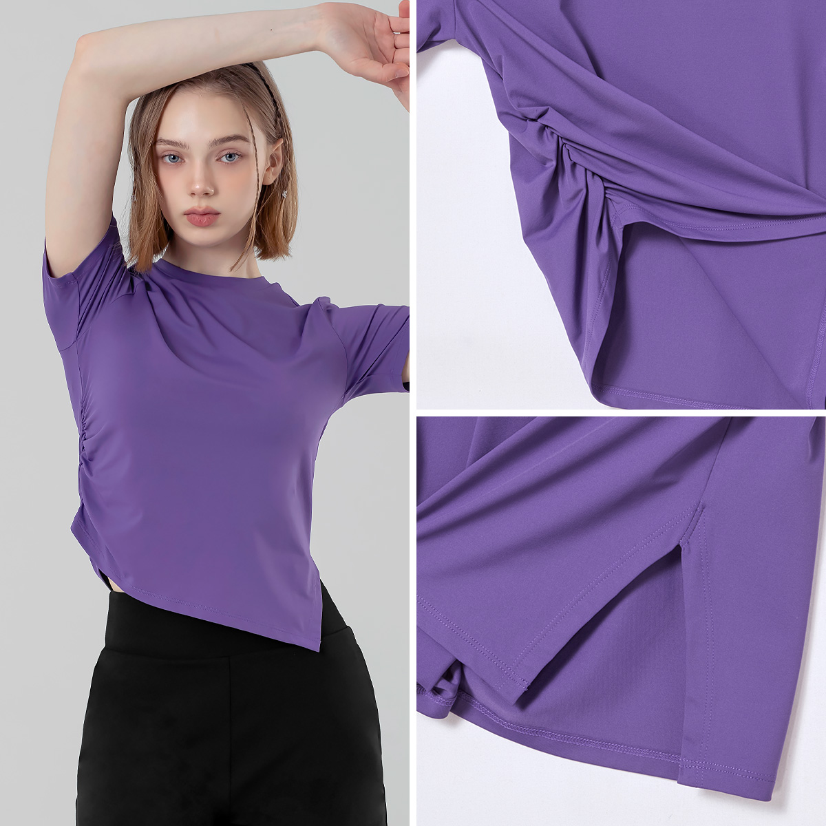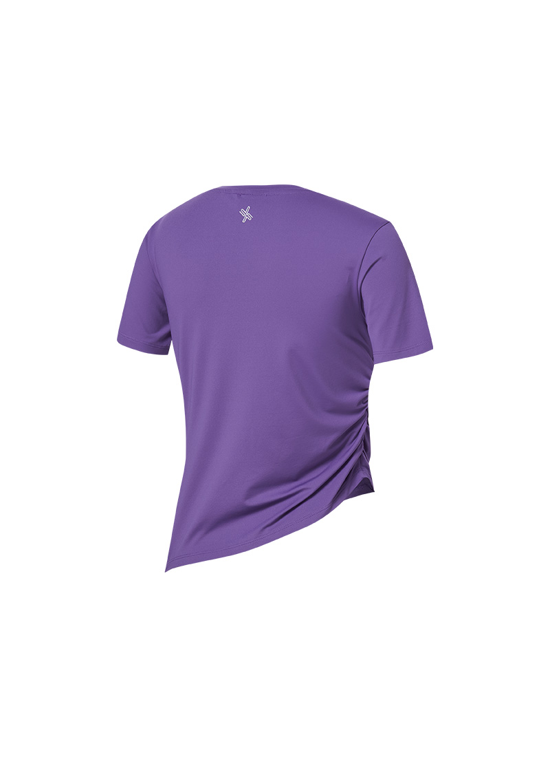 XFK2TS1004 Unbalanced Side Shirring Short Sleeve Coat Purple TOP