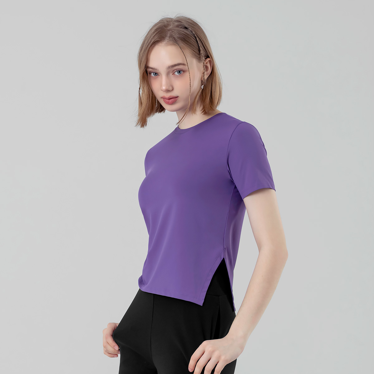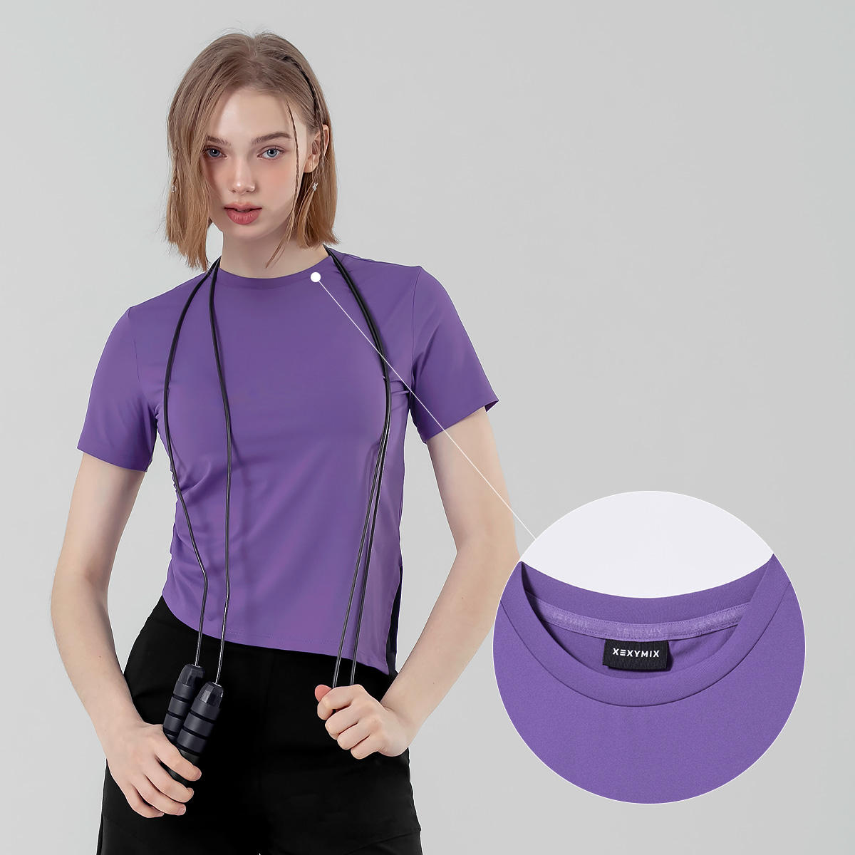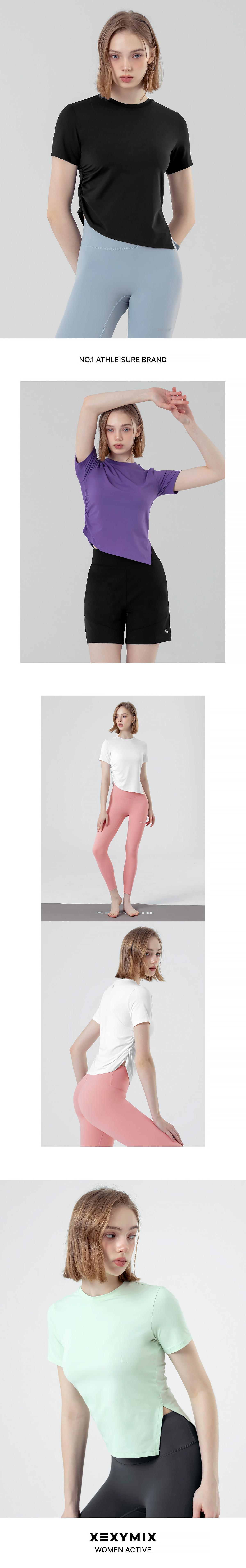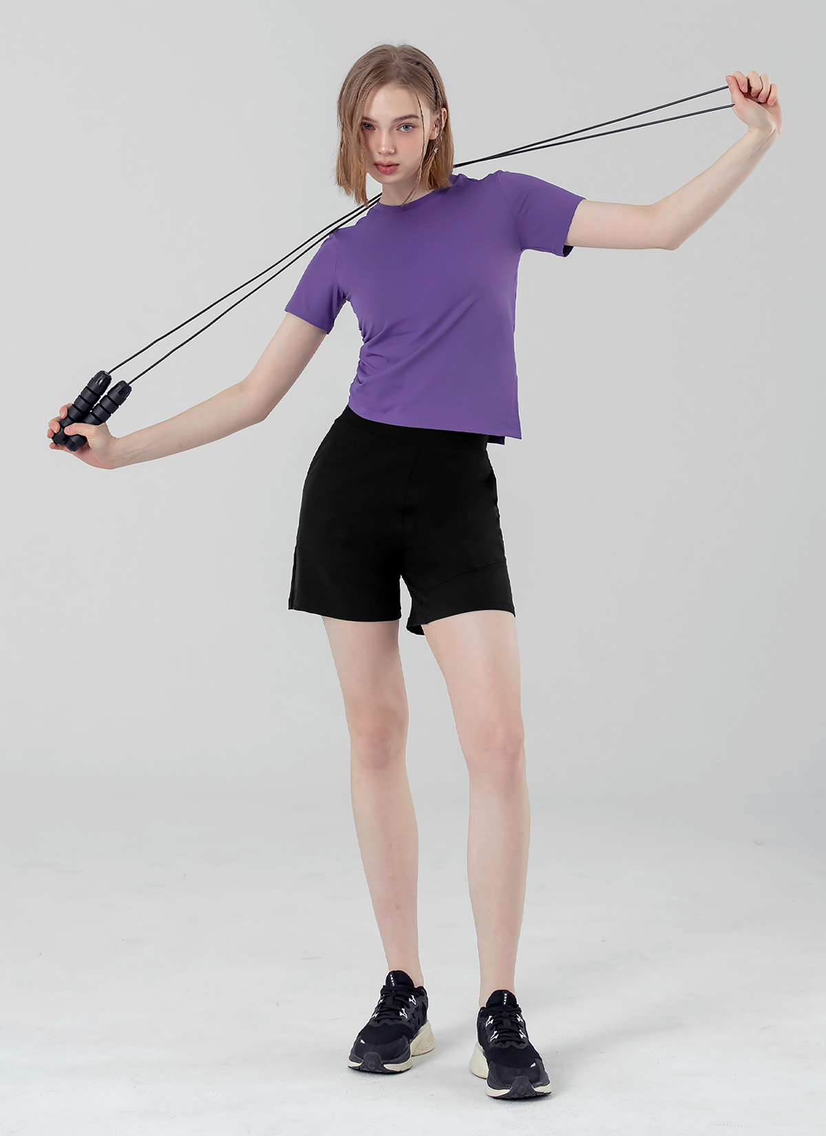 XFK2TS1004 Unbalanced Side Shirring Short Sleeve Coat Purple TOP