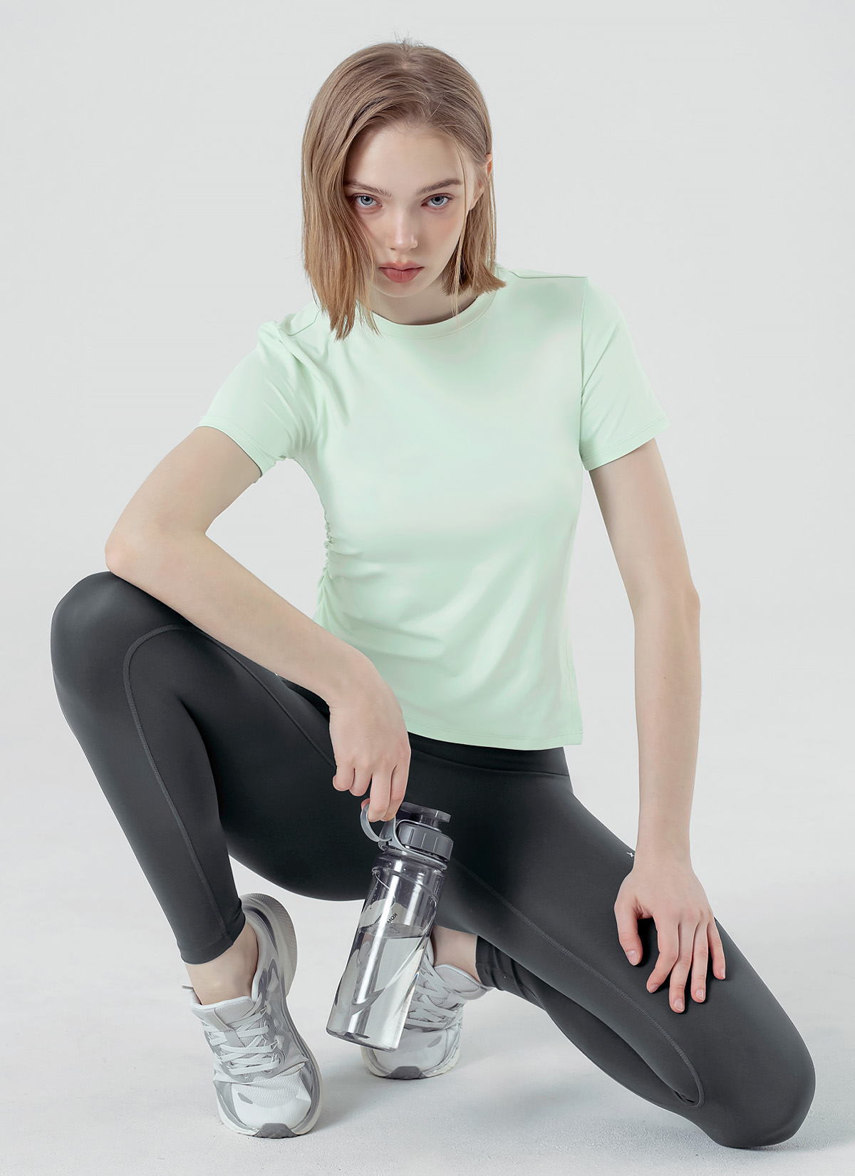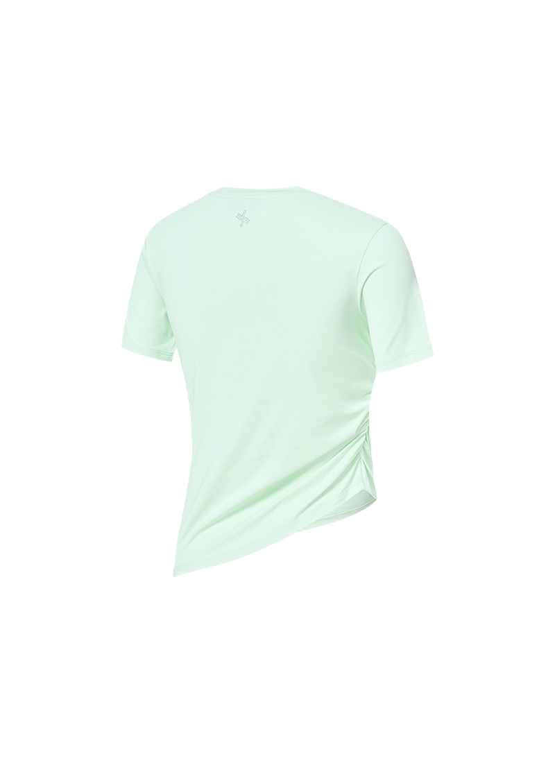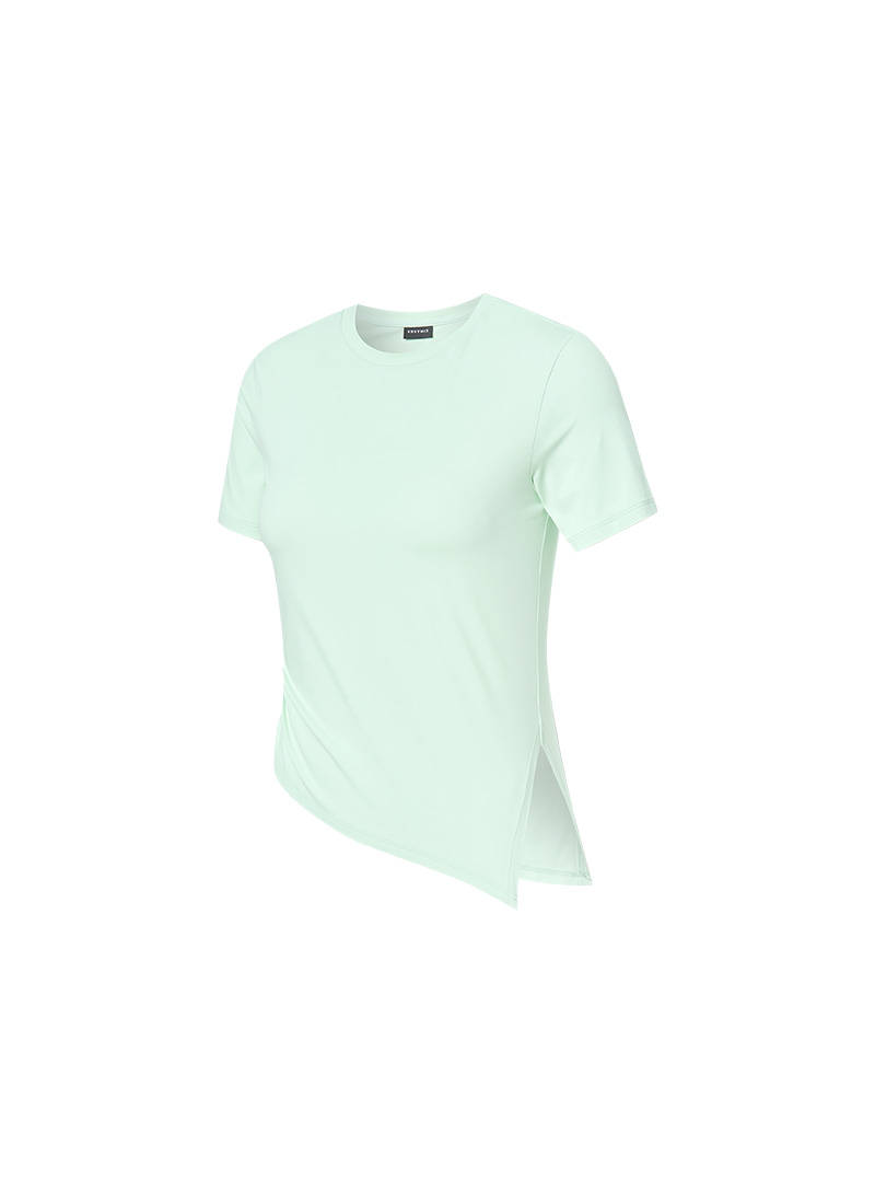XFK2TS1004 Unbalanced Side Shirring Short Sleeve Mint Dew TOP