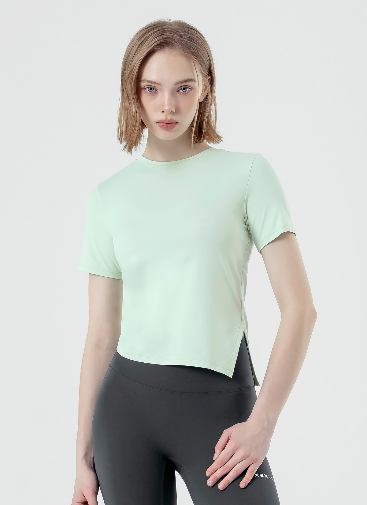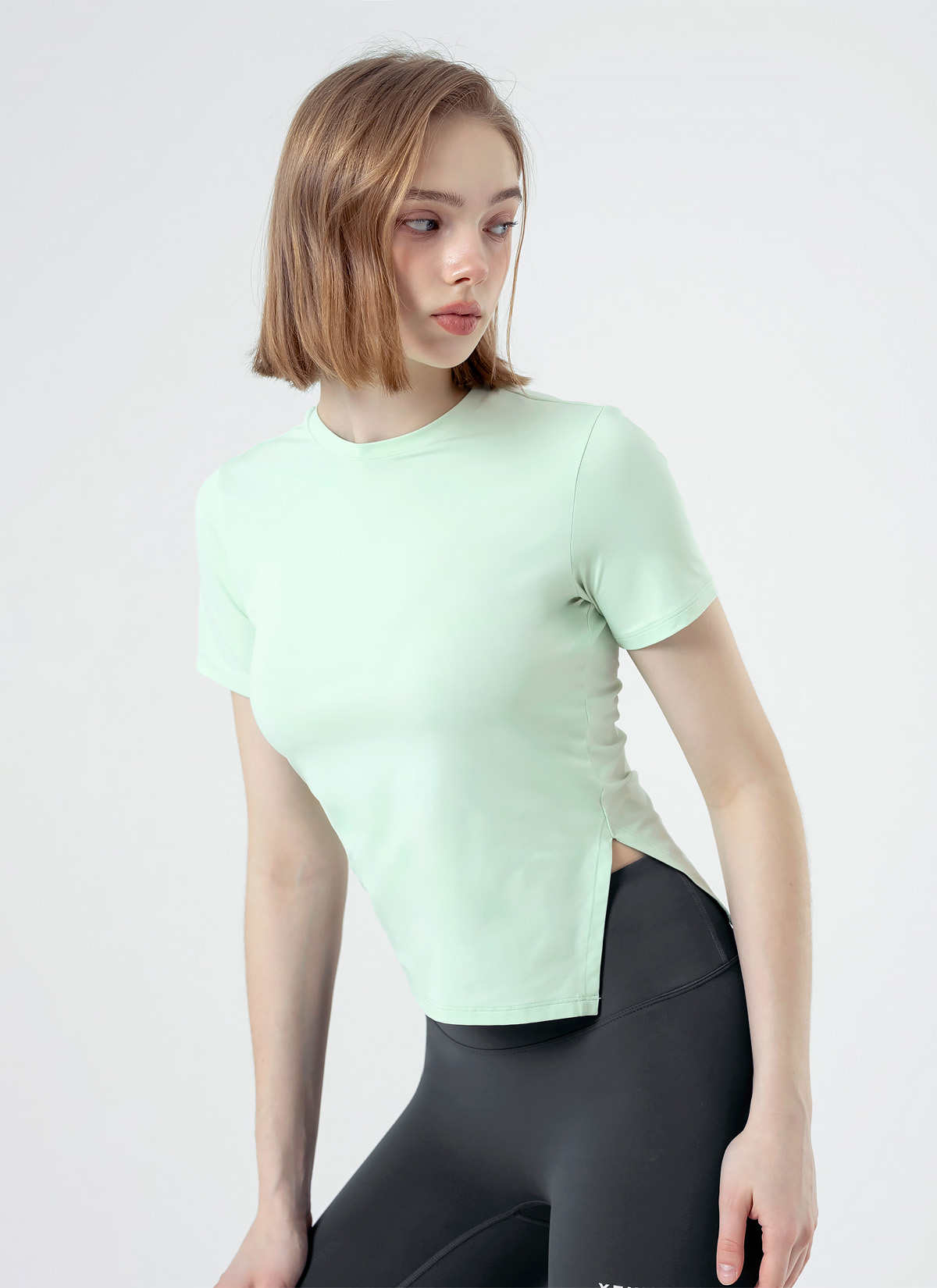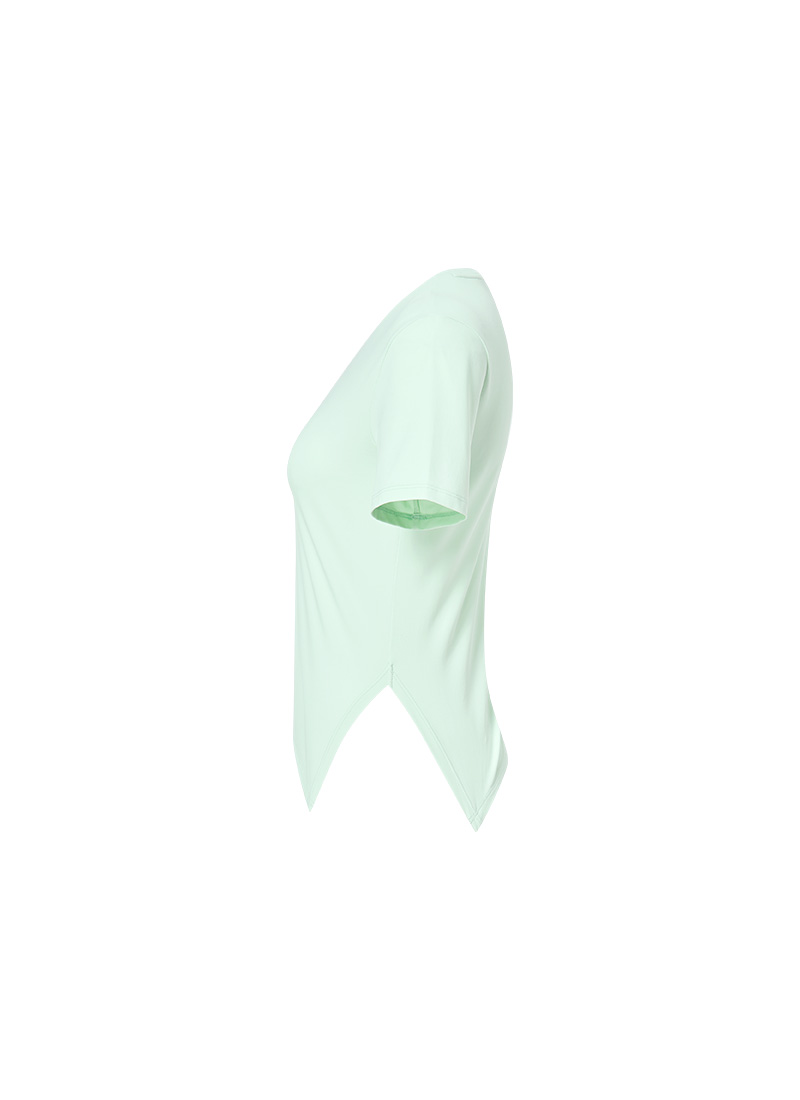 XFK2TS1004 Unbalanced Side Shirring Short Sleeve Mint Dew TOP
