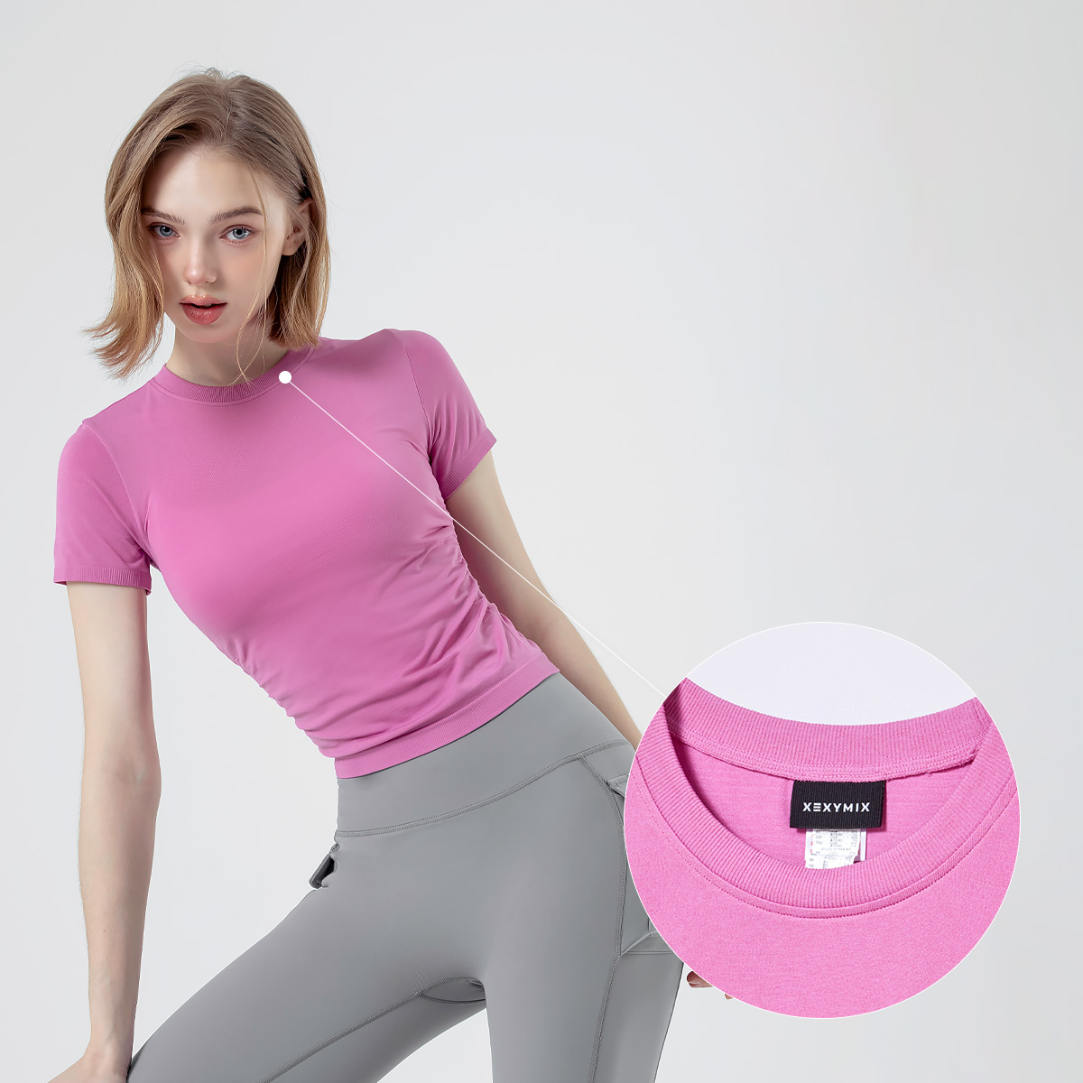 XFK2TS1009 ZeroSlick Seamless Side Shirring Short Sleeve Mint Dew TOP
