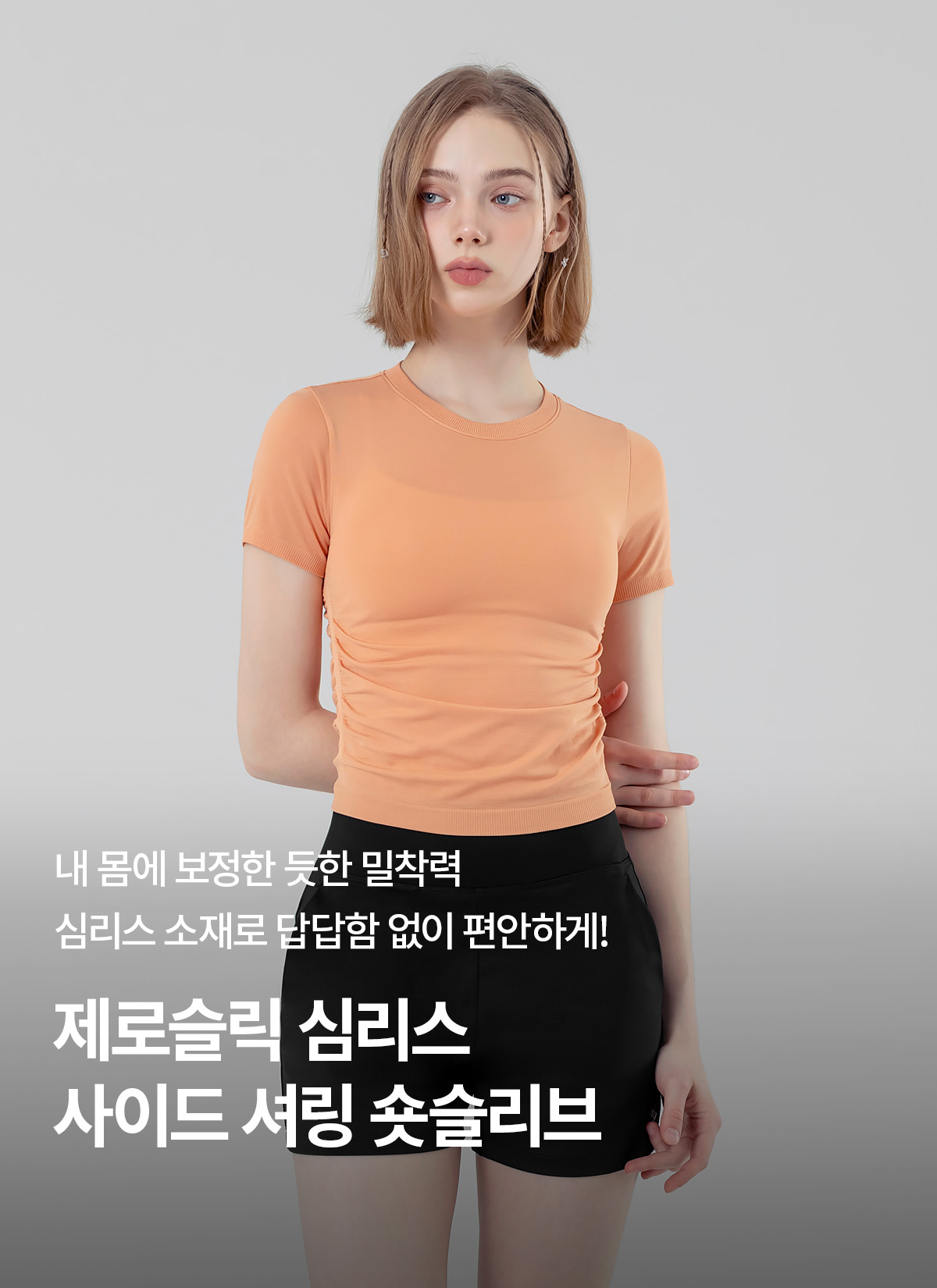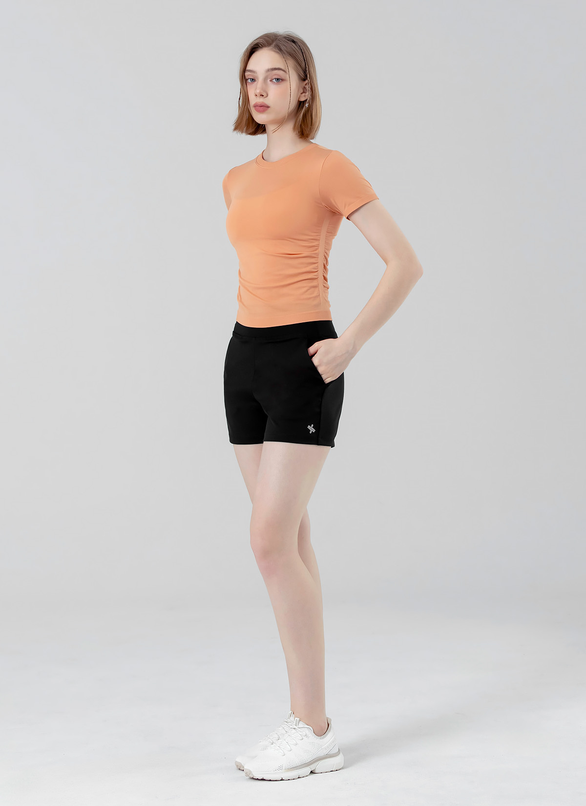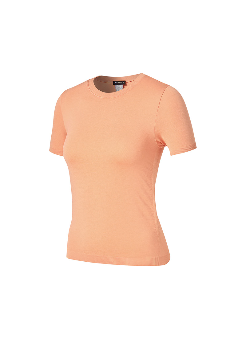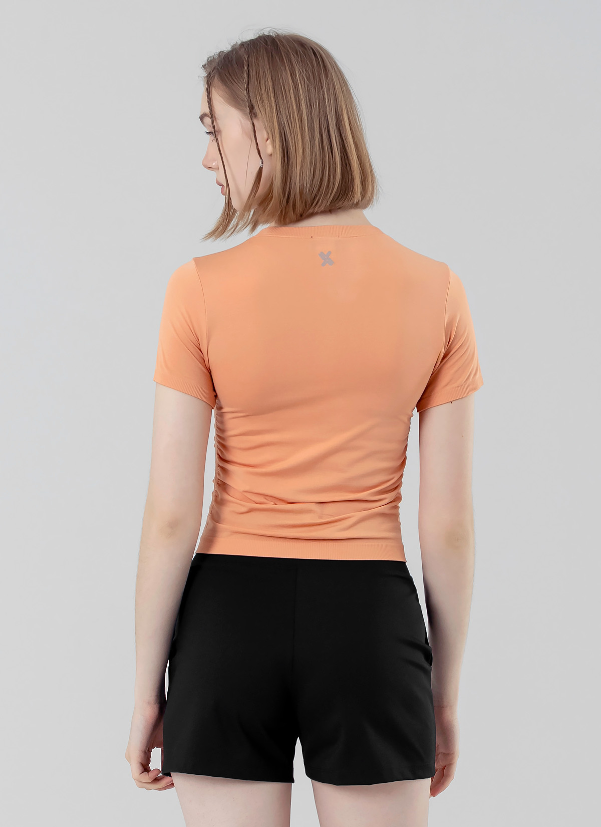 XFK2TS1009 ZeroSlick Seamless Side Shirring Short Sleeve Autumn Orange TOP