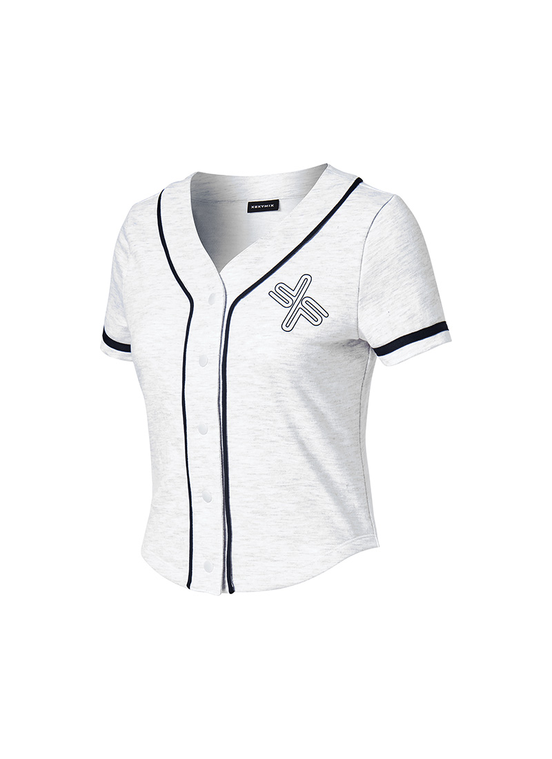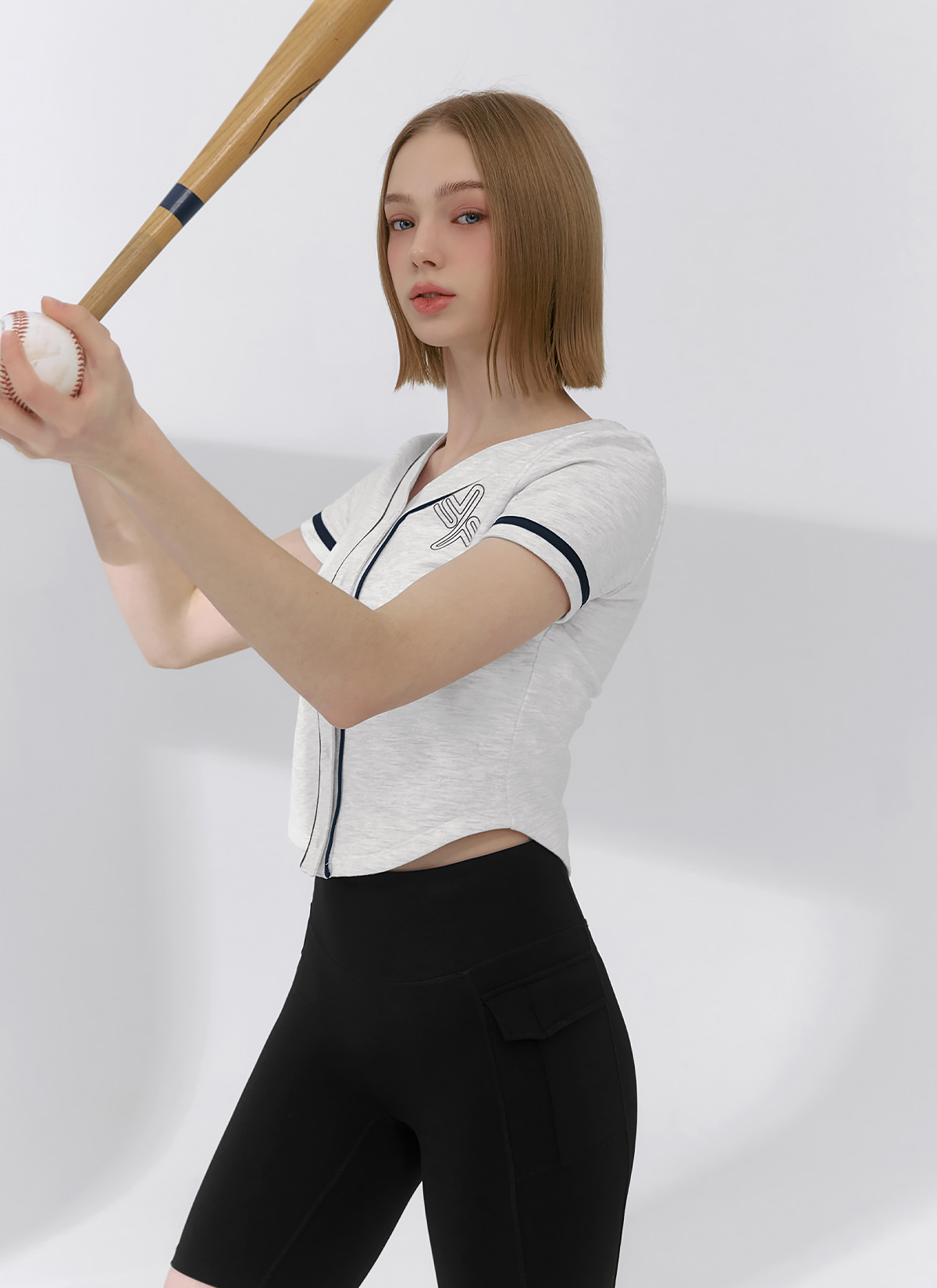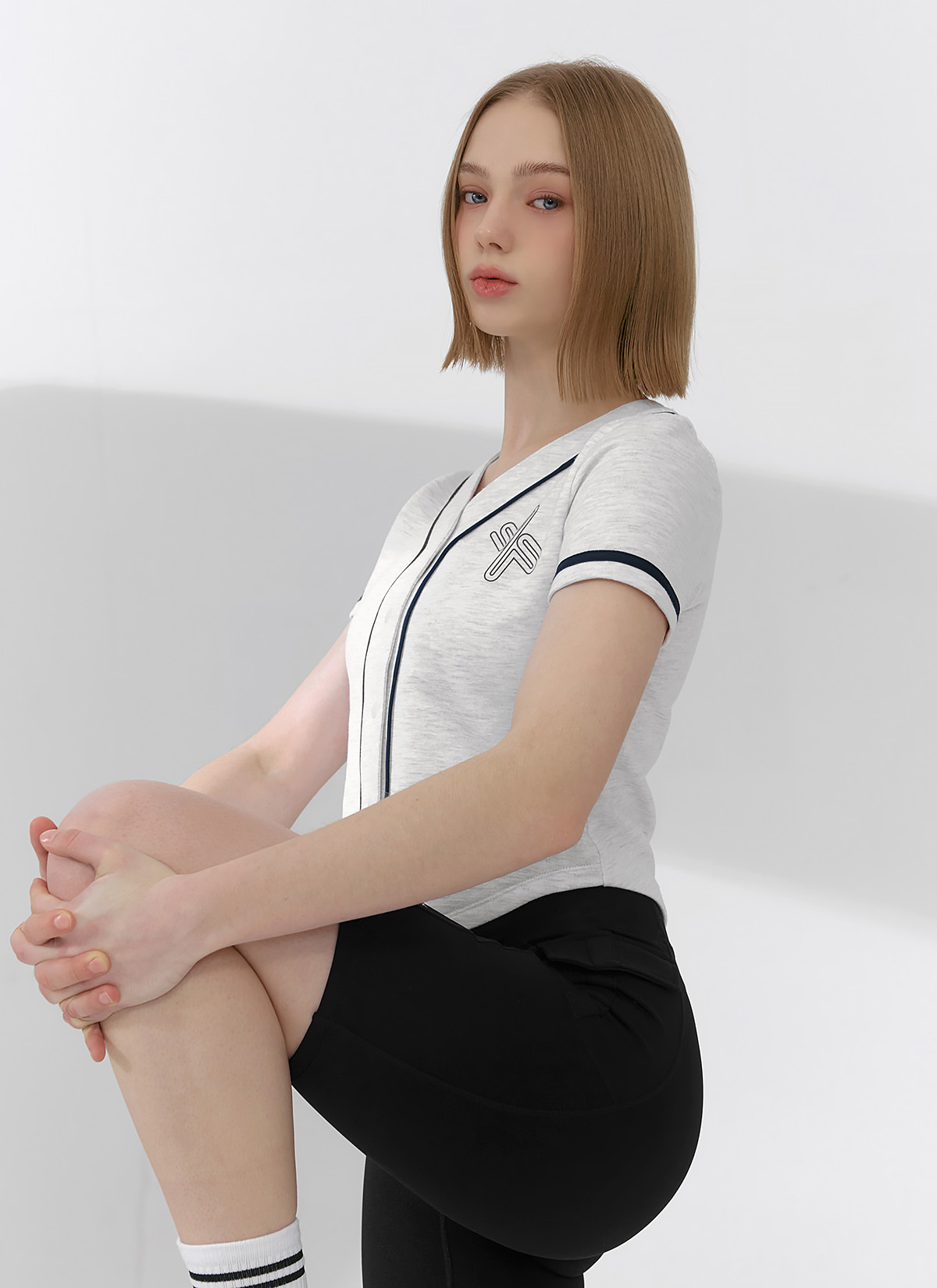 XFK2TS1108 Varsity Color Block Crop Cardigan Light Melange top