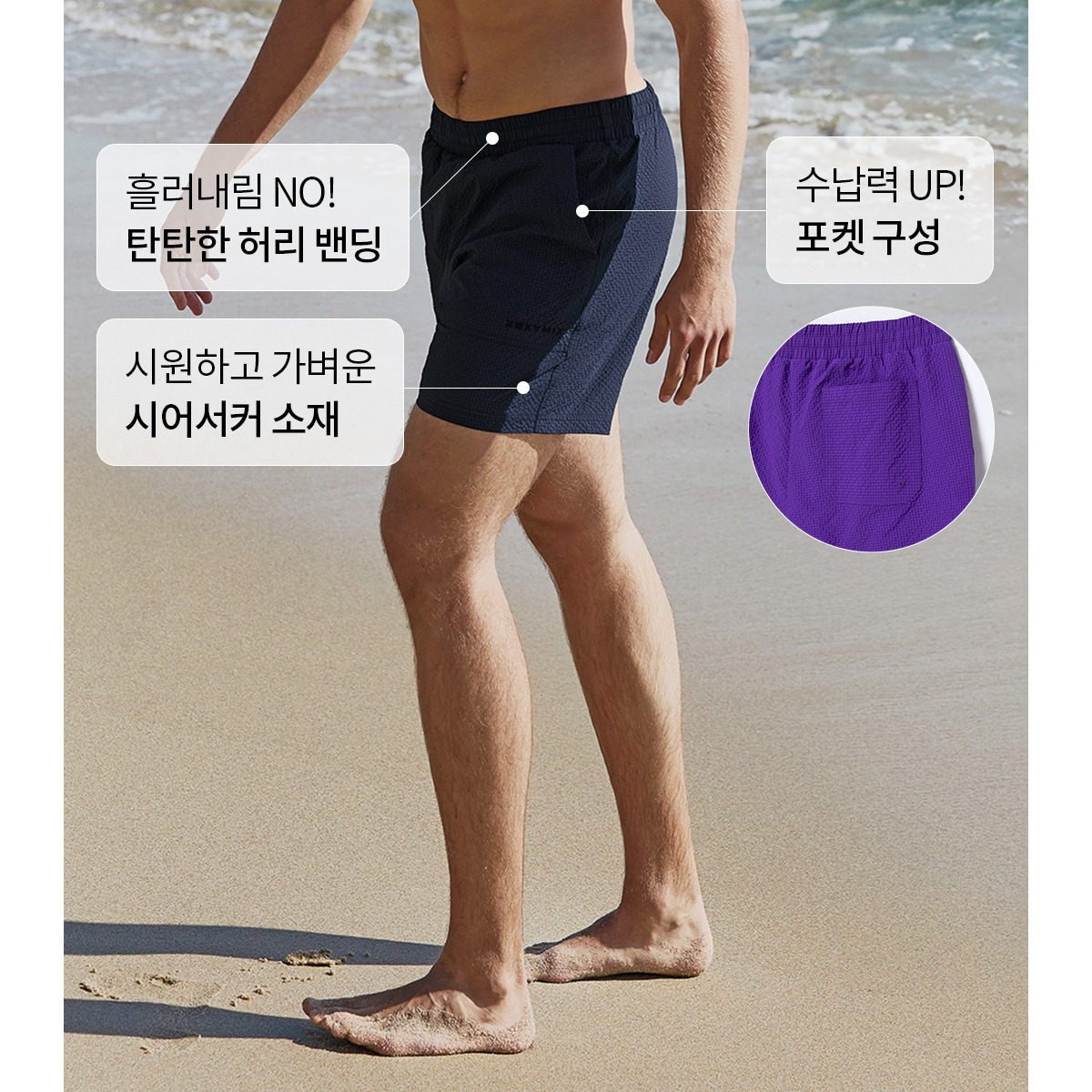 XMK2WR1402 Seersucker Buried Men's Beach Shorts BOTTOM