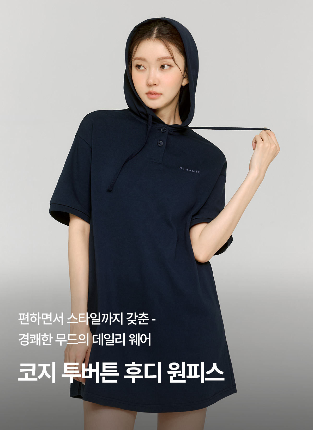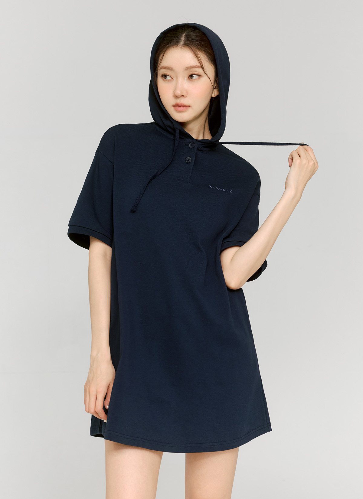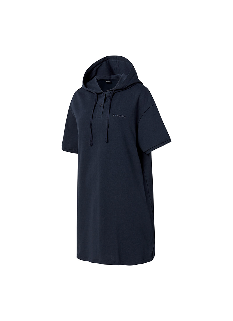 XFK2OP1102 Cozy Two-button Hoodie One-piece Broken Navy Top