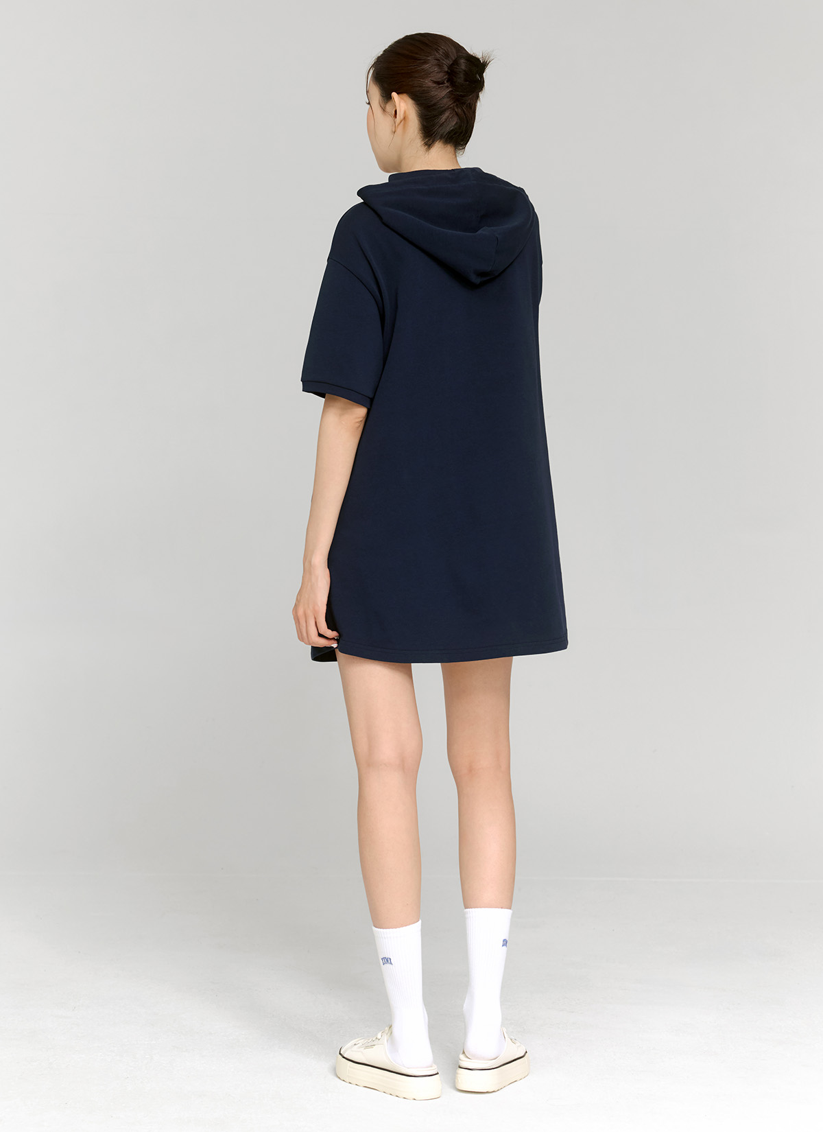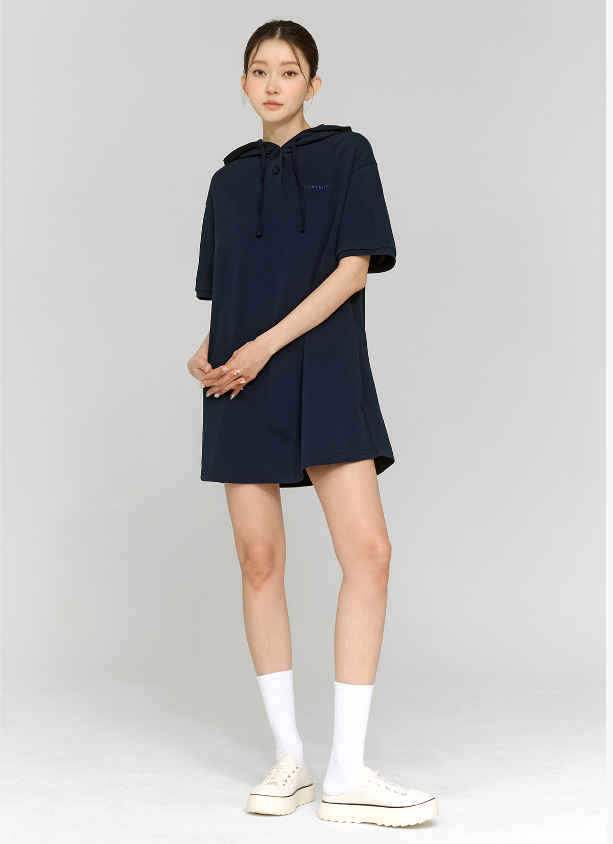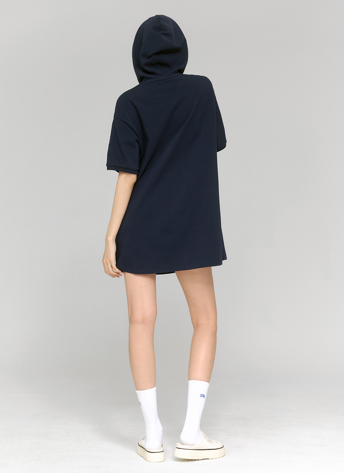 XFK2OP1102 Cozy Two-button Hoodie One-piece Broken Navy Top