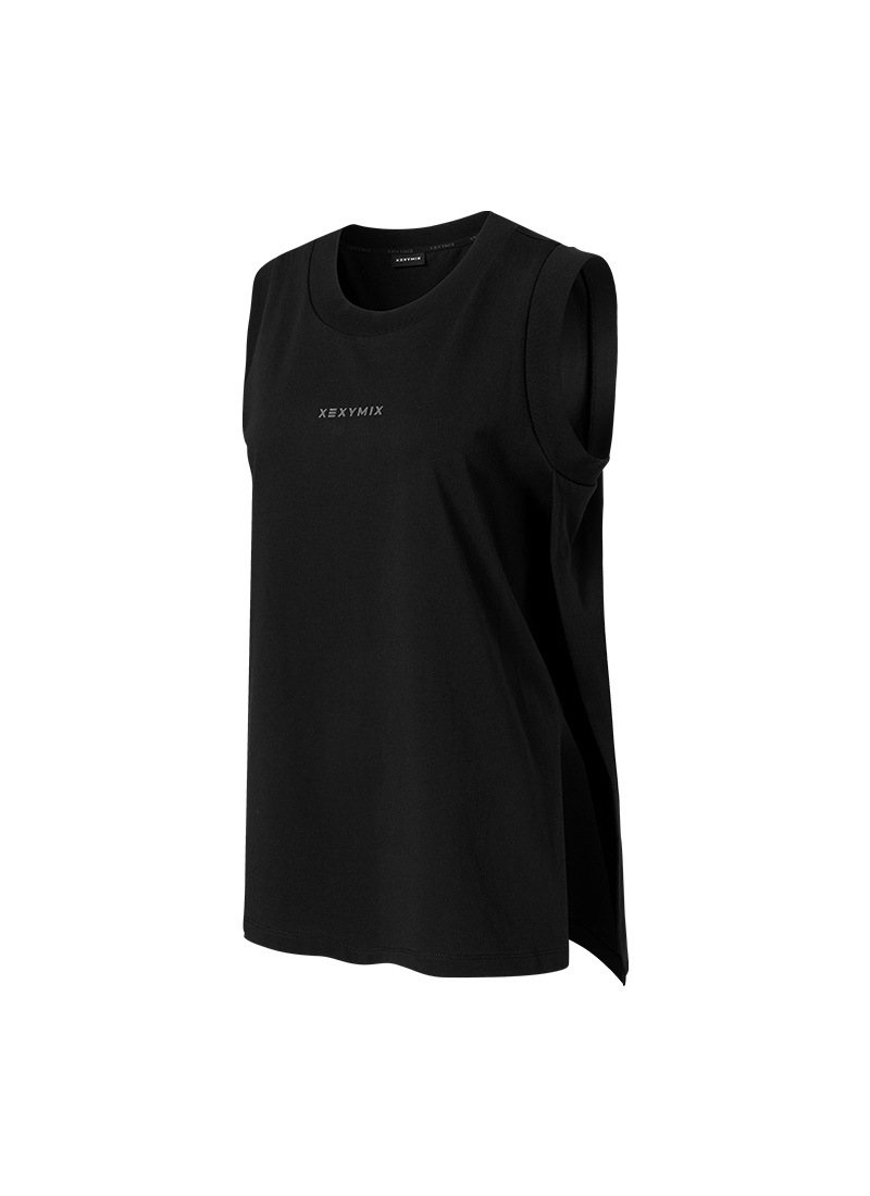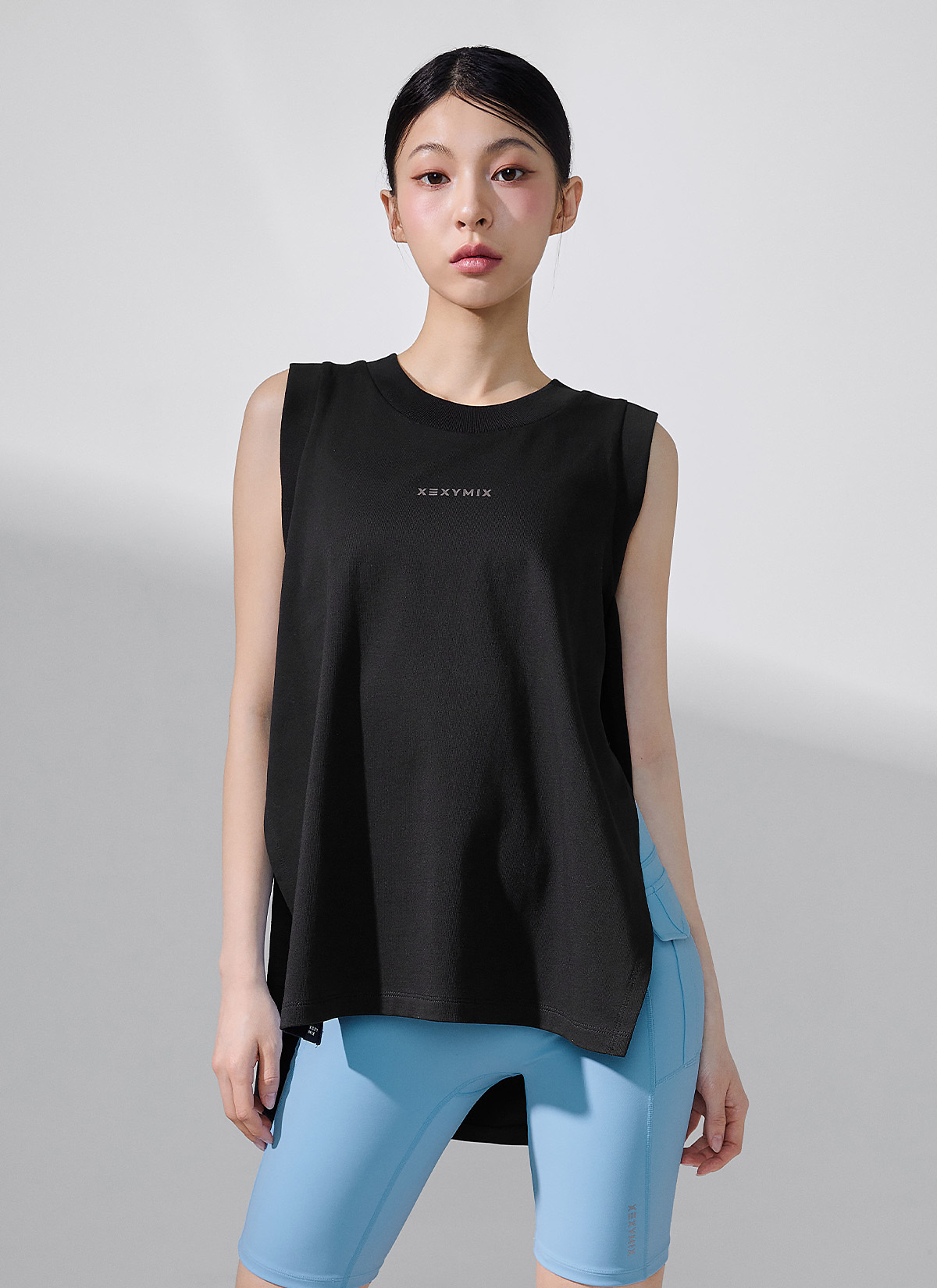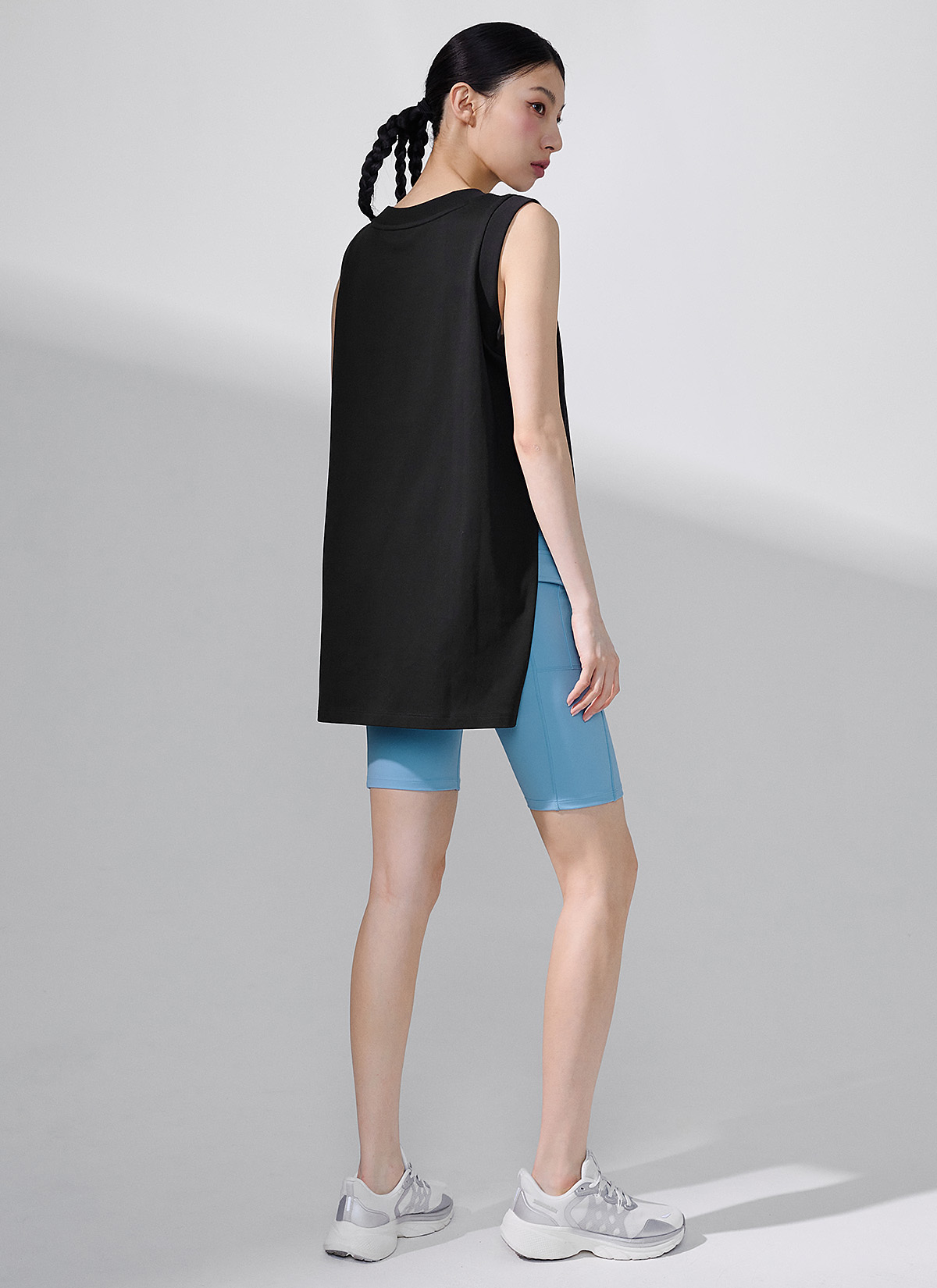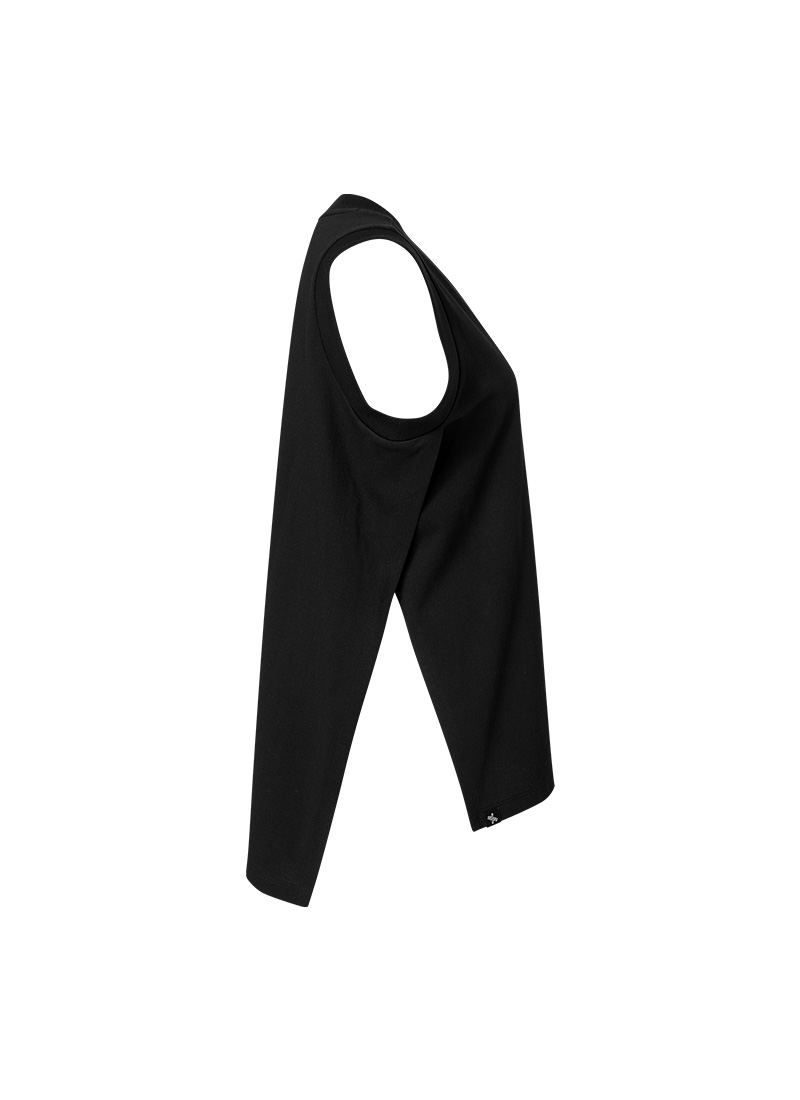 XFK2TE1102 Deep Slit Coverup Sleeveless Black TOP