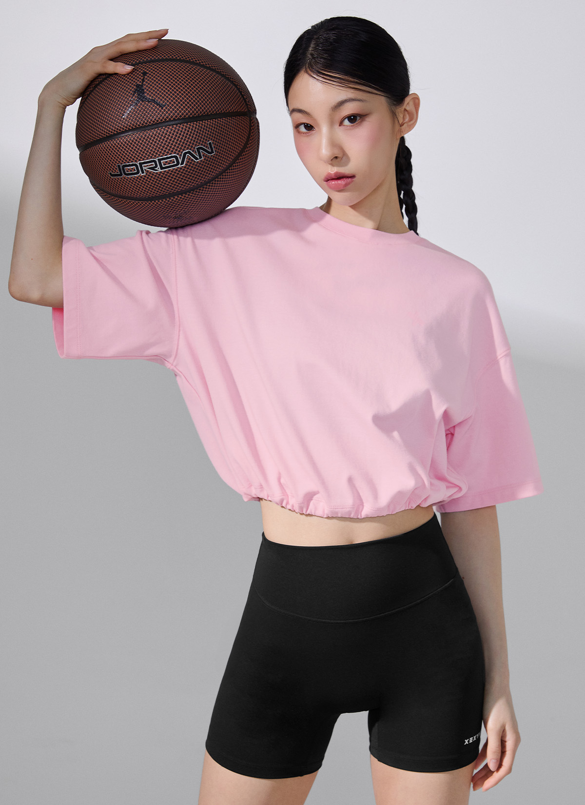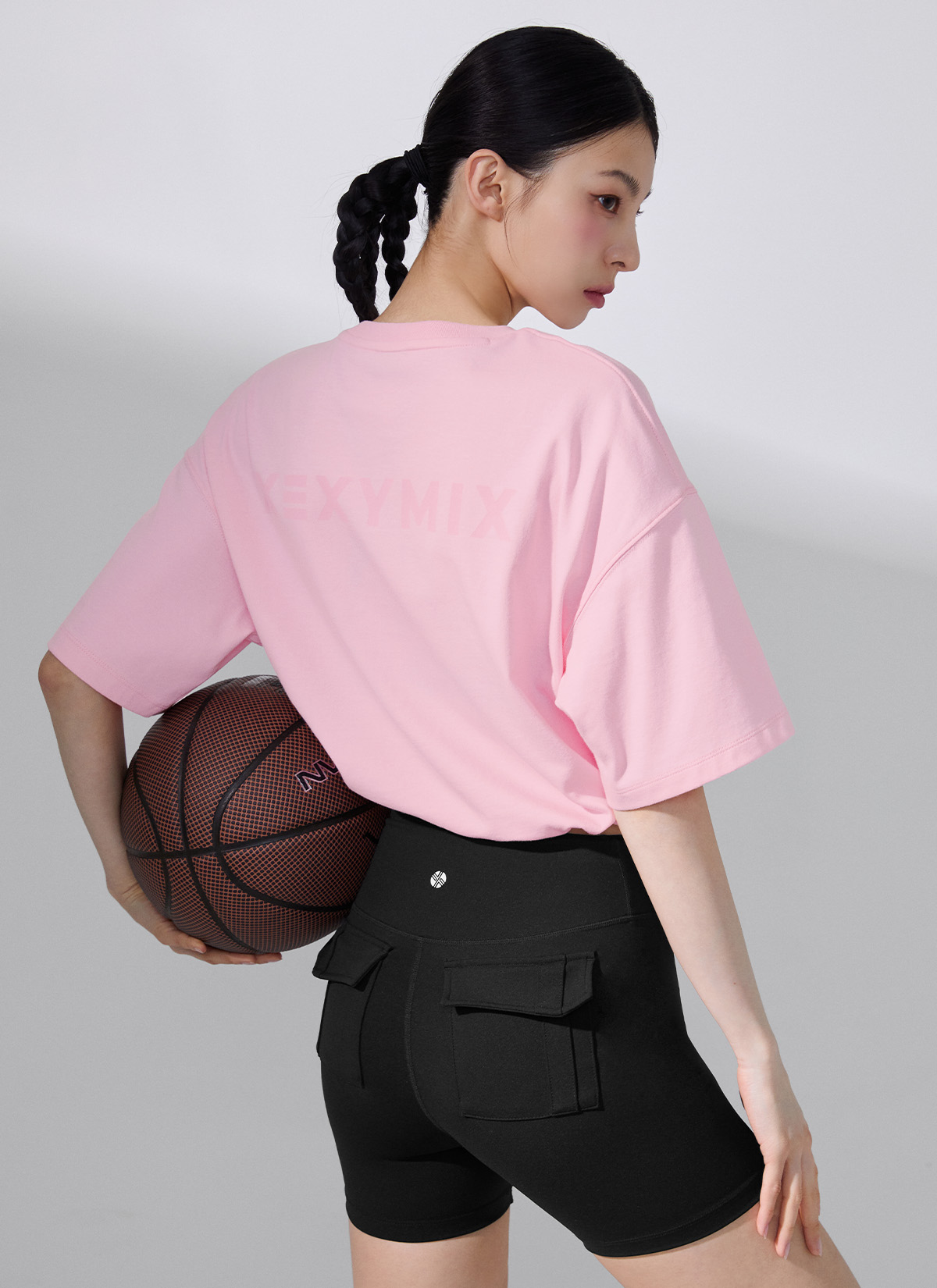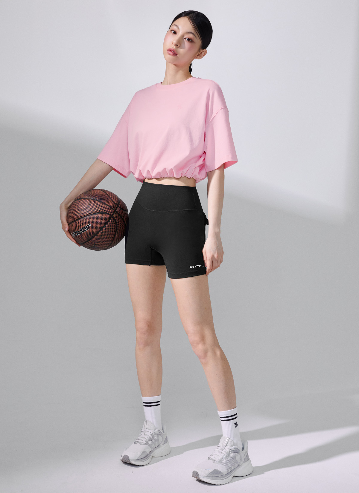 XFK2TS1113 Basic logo string Short Dear Pink TOP