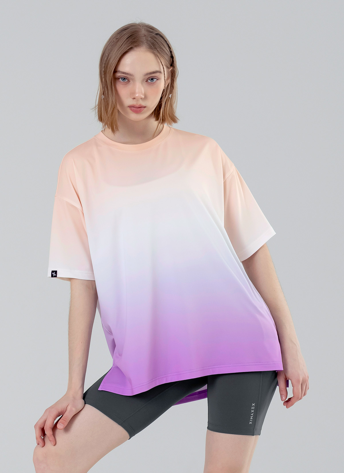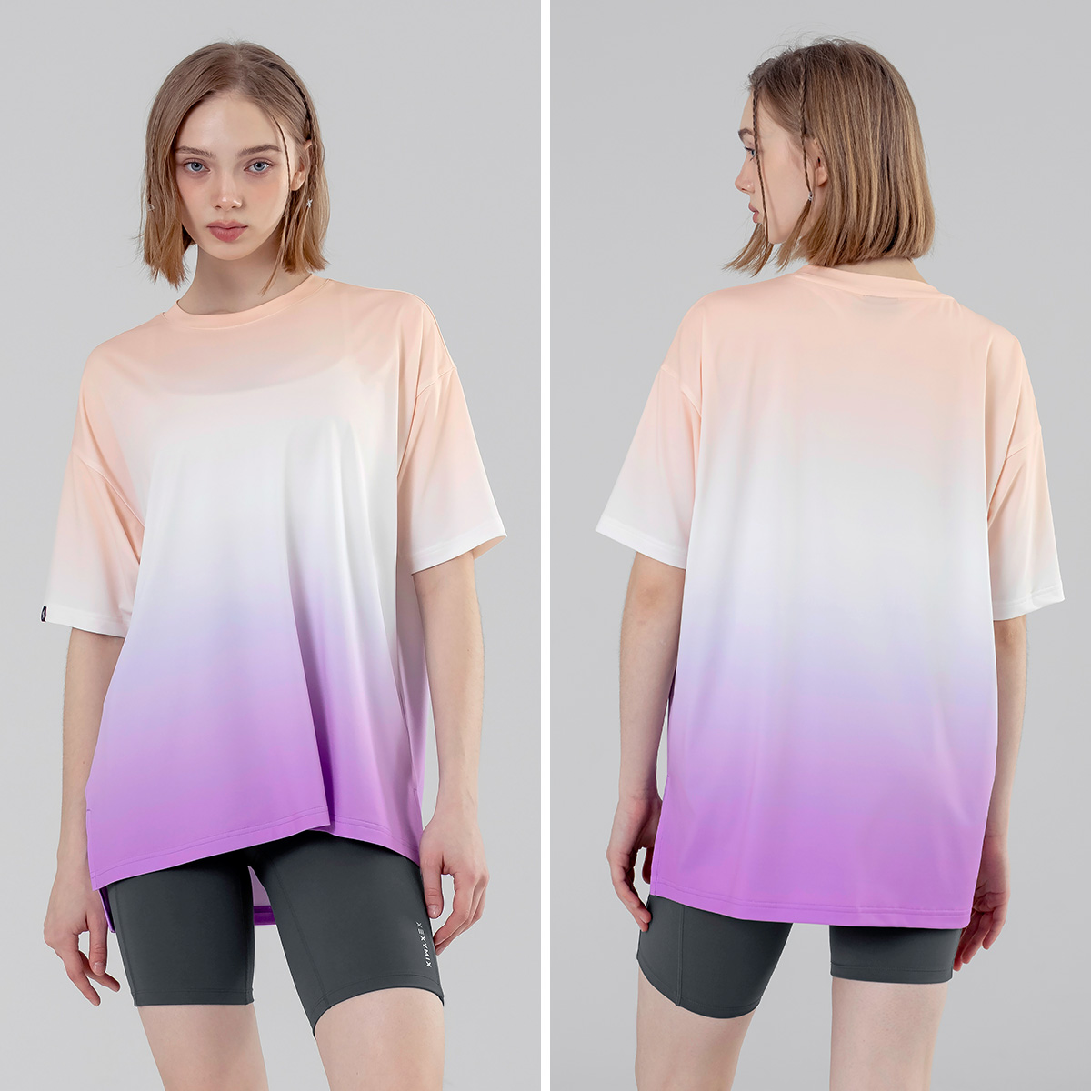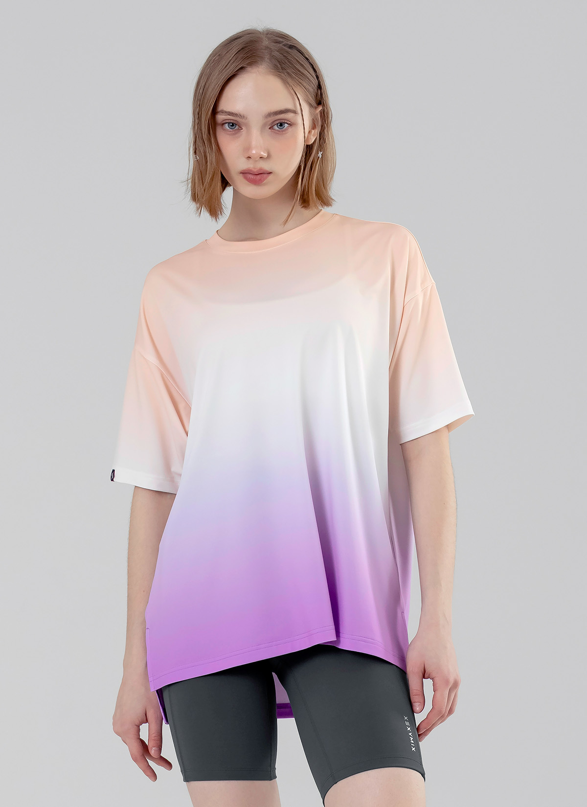 XFK2TS1110 Ice Feather Gradation overfit Short Peach Grape top