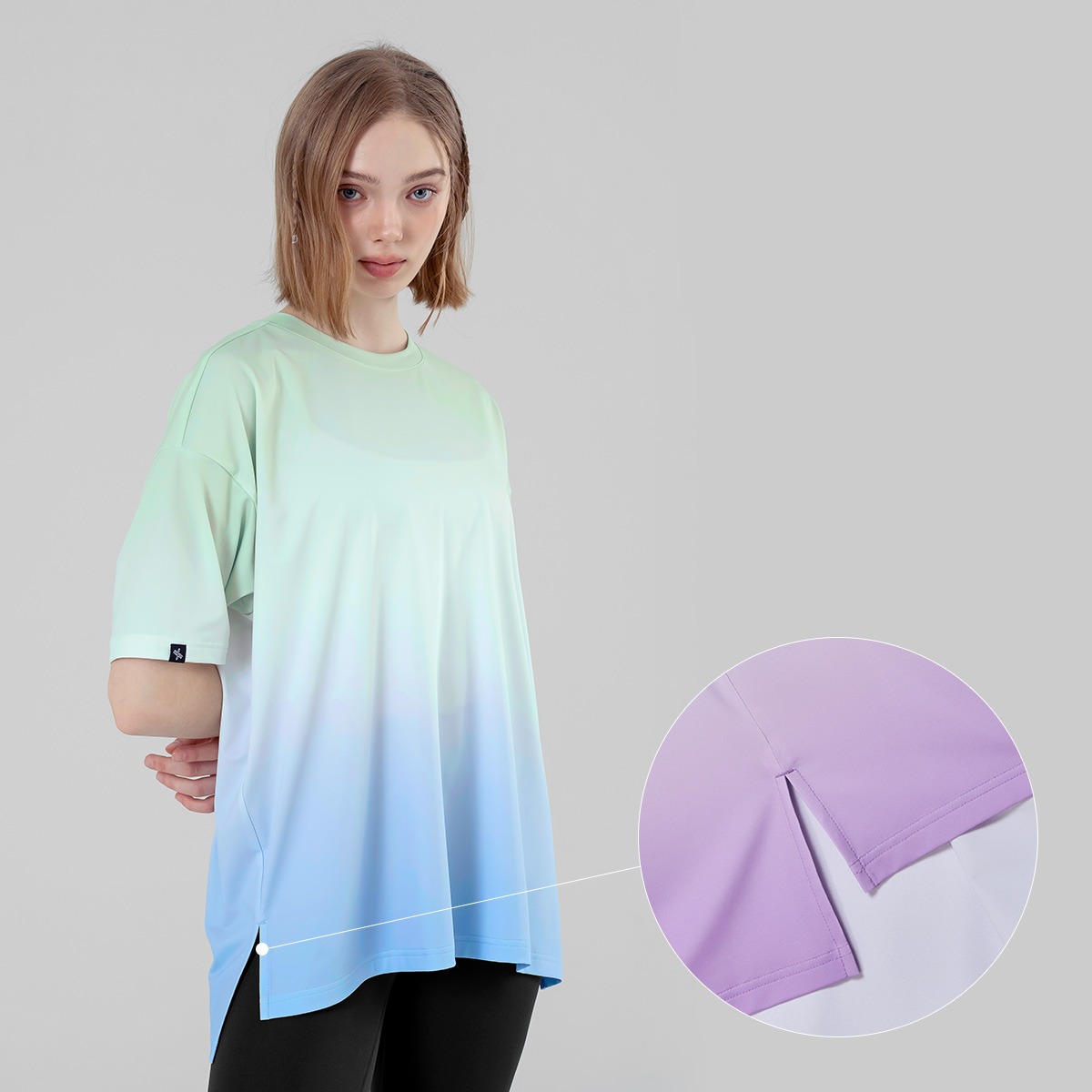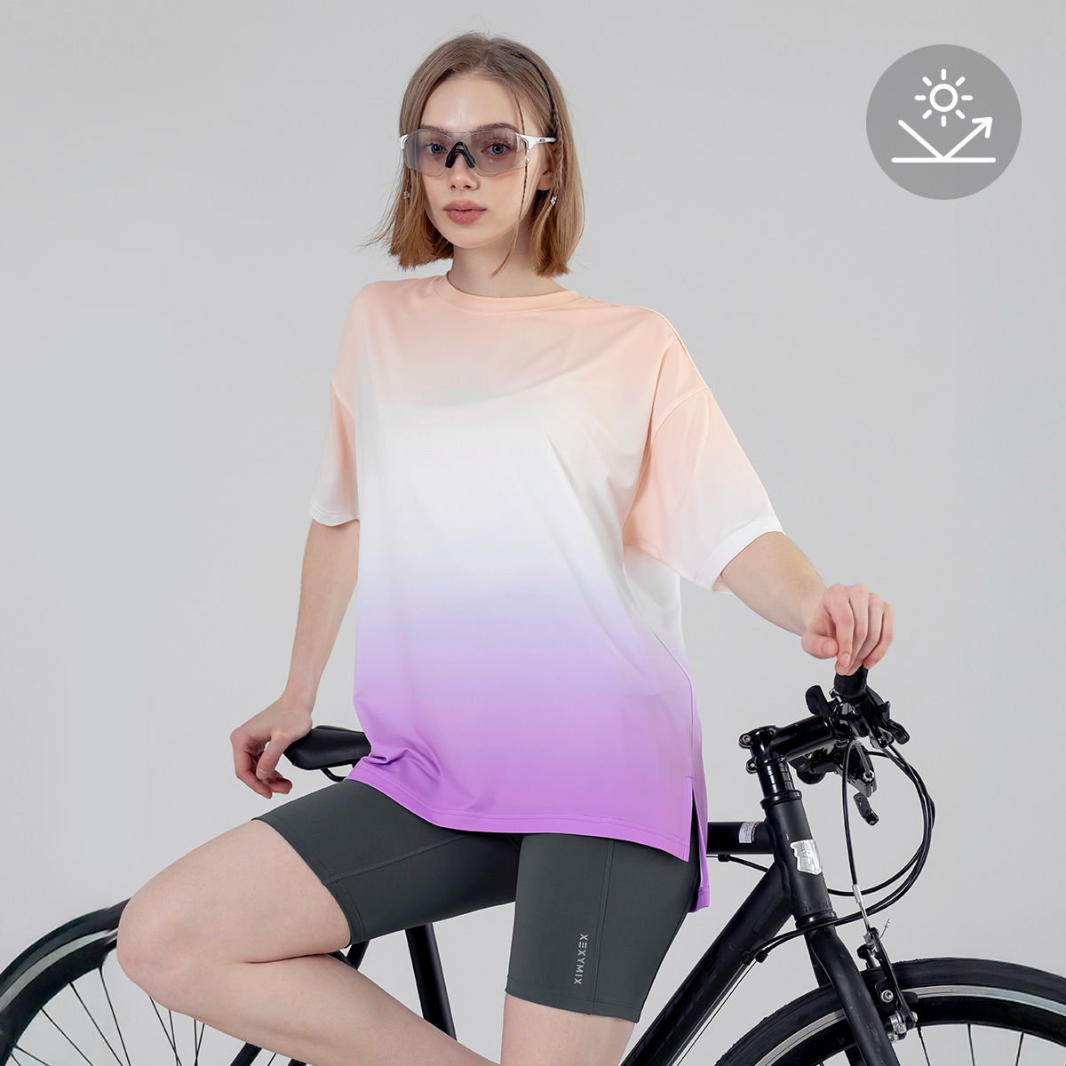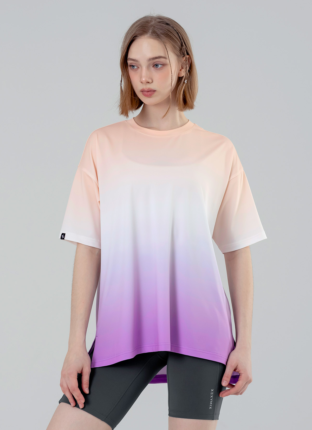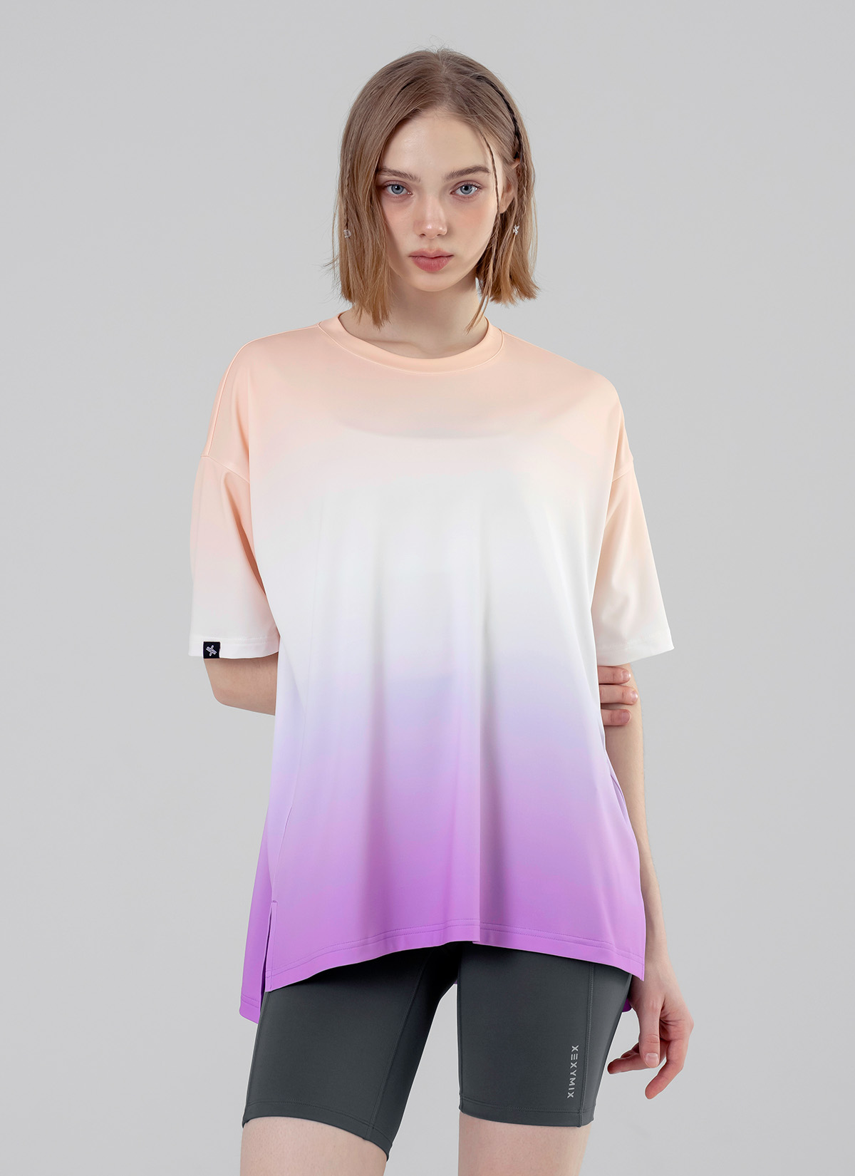 XFK2TS1110 Ice Feather Gradation overfit Short Peach Grape top