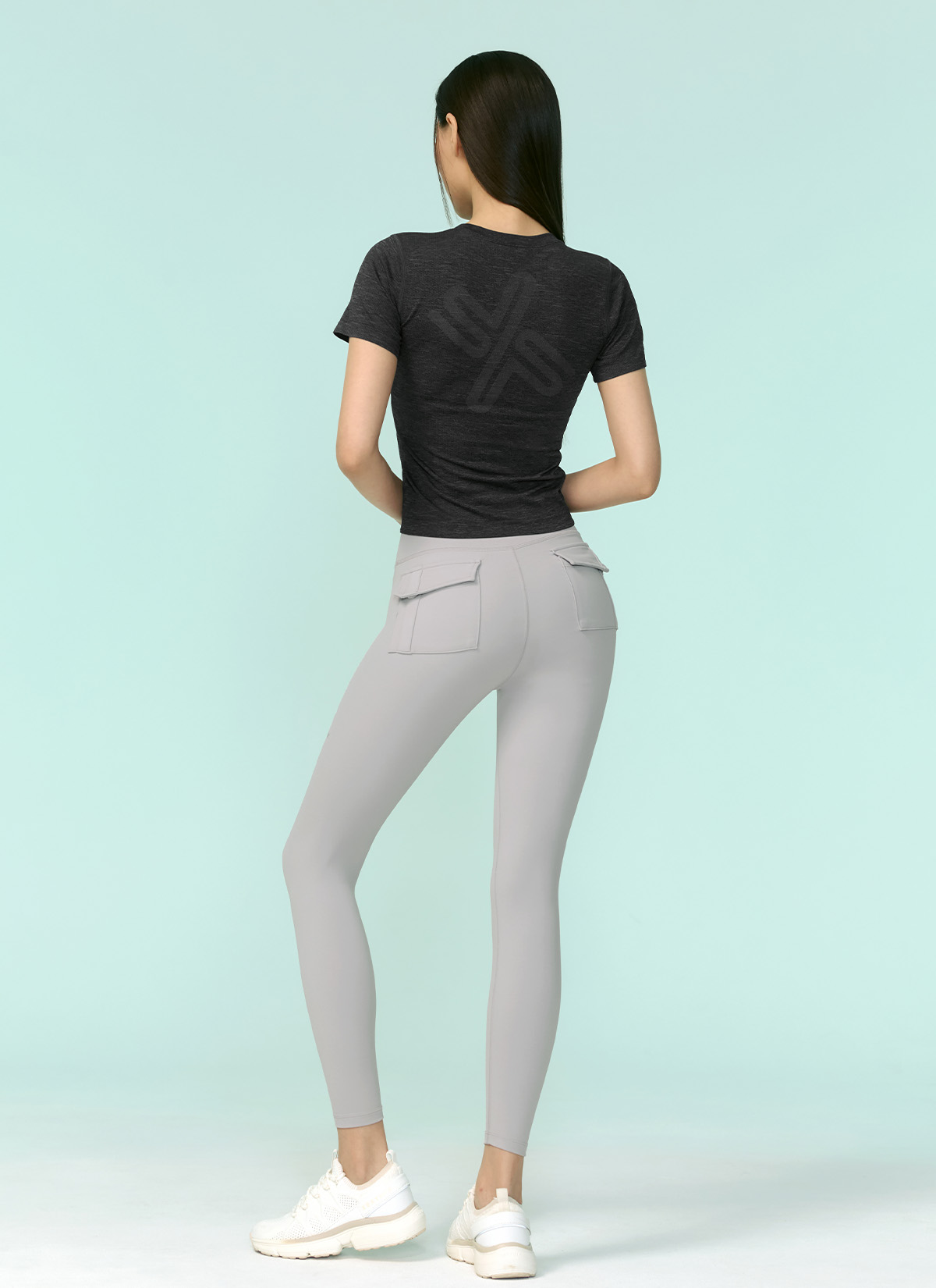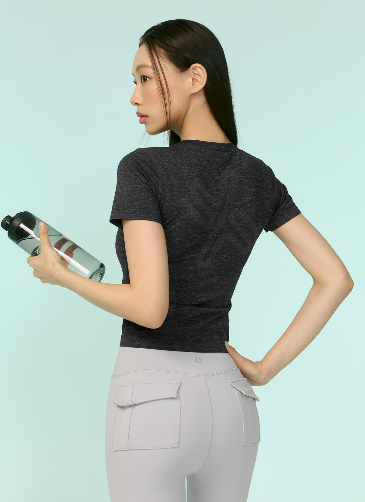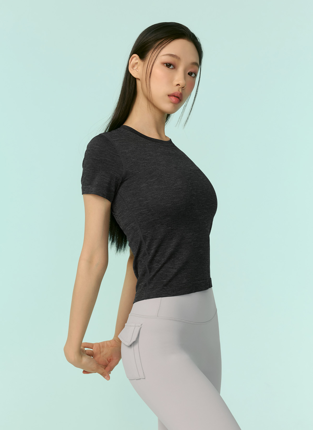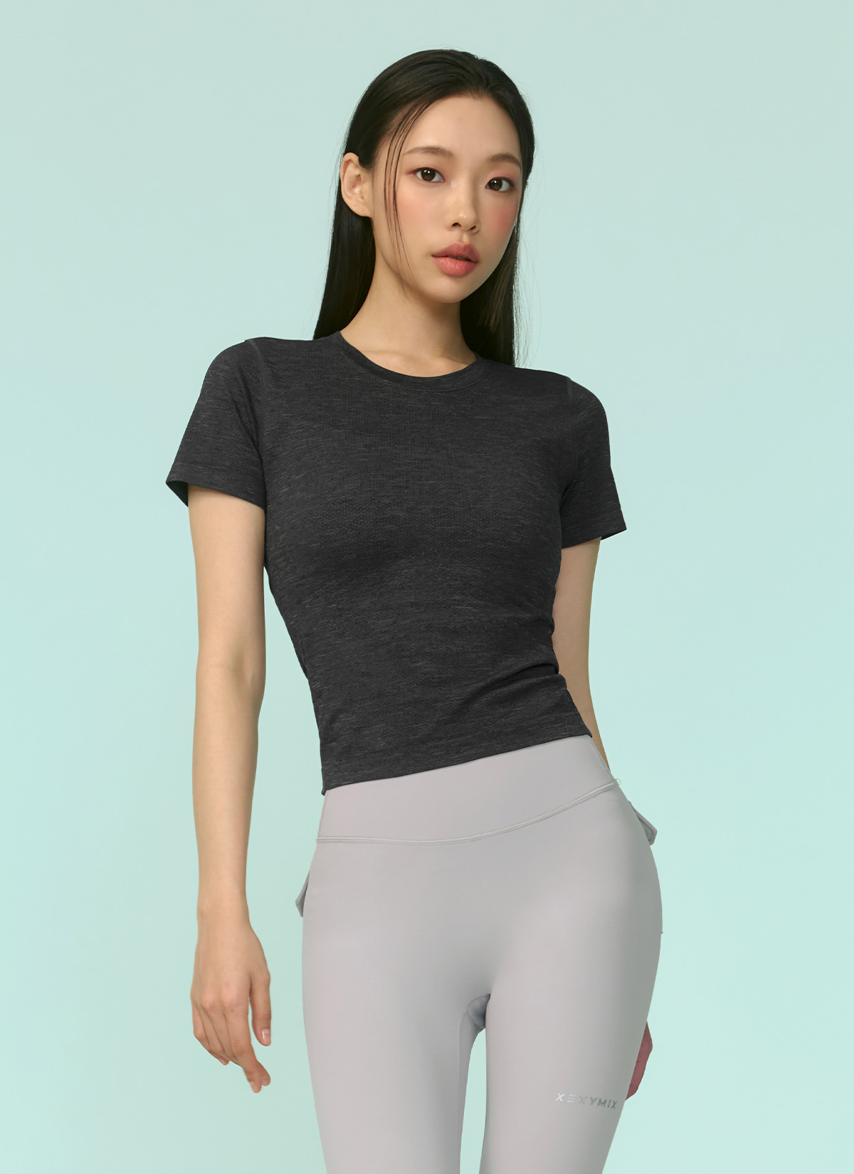 XFK2TS1005 Mesh Seamless Short Charcoal Heather Gray TOP