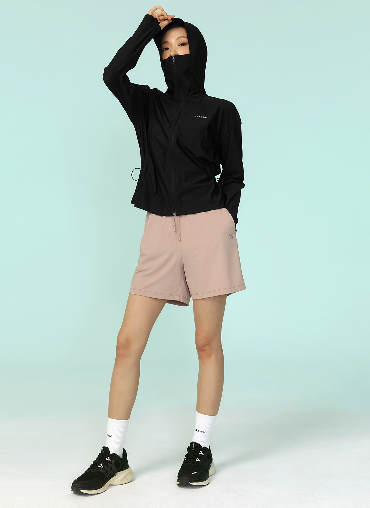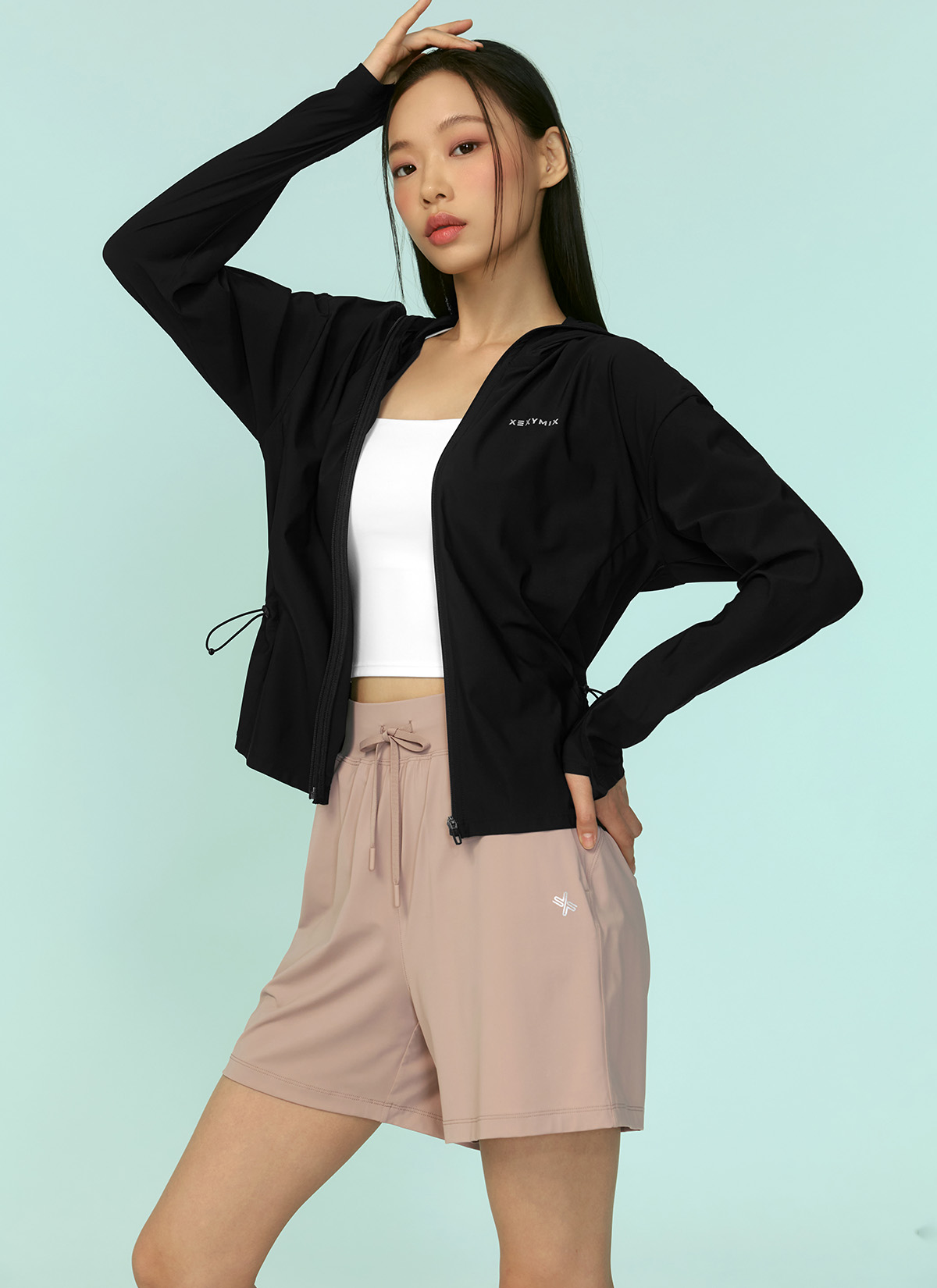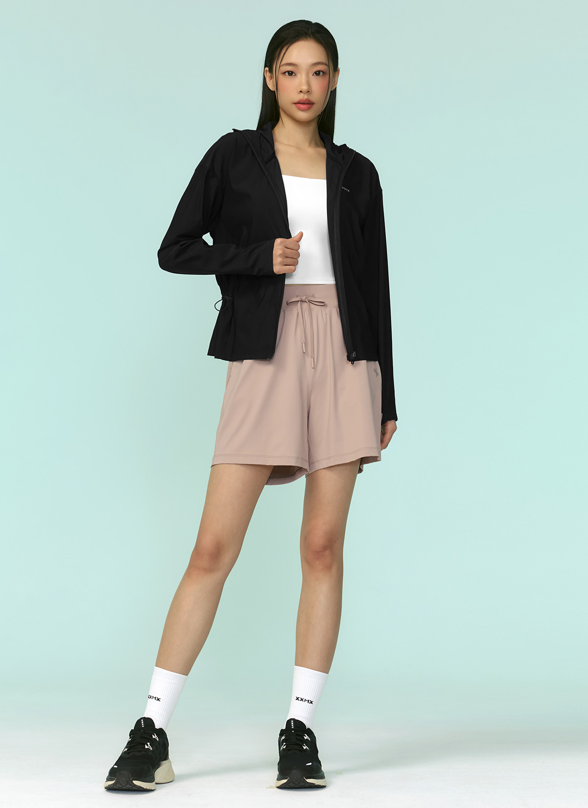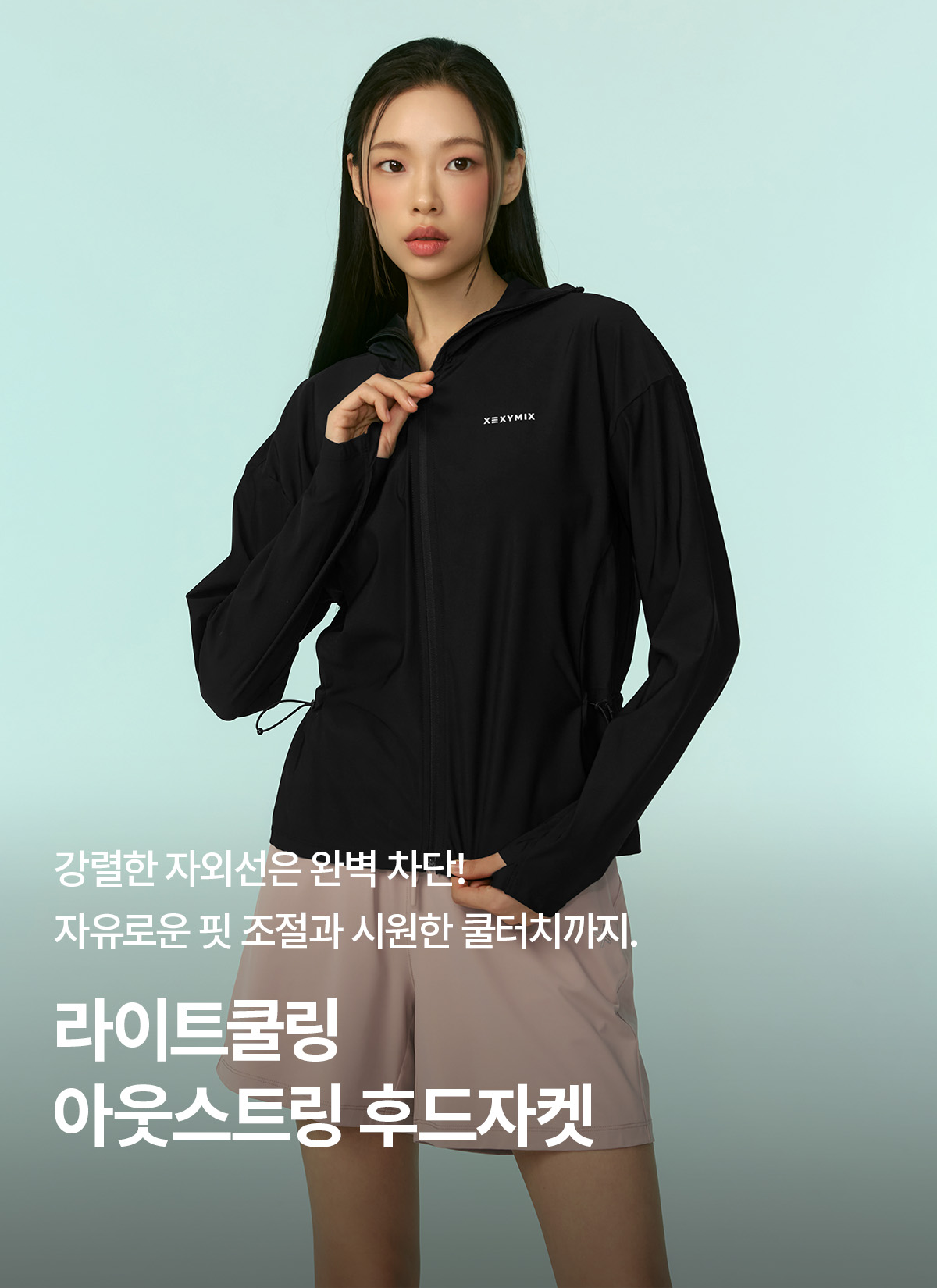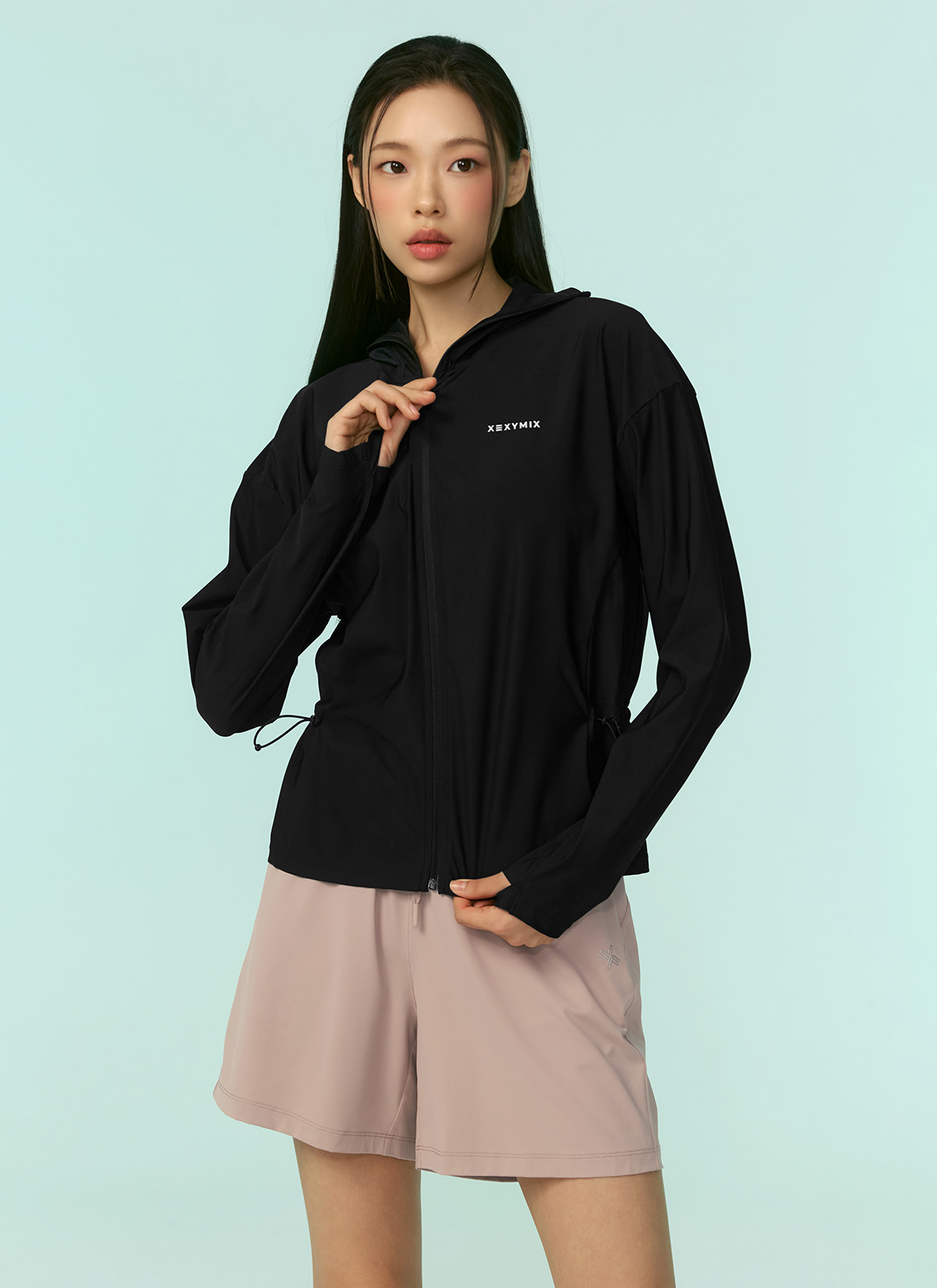 XFK2JL1005 Light Cooling Outstring Hood Jacket Black TOP