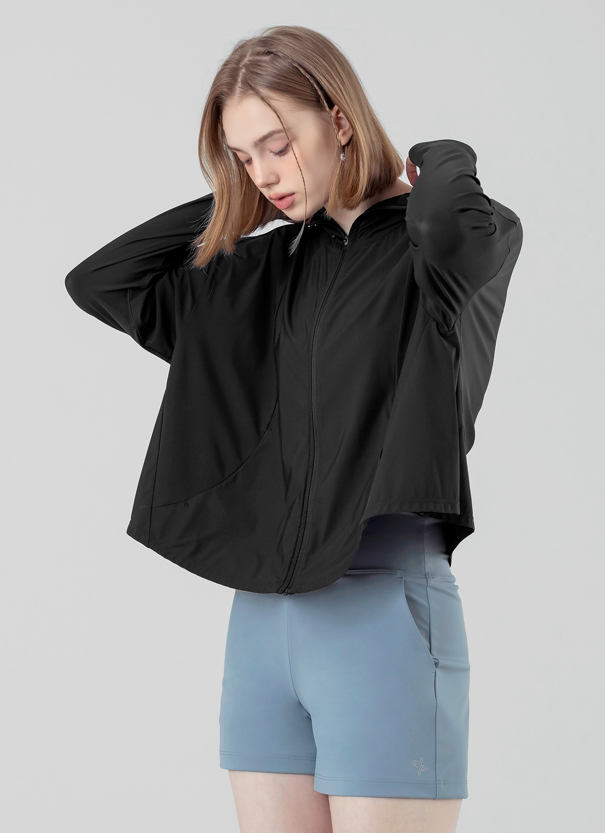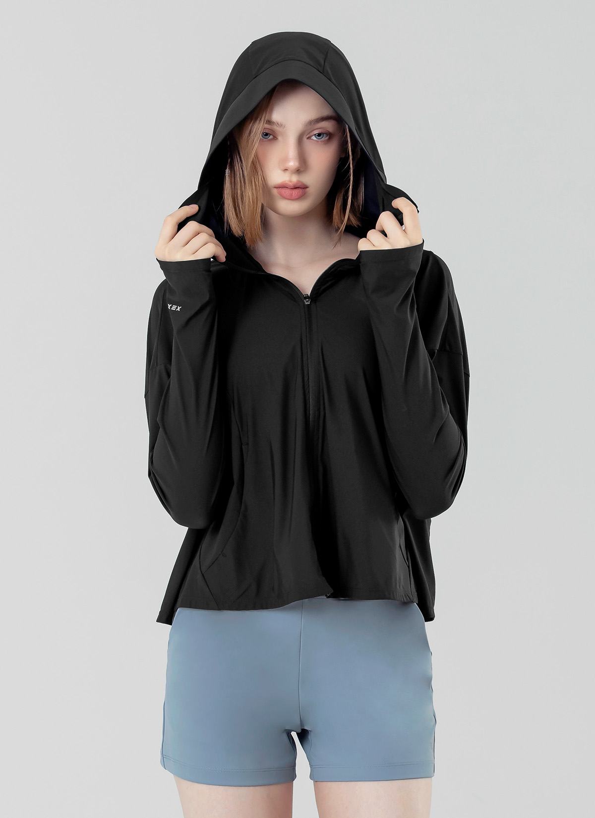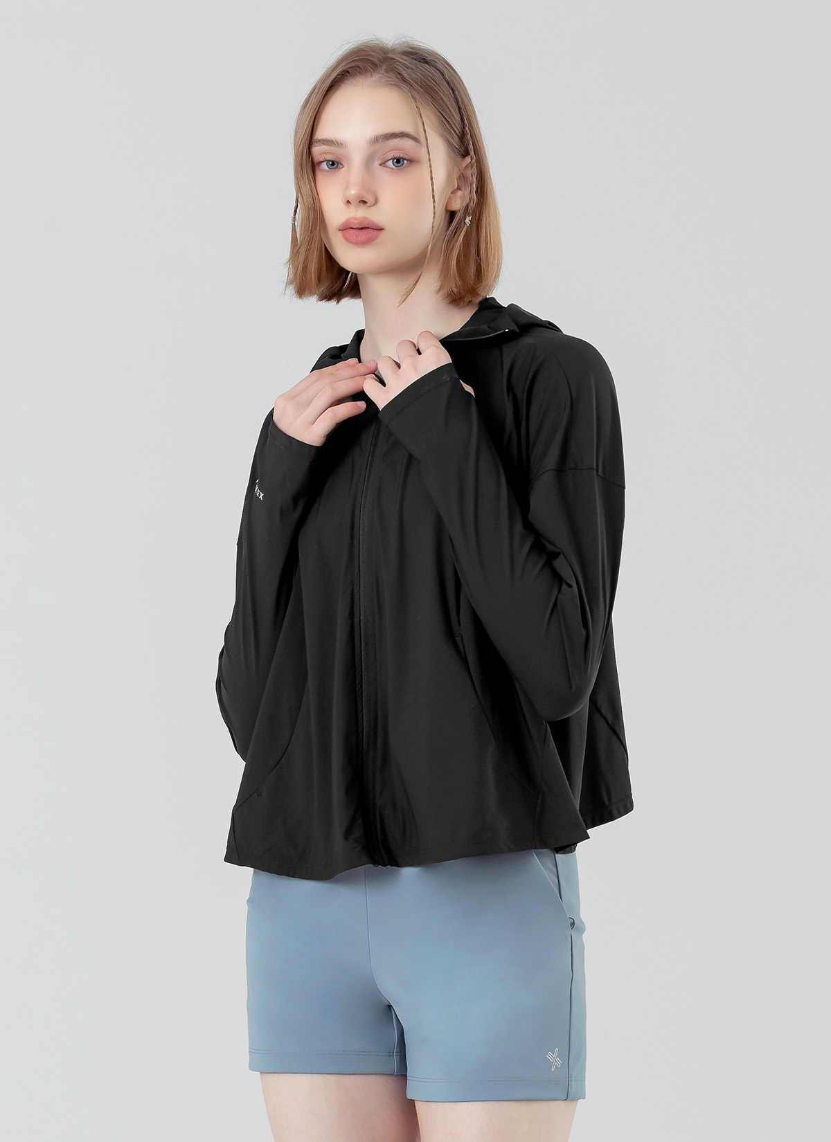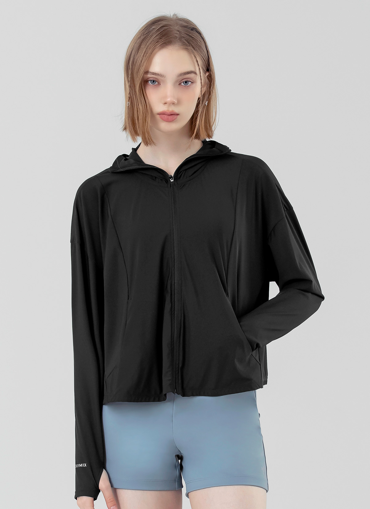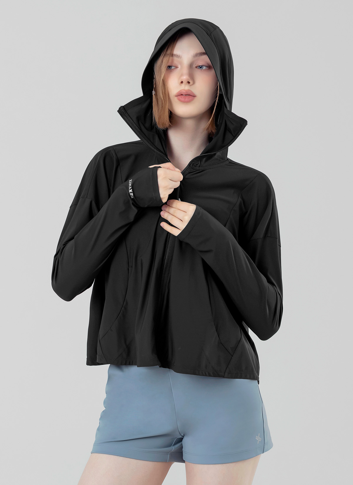 XFK2JL1003 Light Cooling loose fit Crop Hood jacket Black TOP