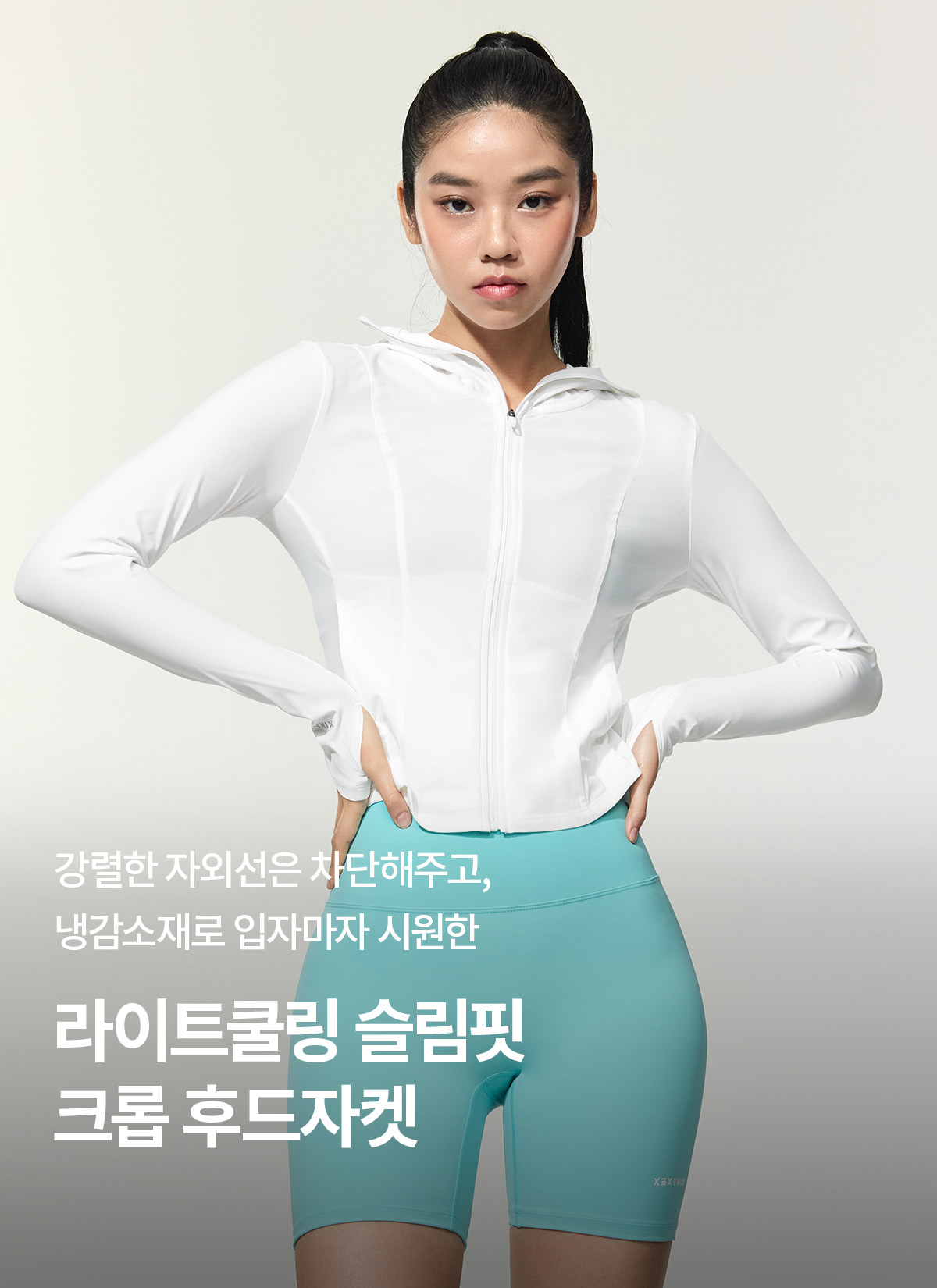 XFK2JL1004 Light Cooling Slim Fit Cropped Hoodie Jacket Ivory top