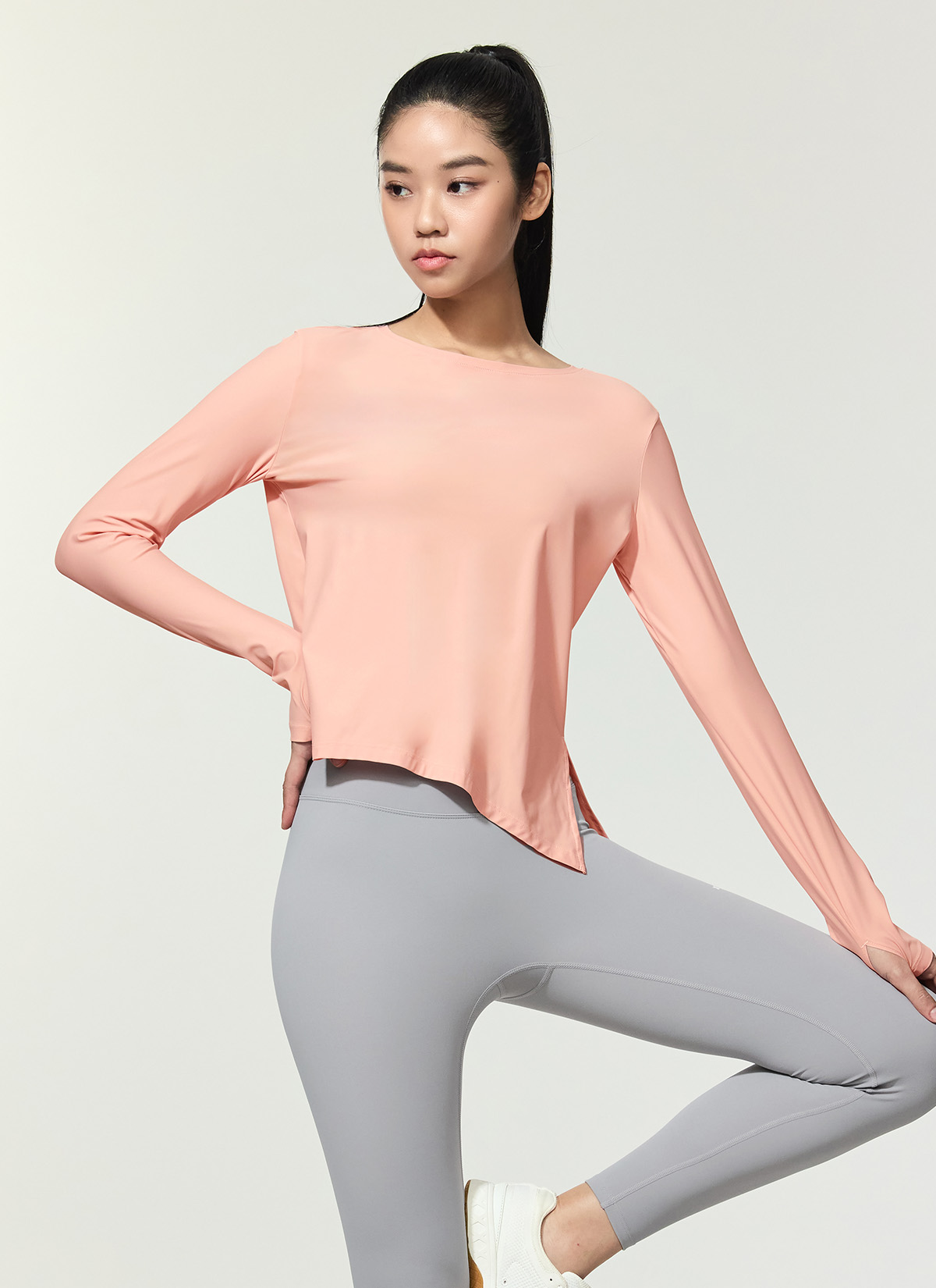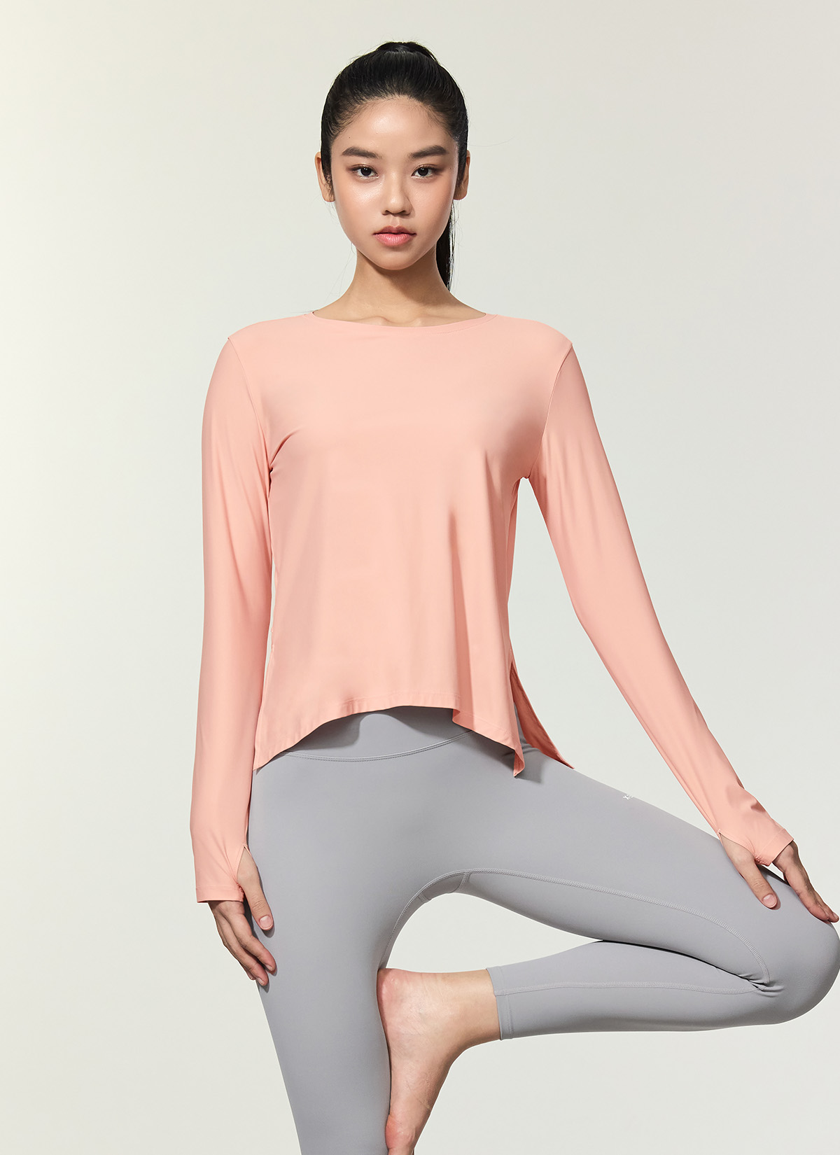XFK2TL1002 Cooling Tricot Boat Neck Long Pastel Peach TOP