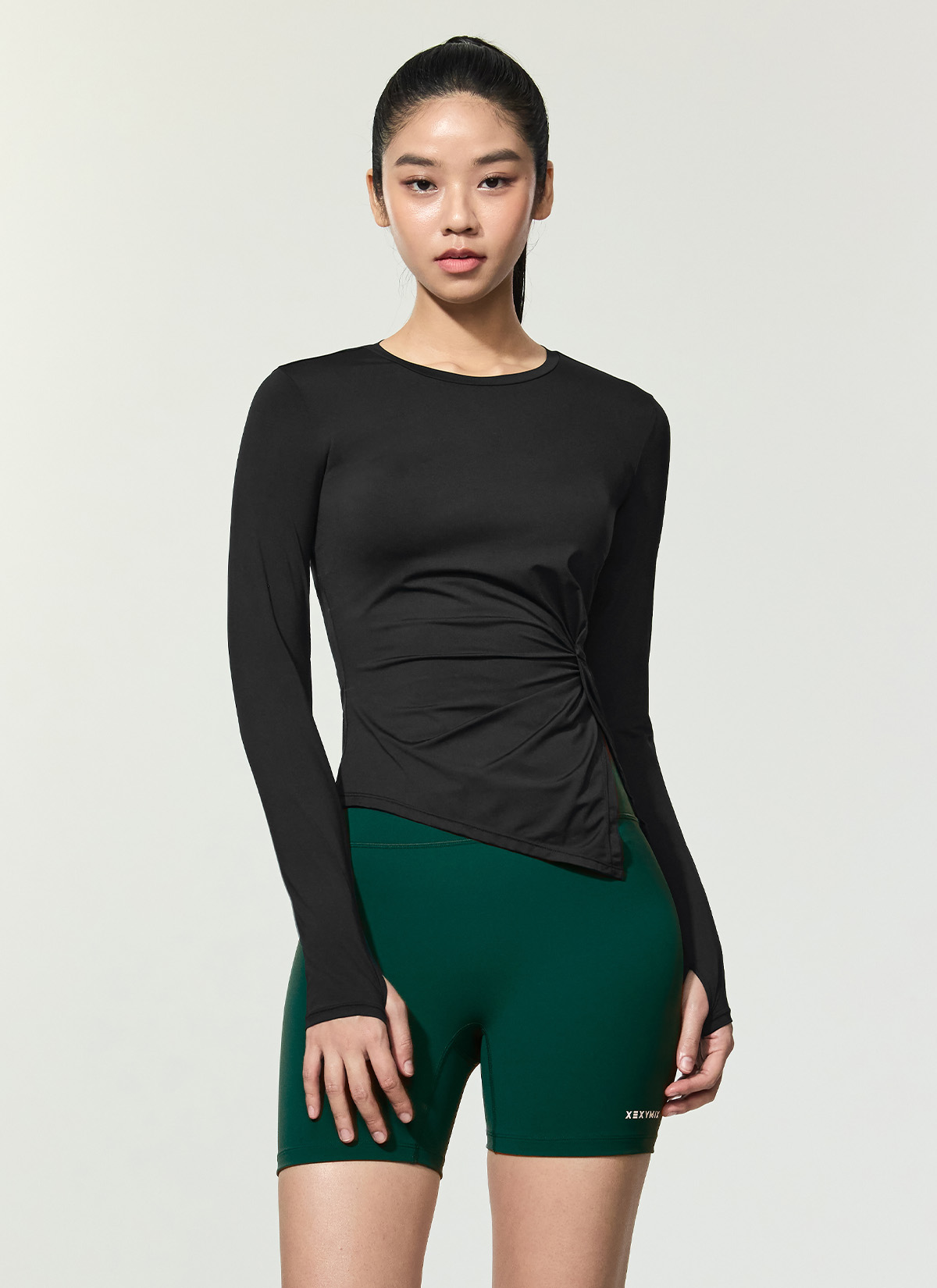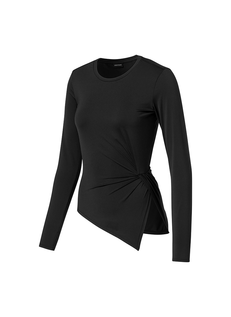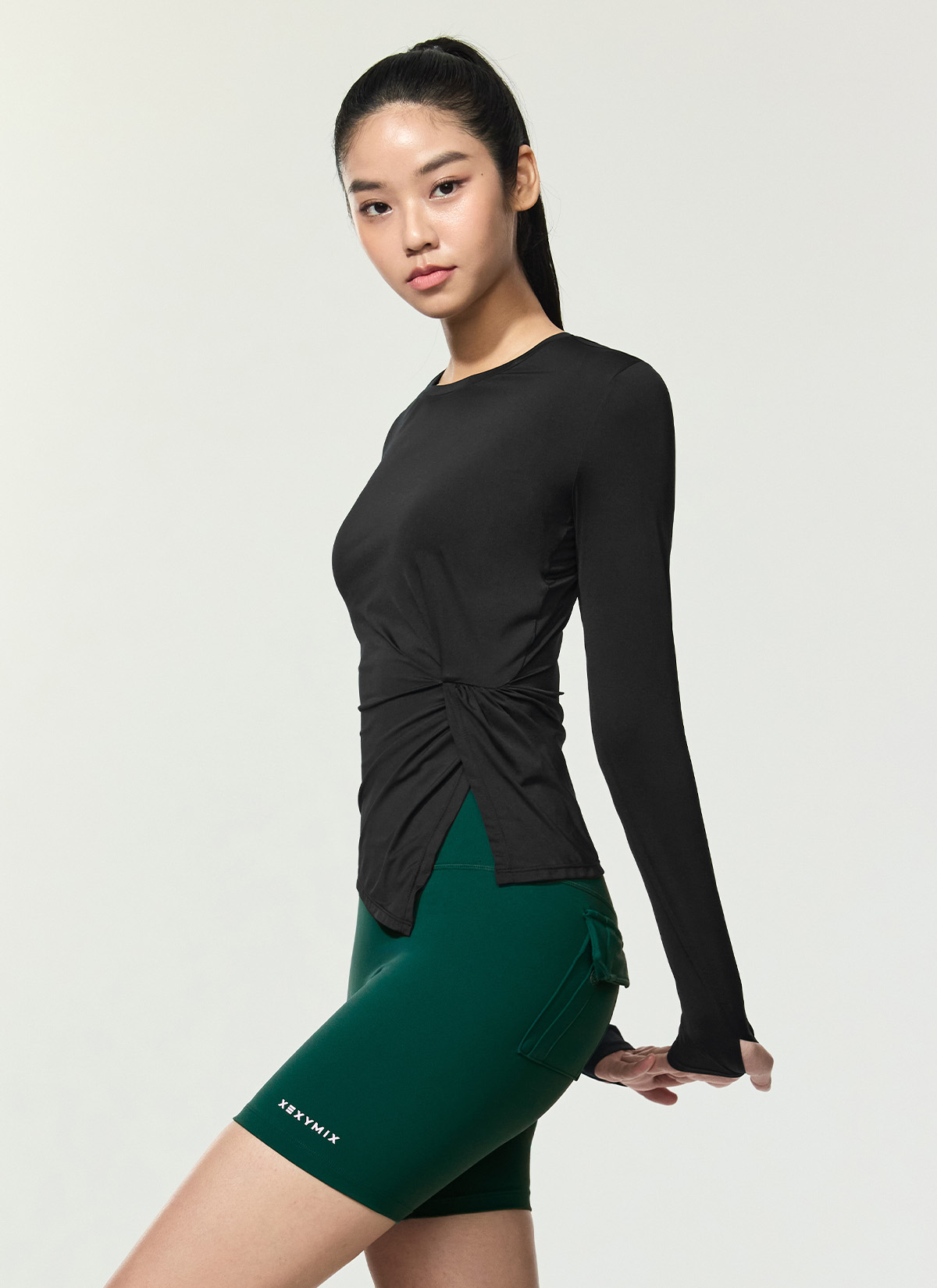 XFK2TL1001 Cooling Drape Finger Hole Long Black TOP