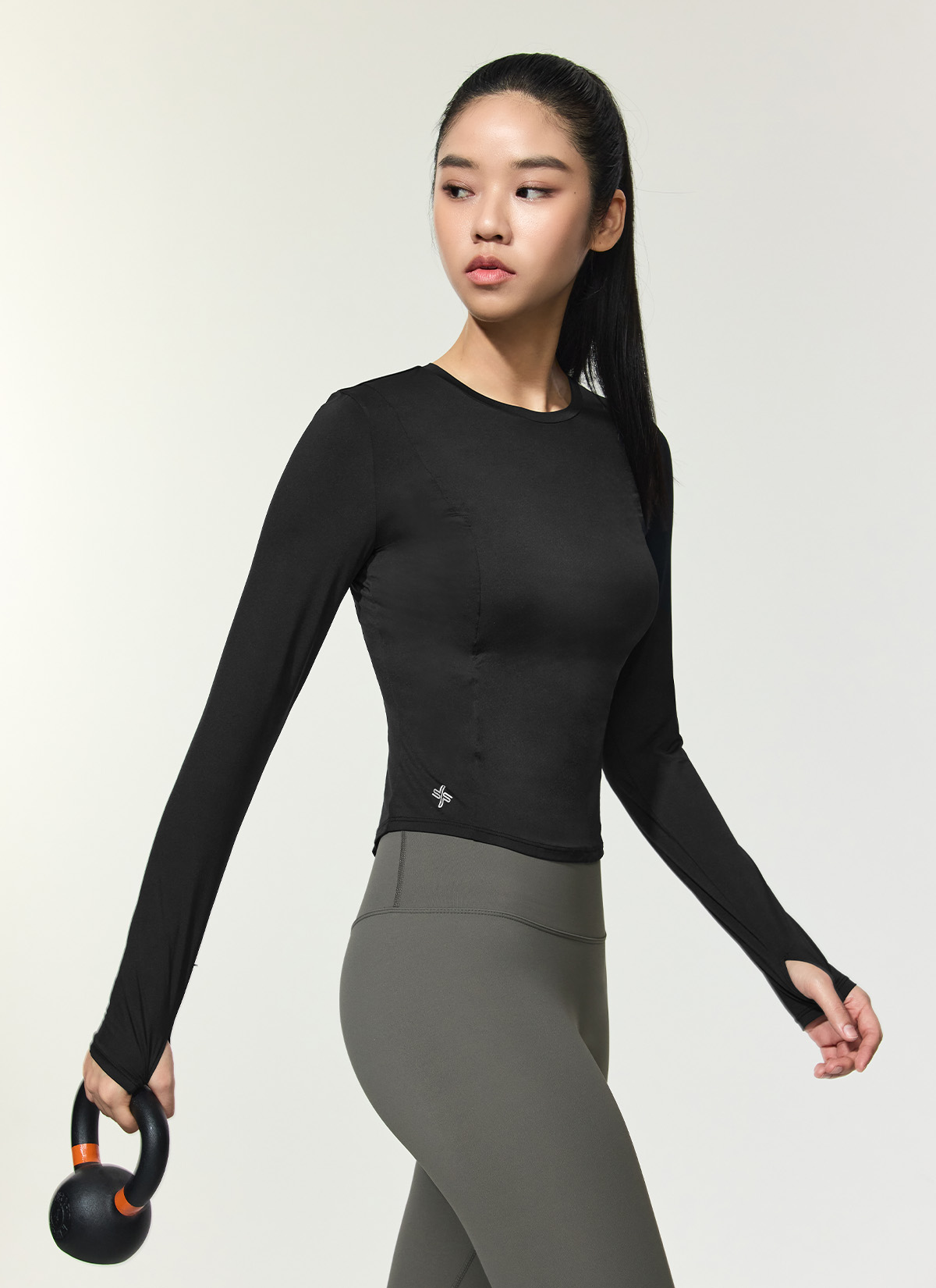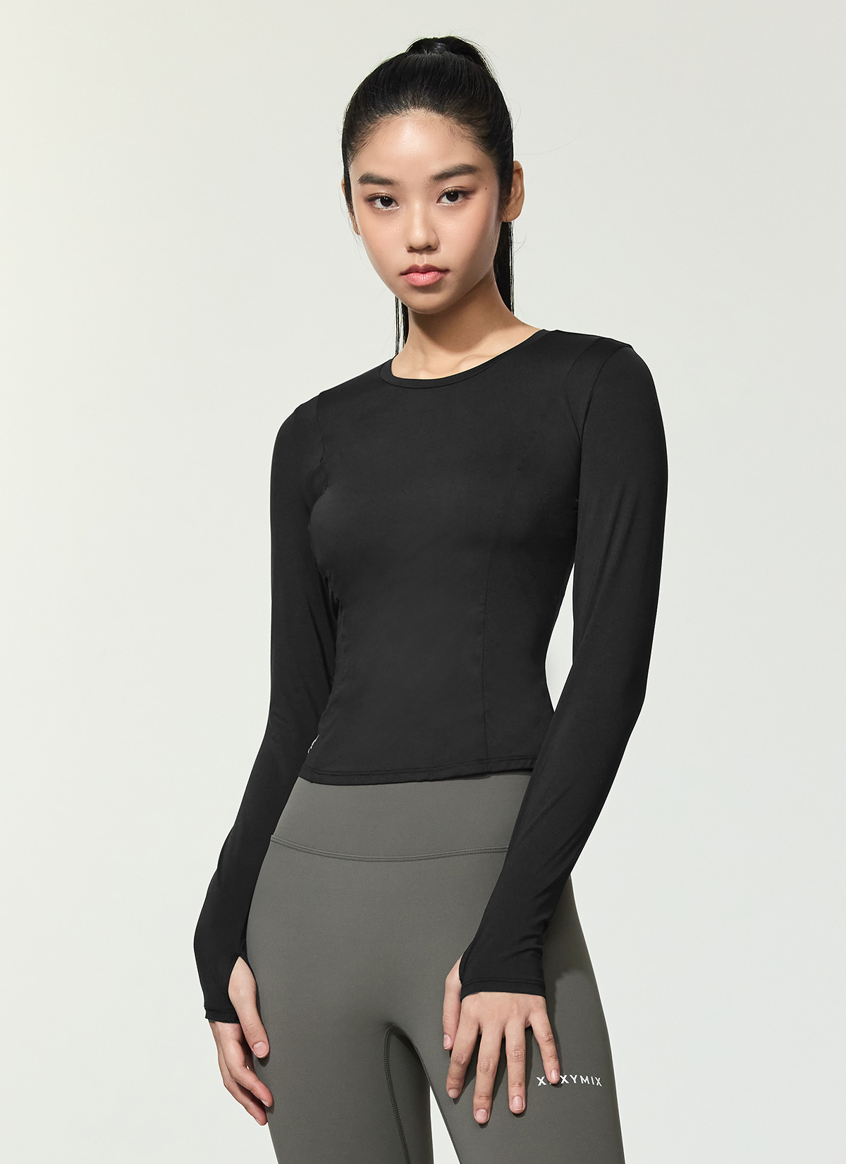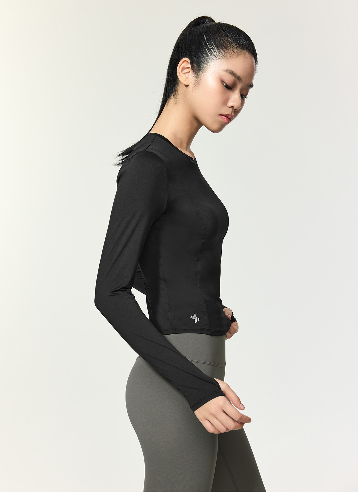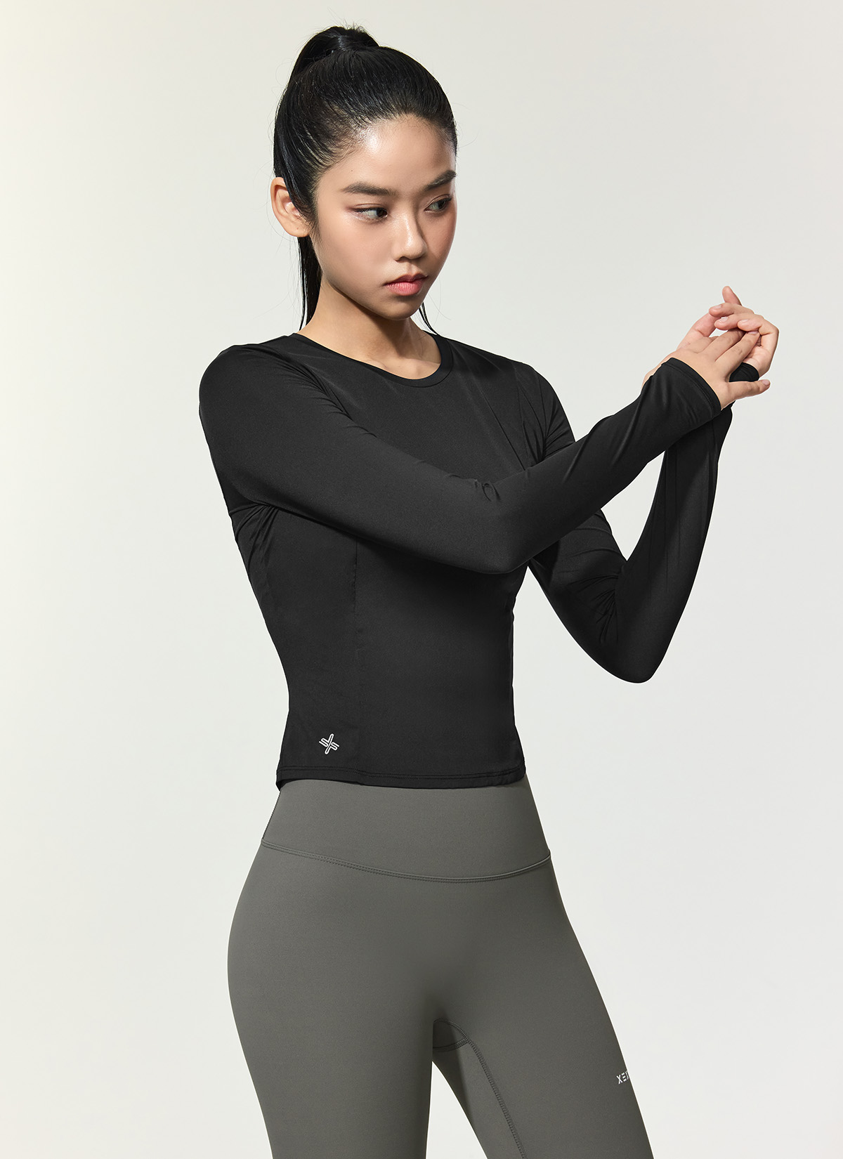 XFK2TL1003 Cooling Princess Finger Hole Long Black TOP